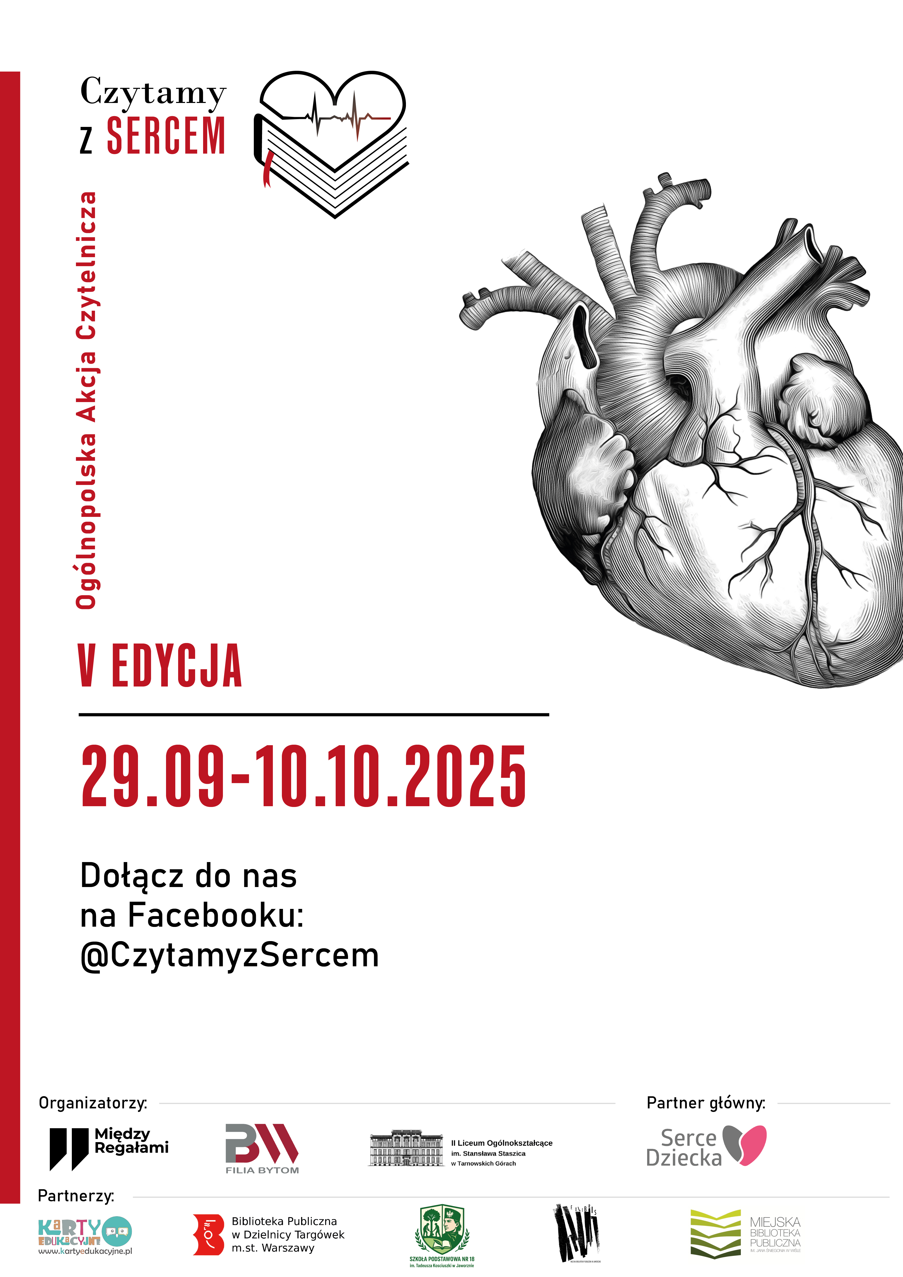 29 września nasza szkoła włącza się w ogólnopolską akcję „Czytamy z Sercem” – inicjatywę czytelniczą i edukacyjną organizowaną w ramach Ogólnopolskiego Dnia Głośnego Czytania i Światowego Dnia Serca.