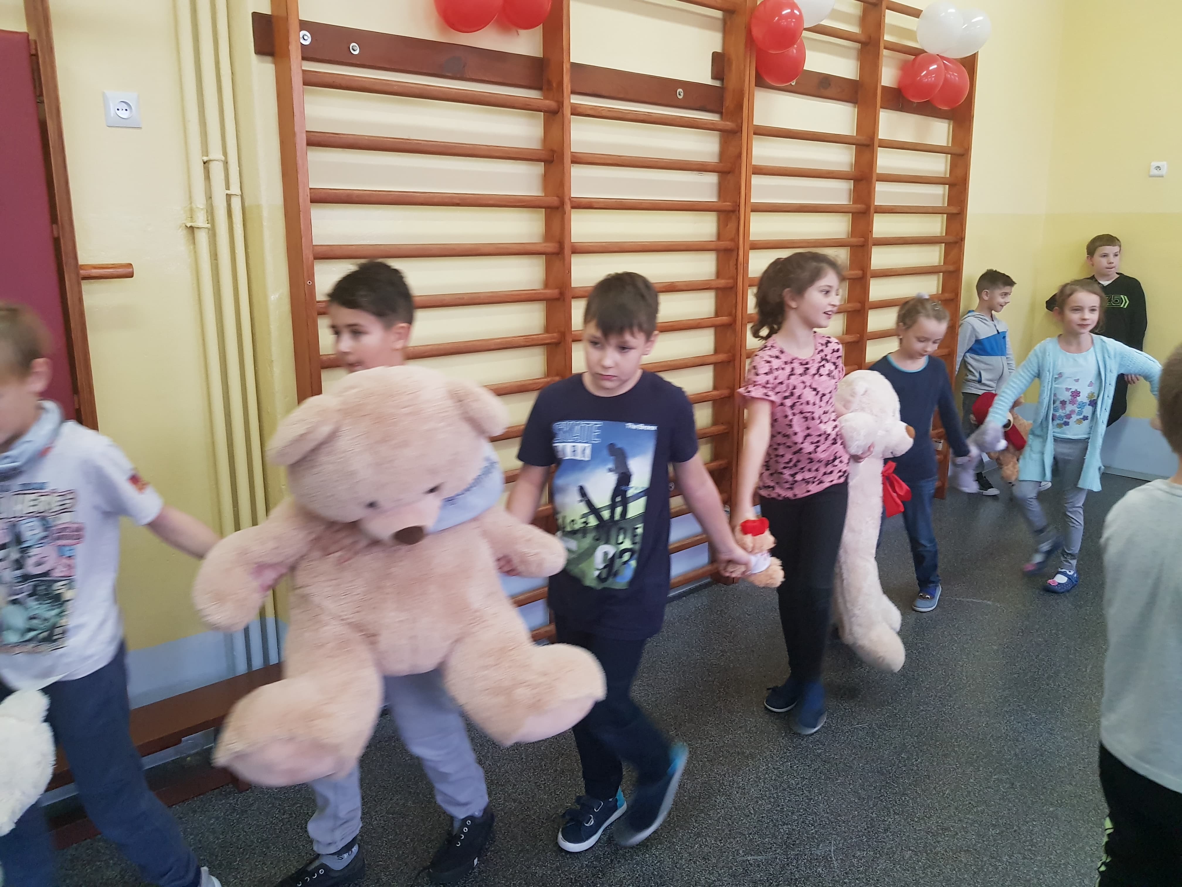 23 listopada w naszej szkole odbył się Dzień Pluszowego Misia. W tym dniu misie opuściły zaciszne pokoiki i przyjechały z dziećmi do szkoły. Głównum punktem tego dnia było spotkanie uczniów z przedszkolakami na sali gimnastycznej. Tam odbyły się tańce z misiami, zbawy oraz prezentacja misiów.