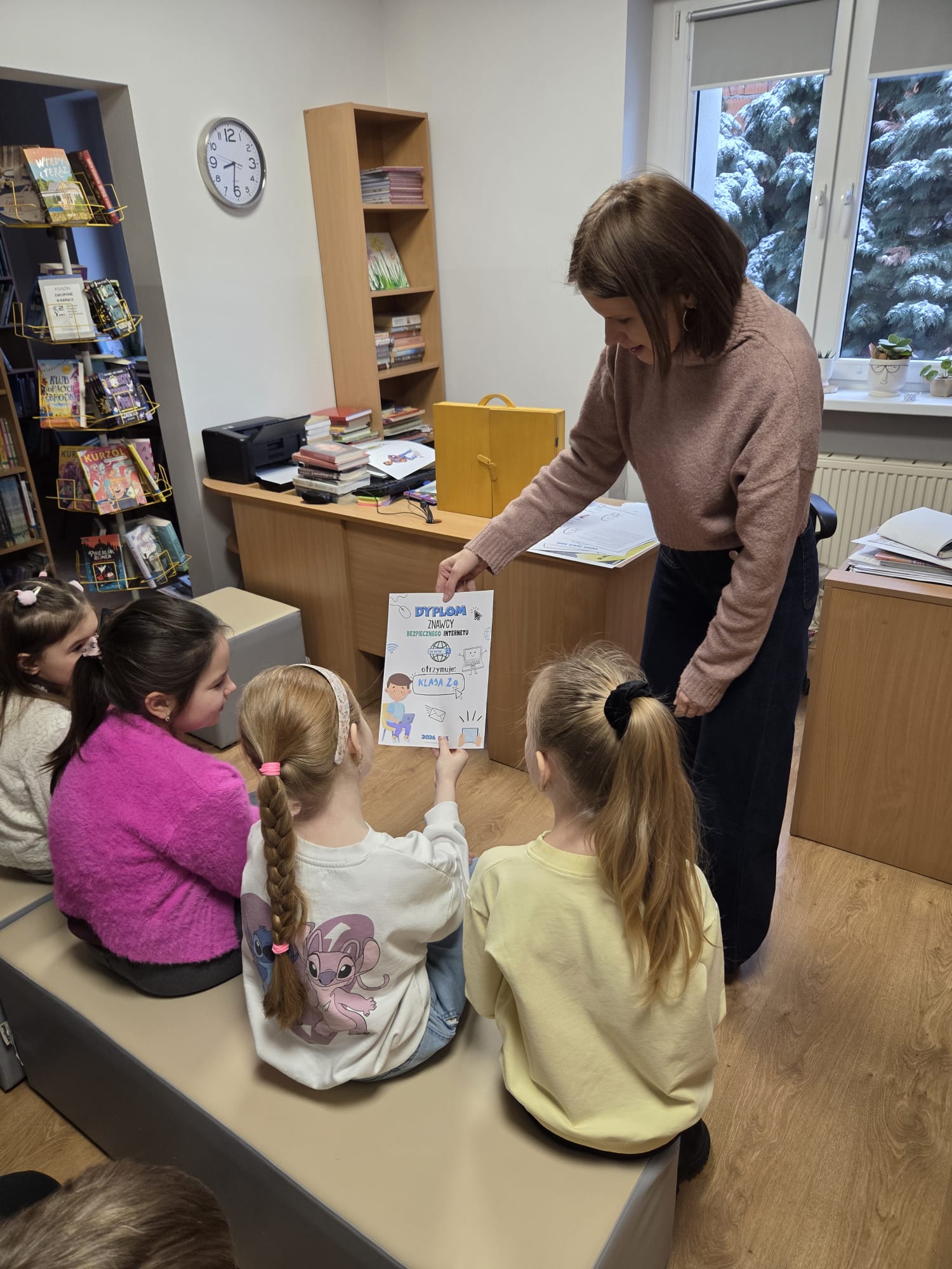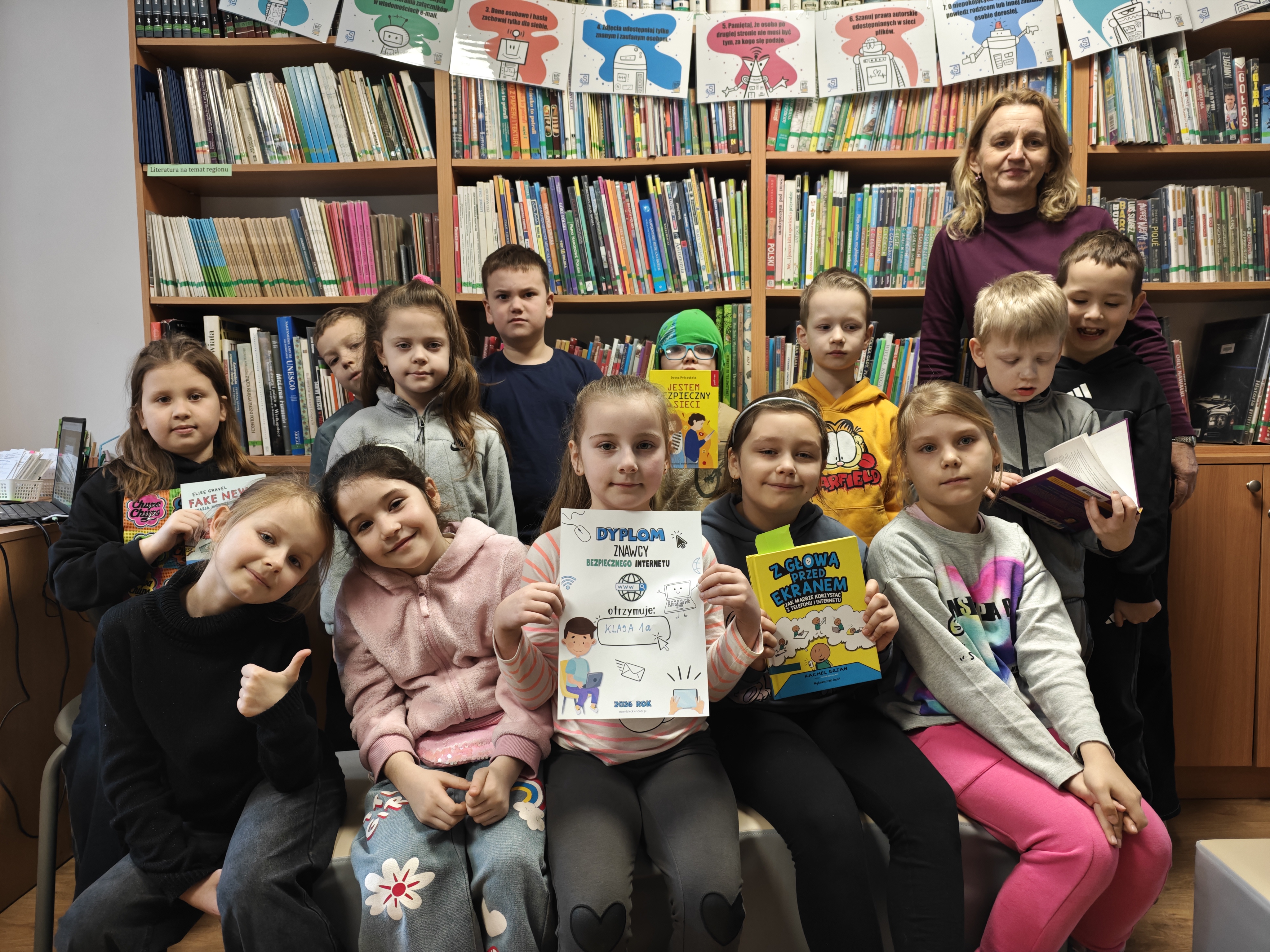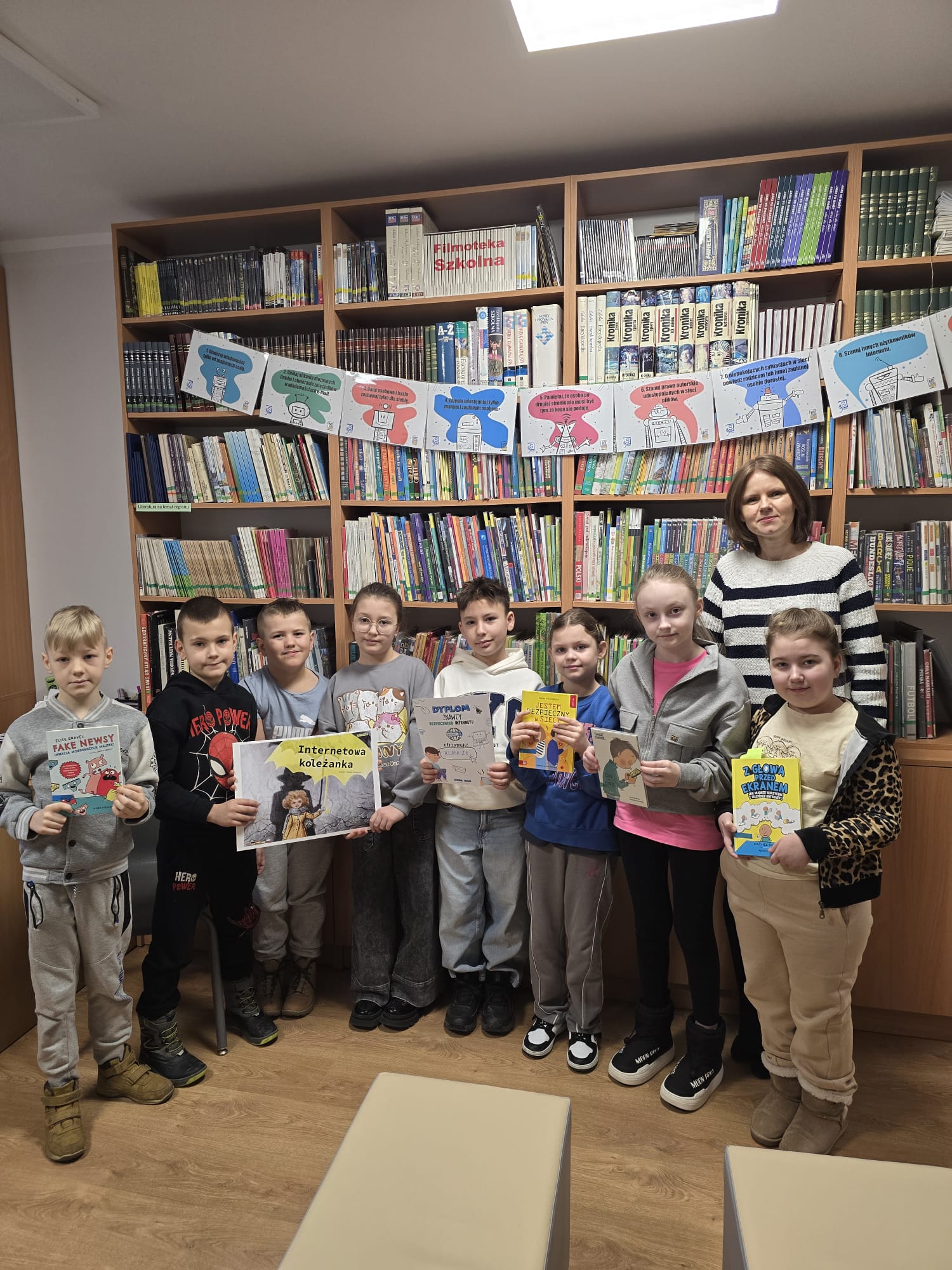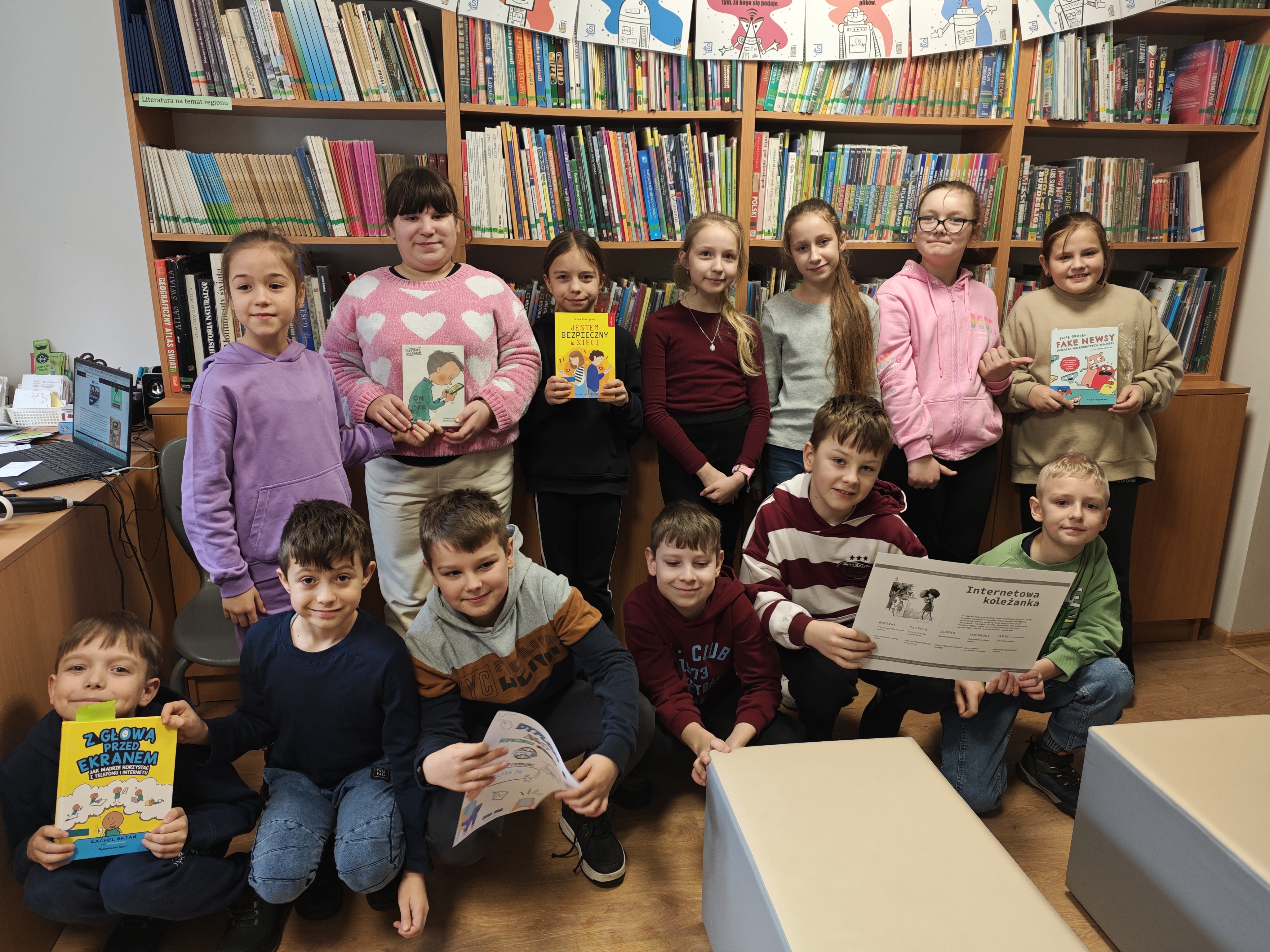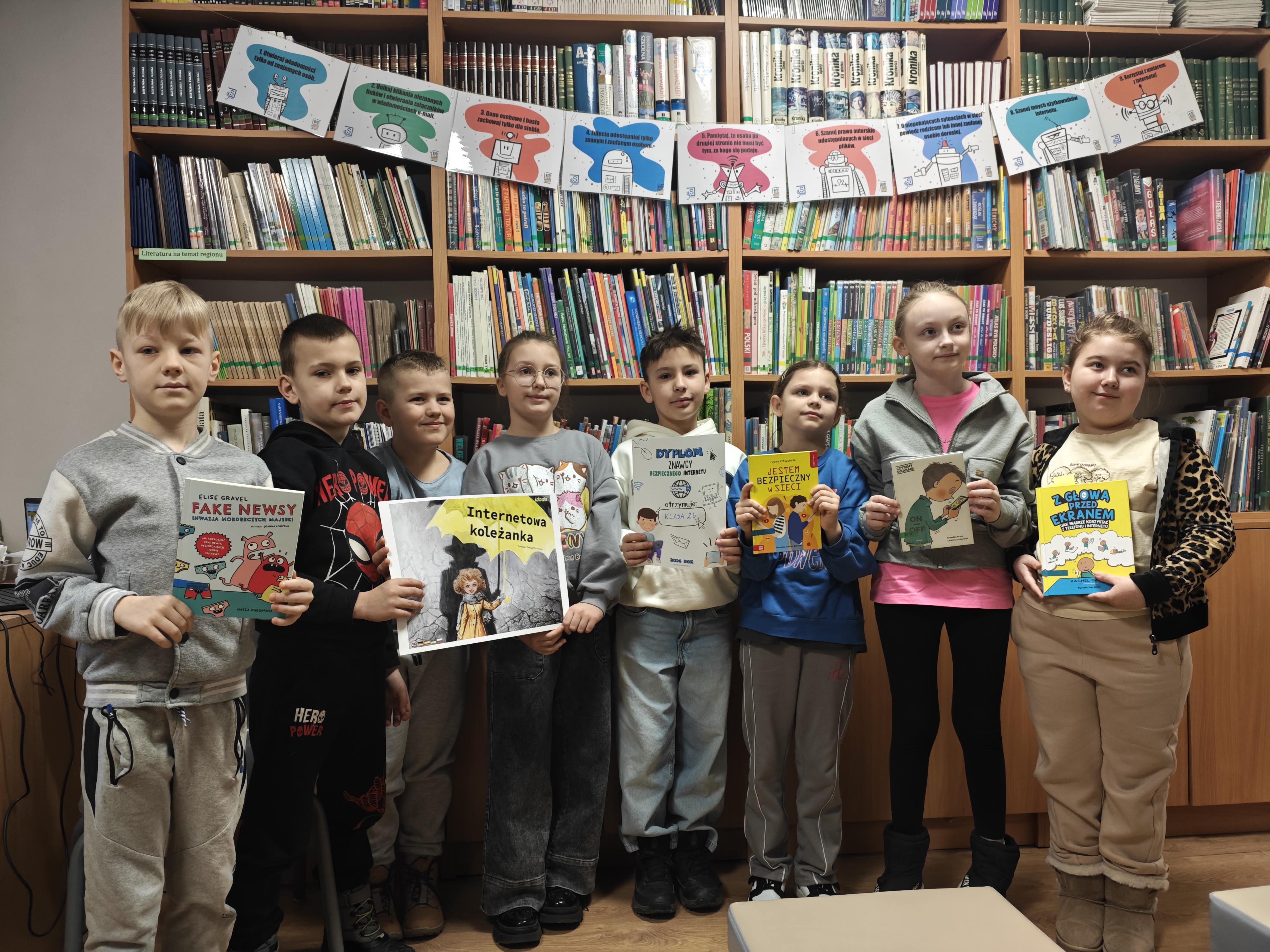 W tym tygodniu w bibliotece rozmawialiśmy o cyfrowym świecie. Z okazji Dnia Bezpiecznego Internetu, wszystkie klasy 1–3 wzięły udział w spotkaniach edukacyjnych, których celem było uwrażliwienie najmłodszych na zasady bezpiecznego poruszania się w sieci.