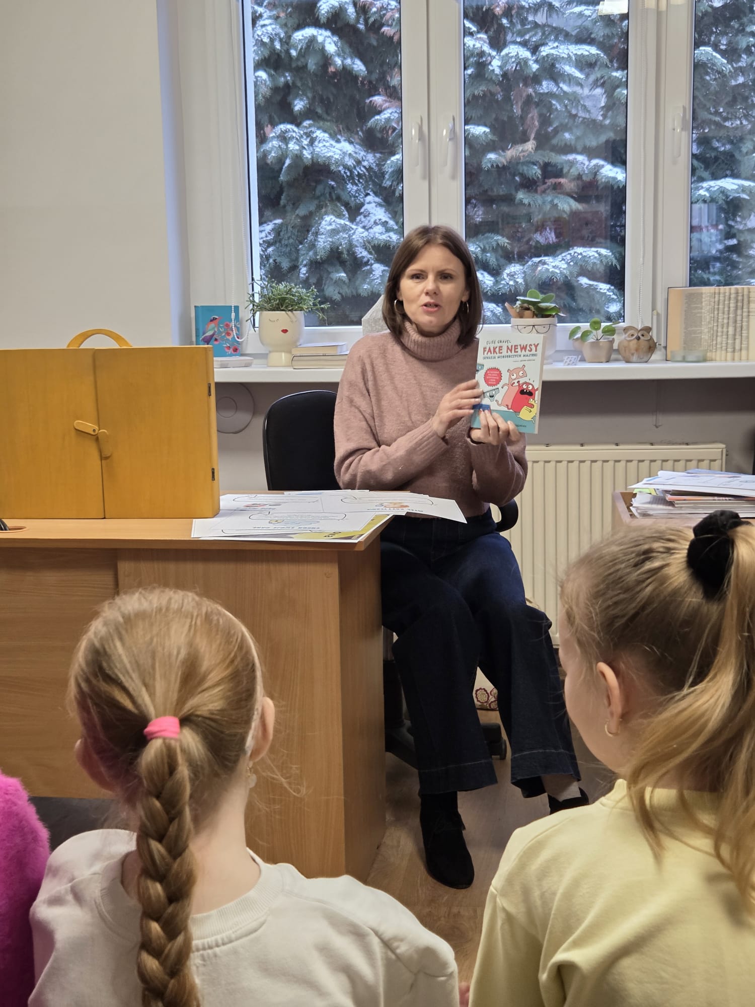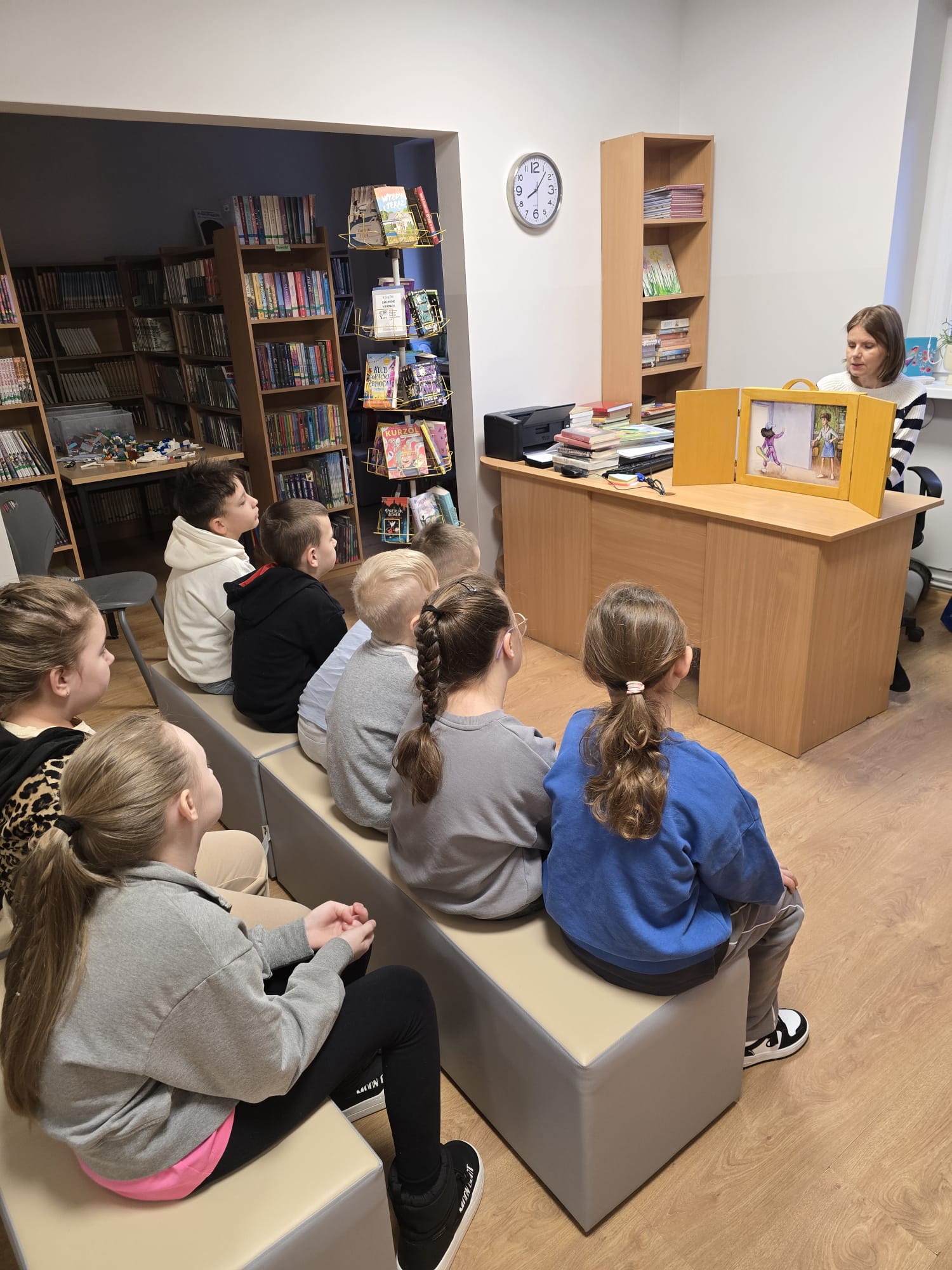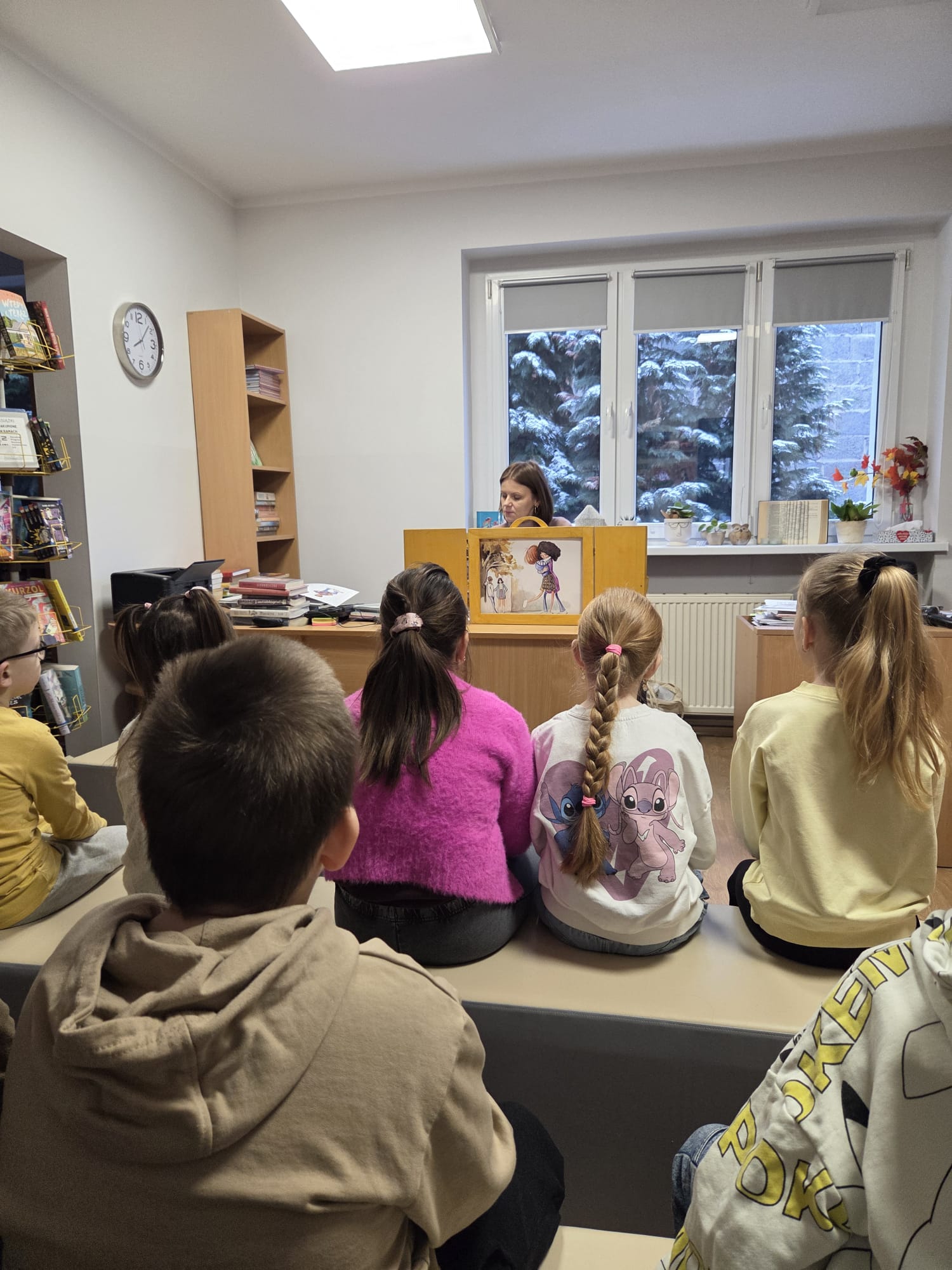 Punktem wyjścia do naszych rozmów był teatrzyk kamishibai – tradycyjna japońska sztuka opowiadania historii za pomocą ilustracji ukrytych w drewnianej skrzynce. Uczniowie wysłuchali opowiadania pt. „Internetowa koleżanka". Historia dziewczynki, która postanowiła spotkać się „w realu” z osobą poznaną w sieci, wywołała wiele emocji. Stała się ona idealnym pretekstem do rozmów na temat zalet i zagrożeń internetu.