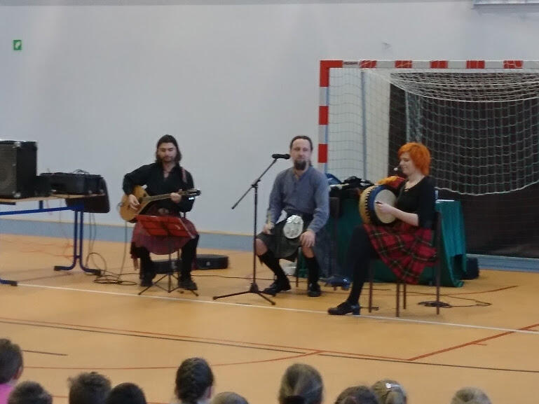 We wtorek 5 lutego byliśmy na koncercie zespołu "Wirtuoz", który odbył sie na 1 lekcji, na sali gimnastycznej. Podczas koncertu mogliśmy zobaczyć dudy szkockie. Chętni uczniowie mogli nauczyć sie tańca "stepu". Mogliśmy także posłuchać muzyki celtyckiej z różnych krajów świata. Osoby, które znały odpowiedzi na różne pytania, dostały naklejki z nazwą zespołu. Ten występ bardzo się nam spodobał i mieliśmy okazję zobaczyć wiele nowych rzeczy.