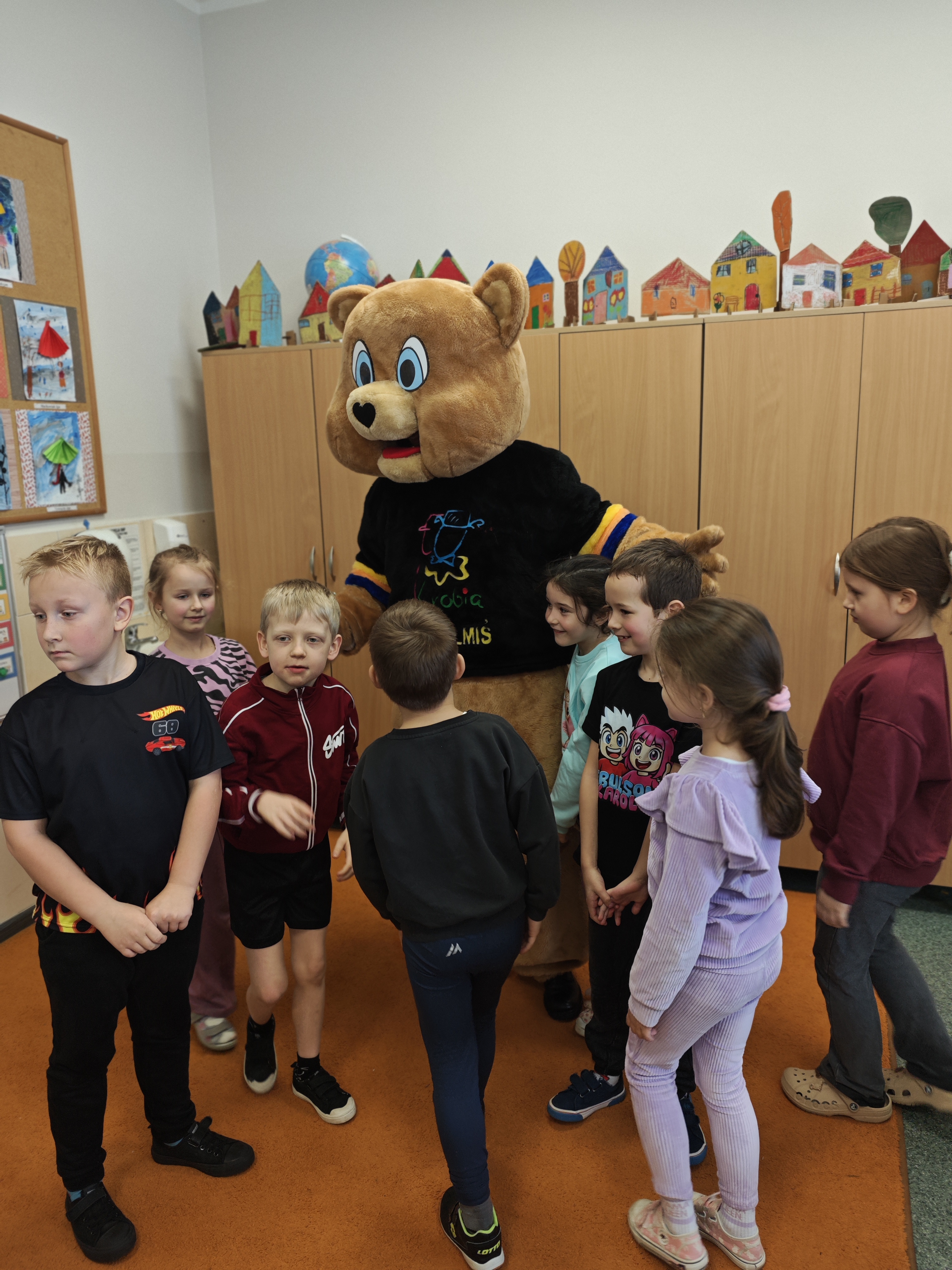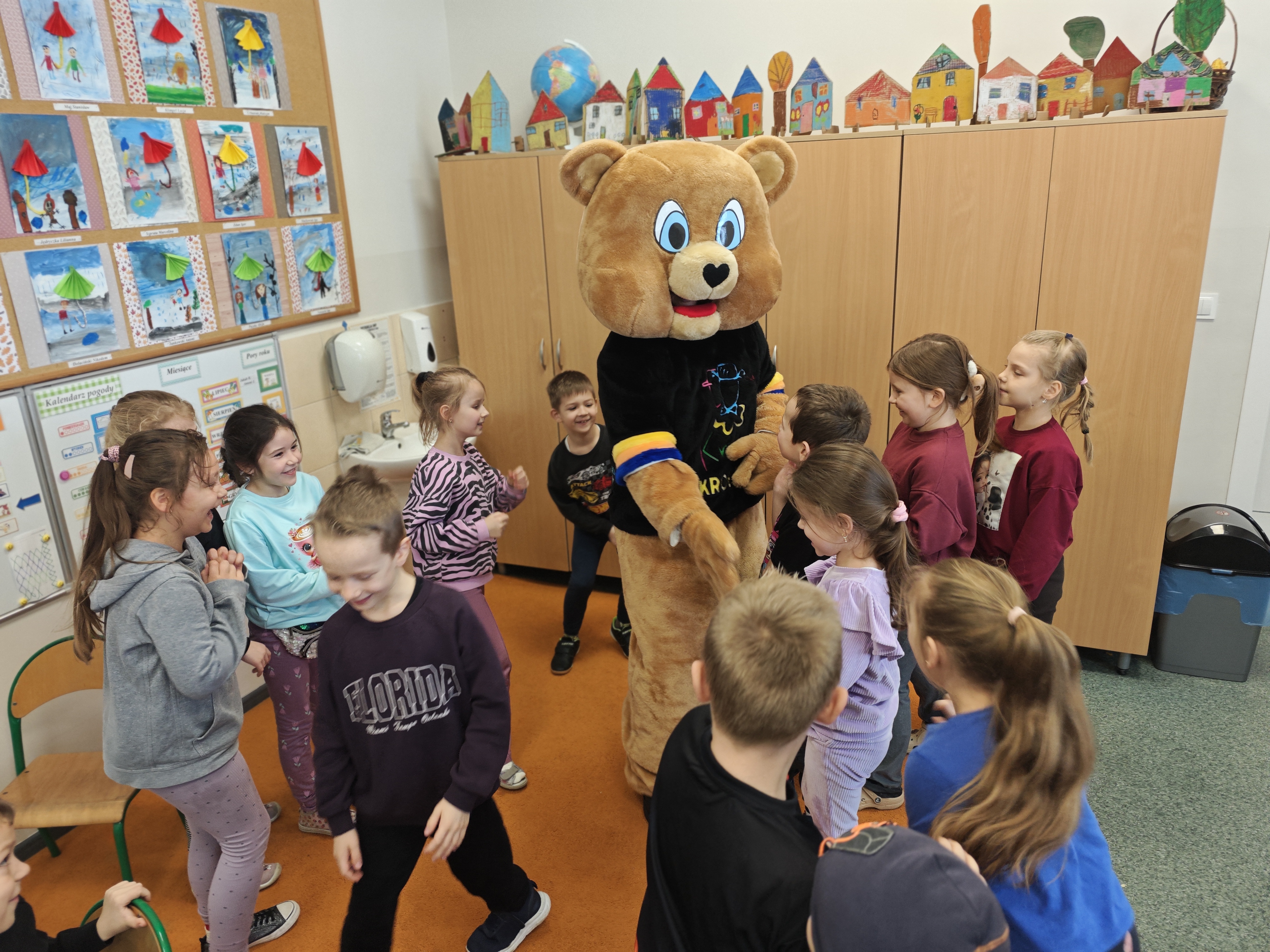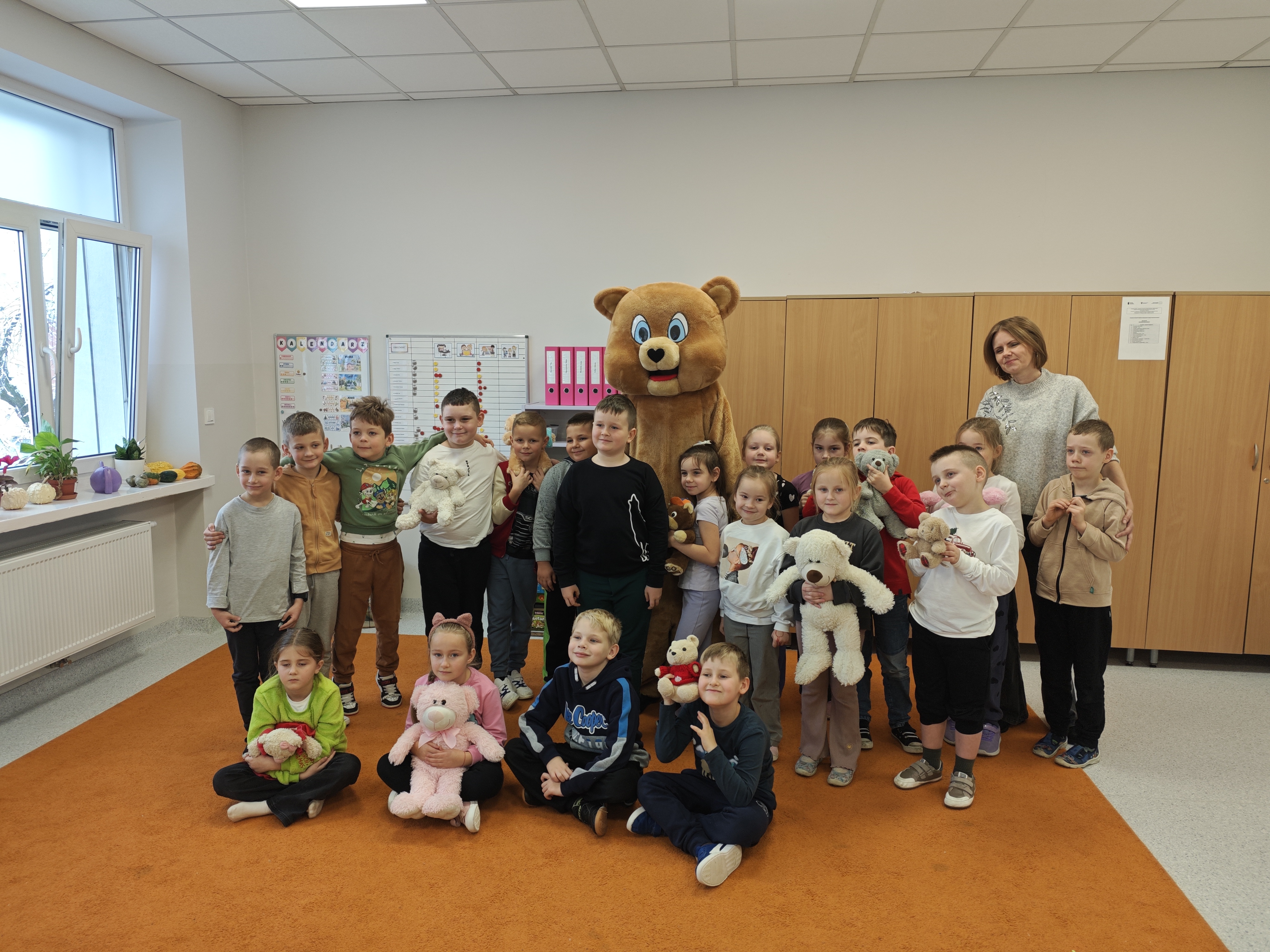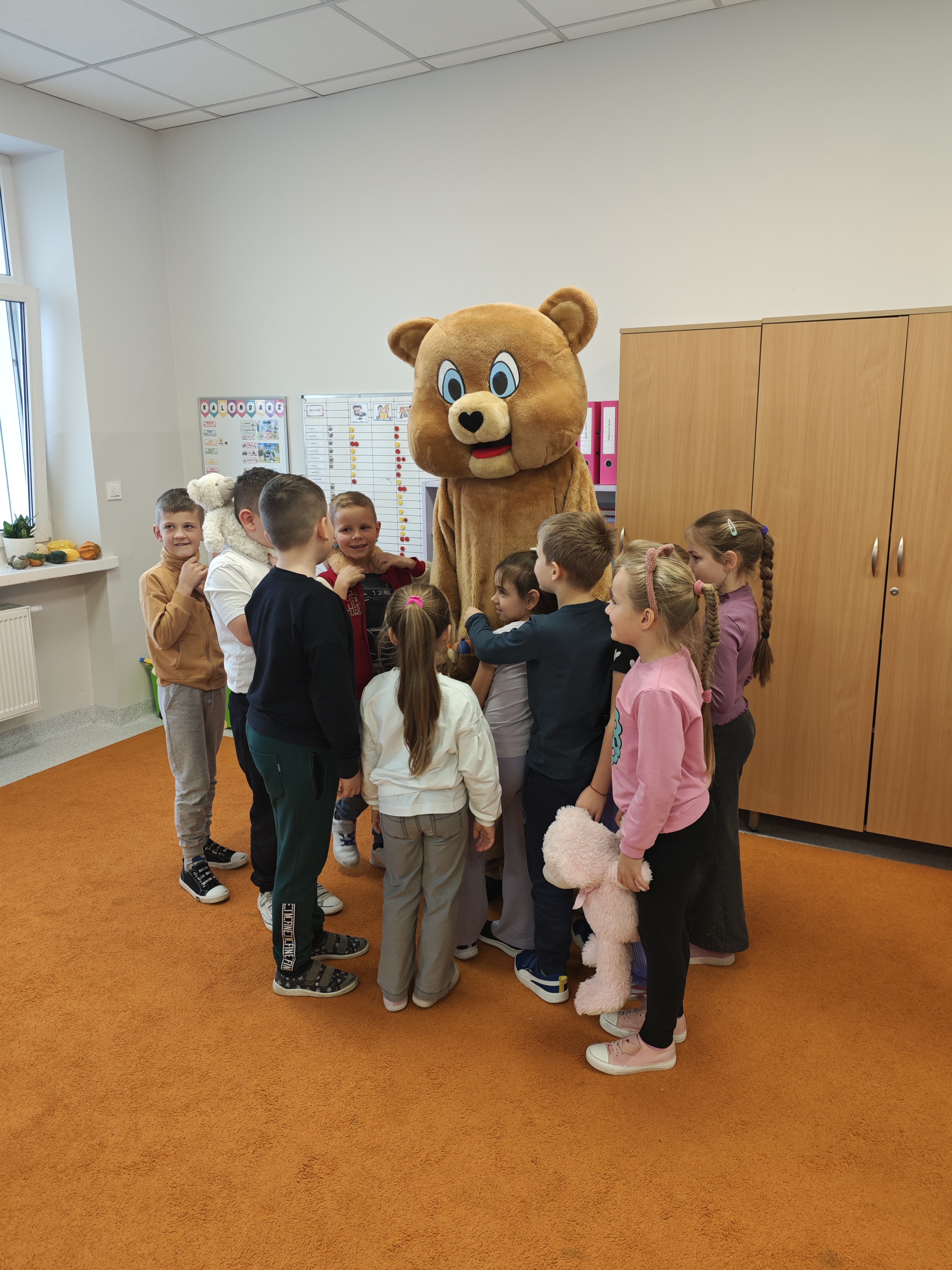 Z okazji Dnia Pluszowego Misia najmłodszych uczniów odwiedził wyjątkowy gość – Krob_Miś.