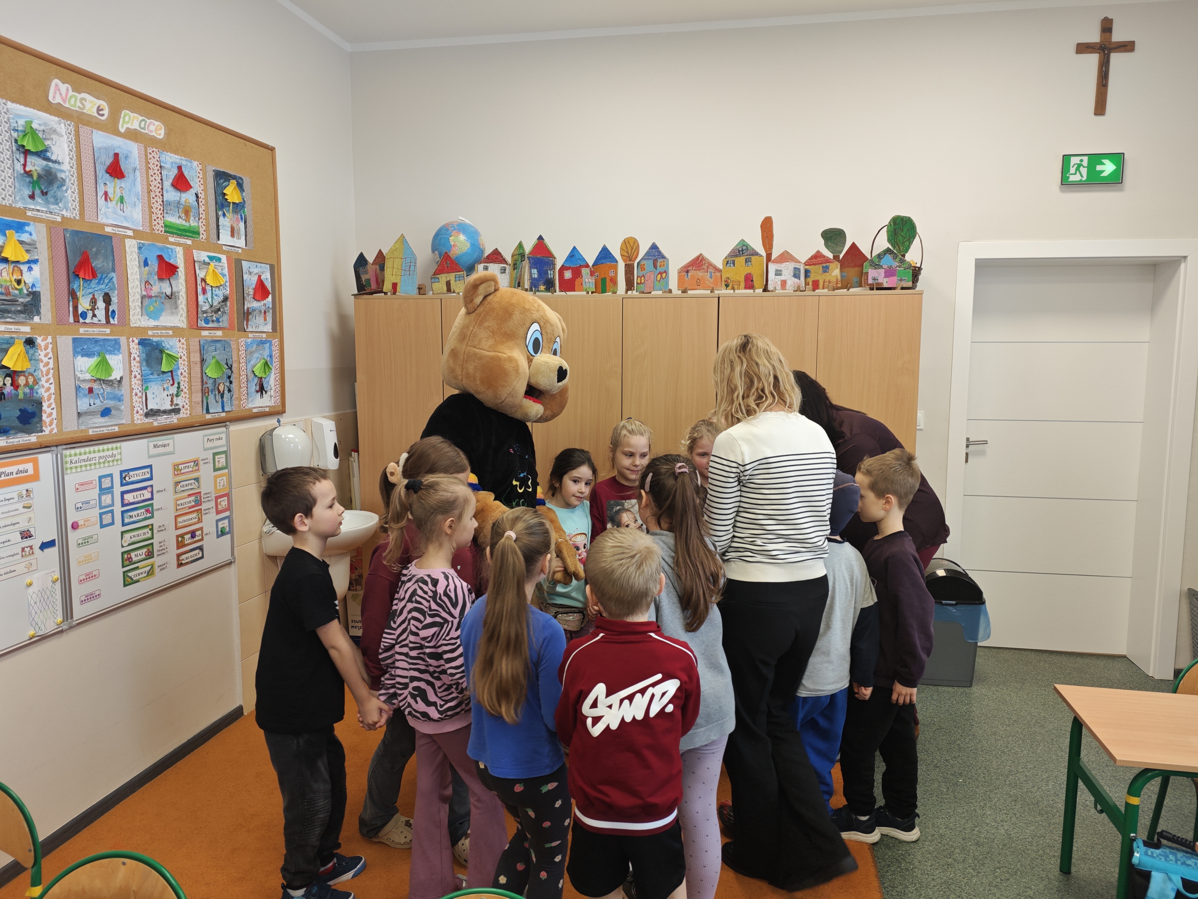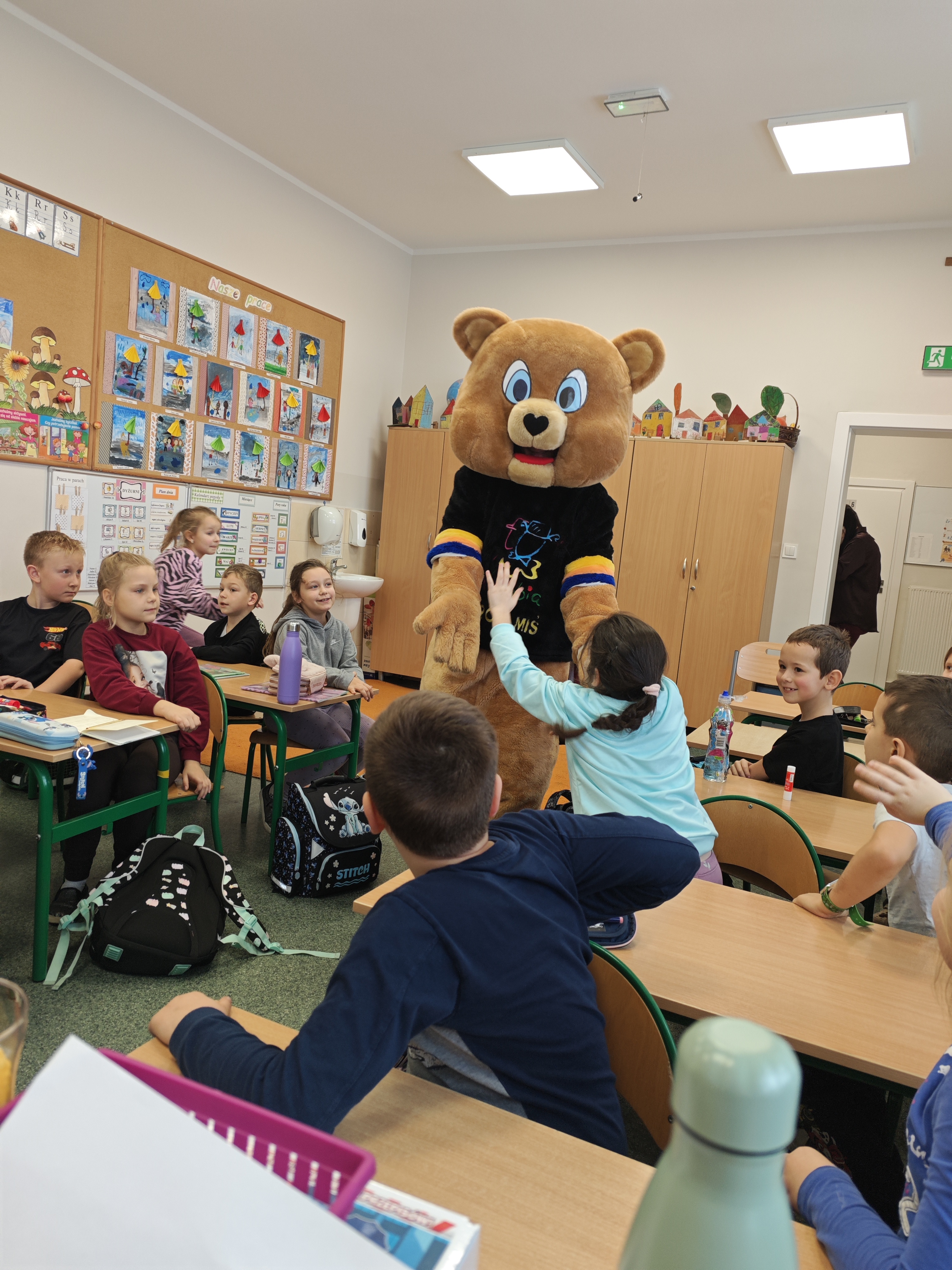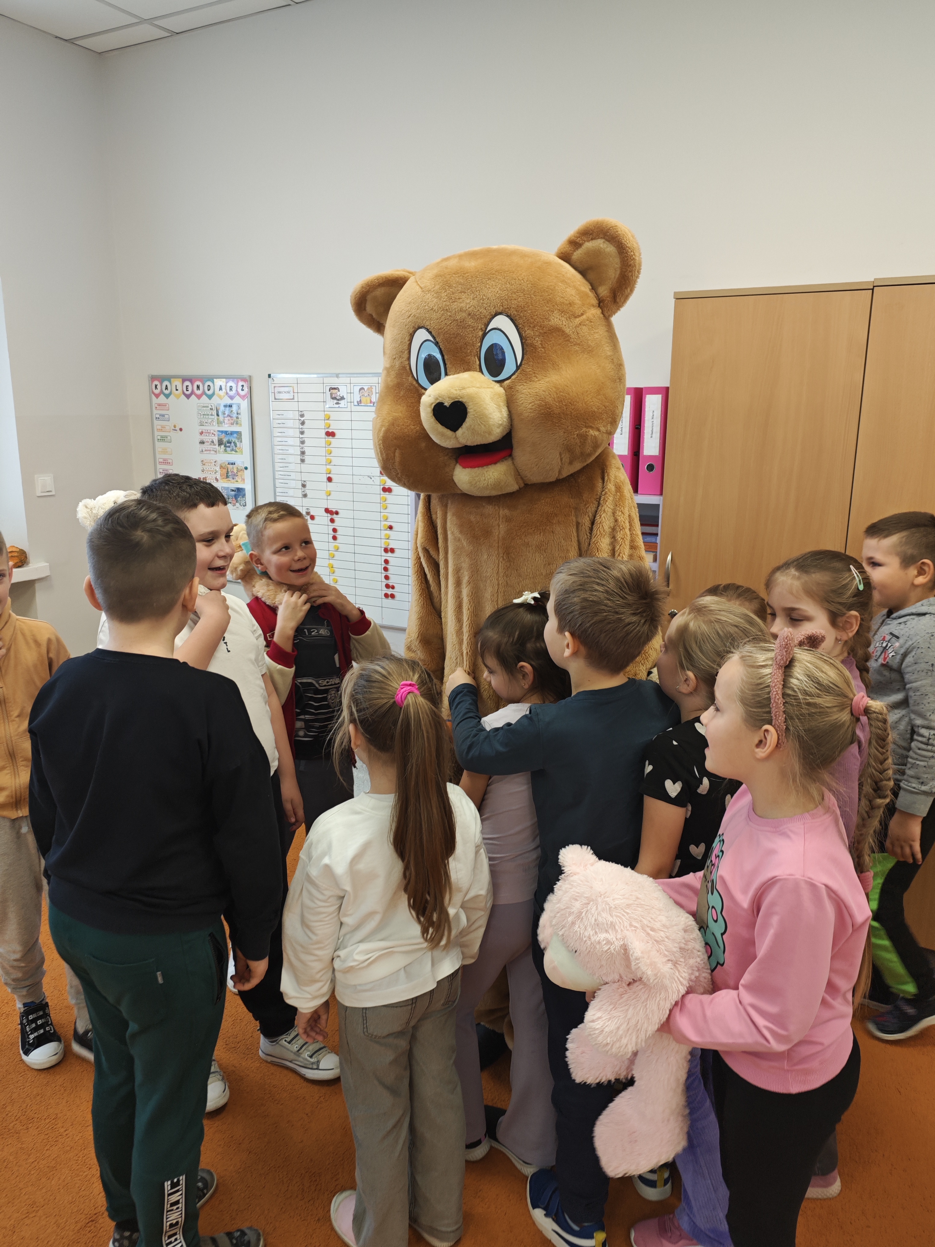 Z okazji Dnia Pluszowego Misia najmłodszych uczniów odwiedził wyjątkowy gość – Krob_Miś.