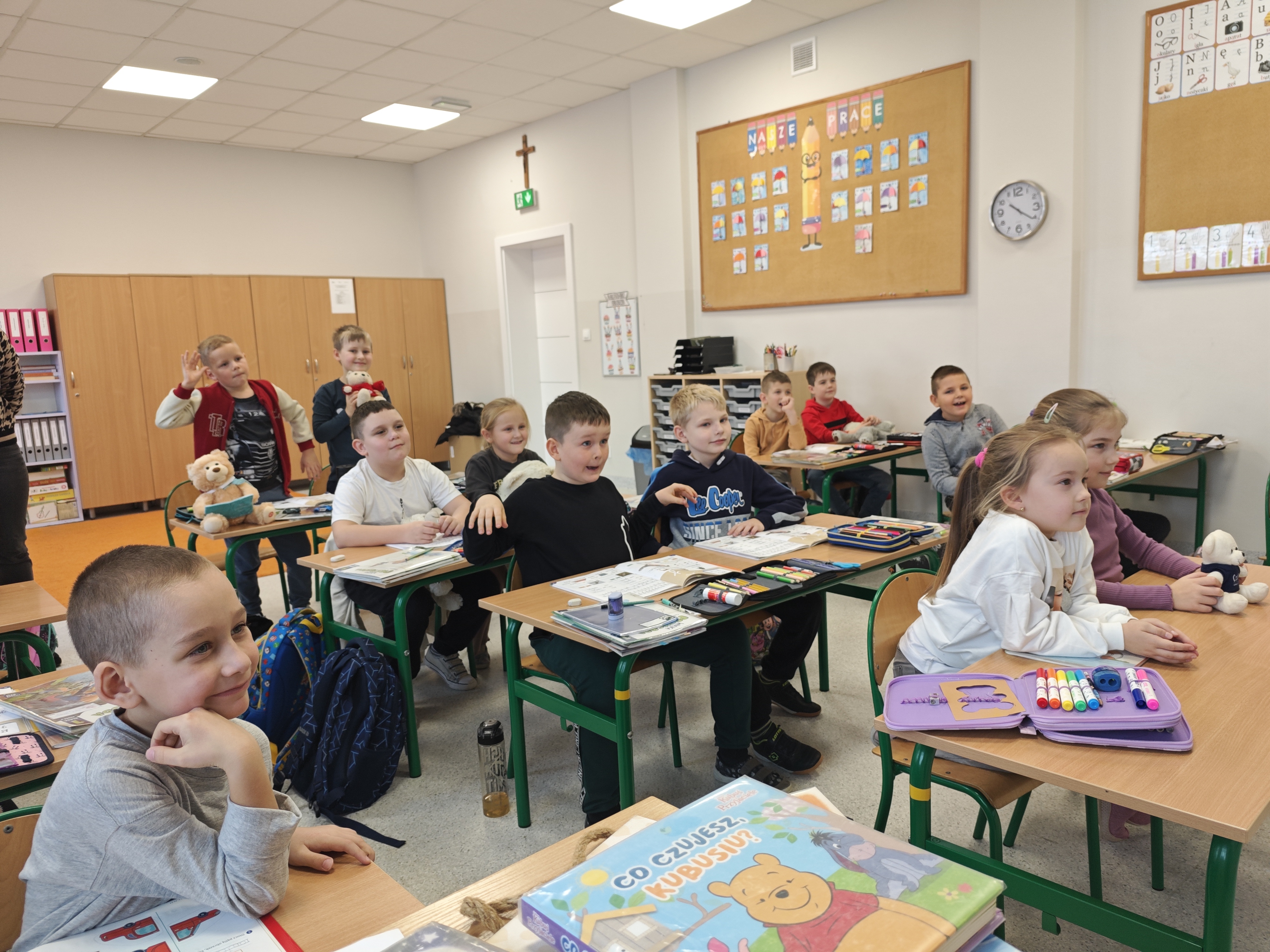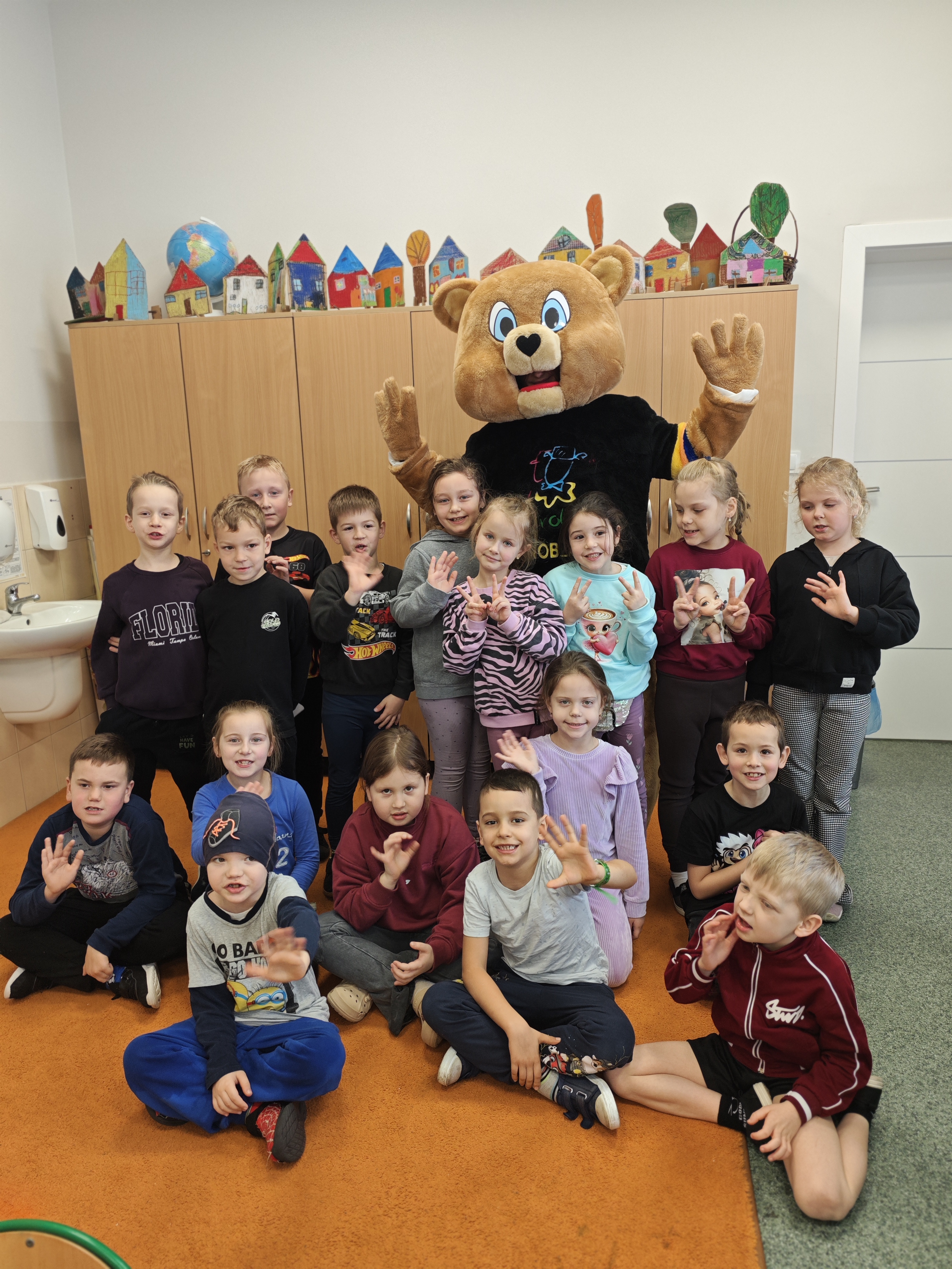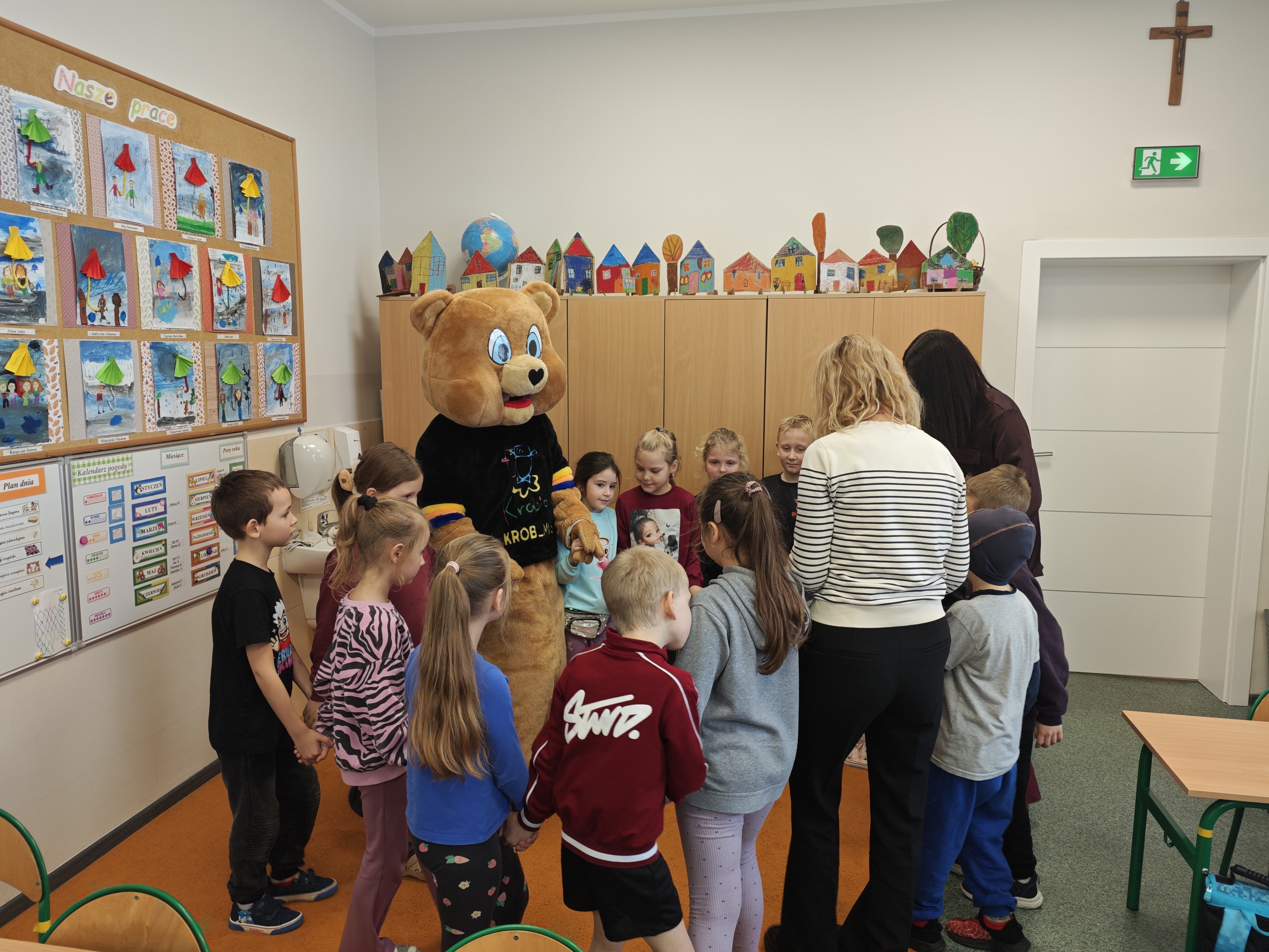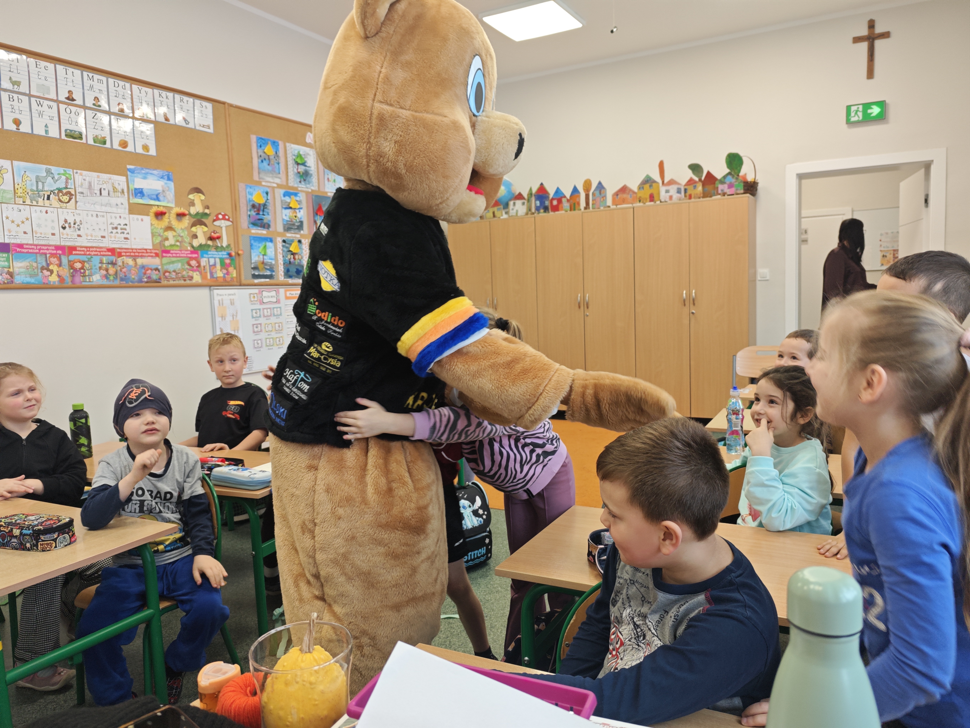 Z okazji Dnia Pluszowego Misia najmłodszych uczniów odwiedził wyjątkowy gość – Krob_Miś.