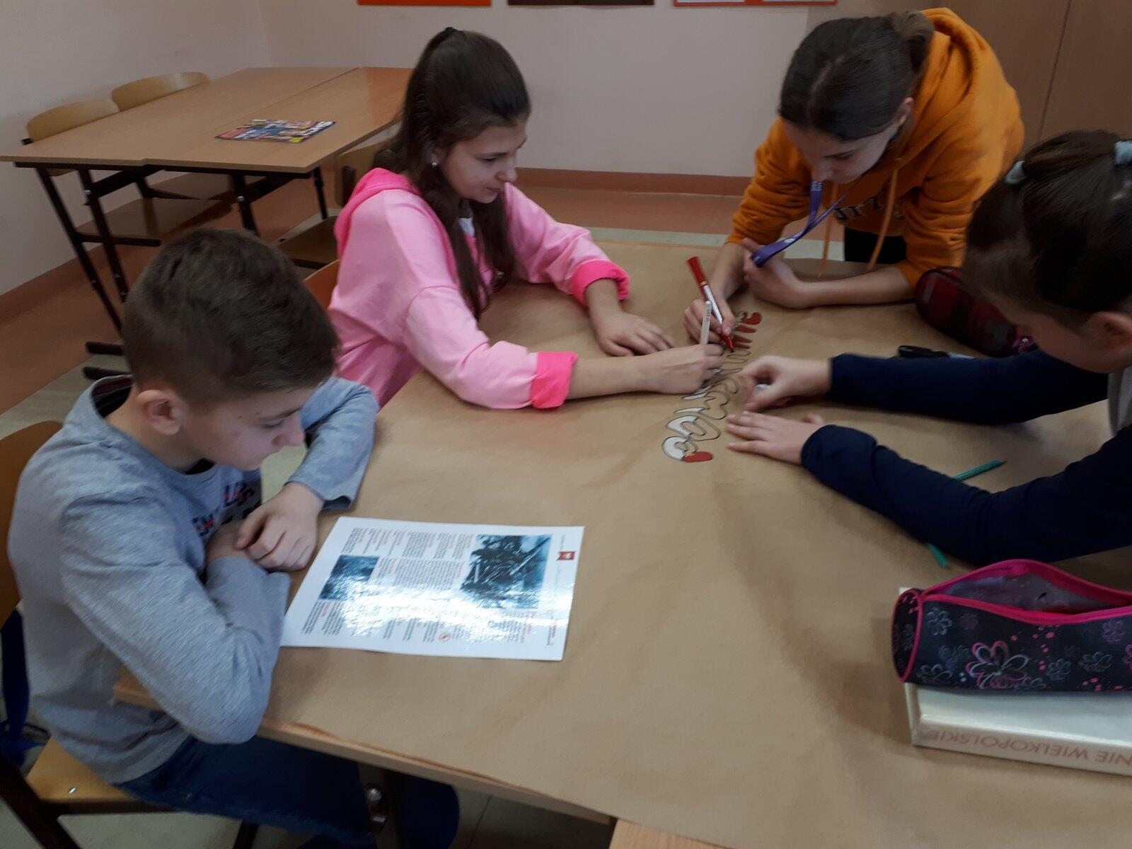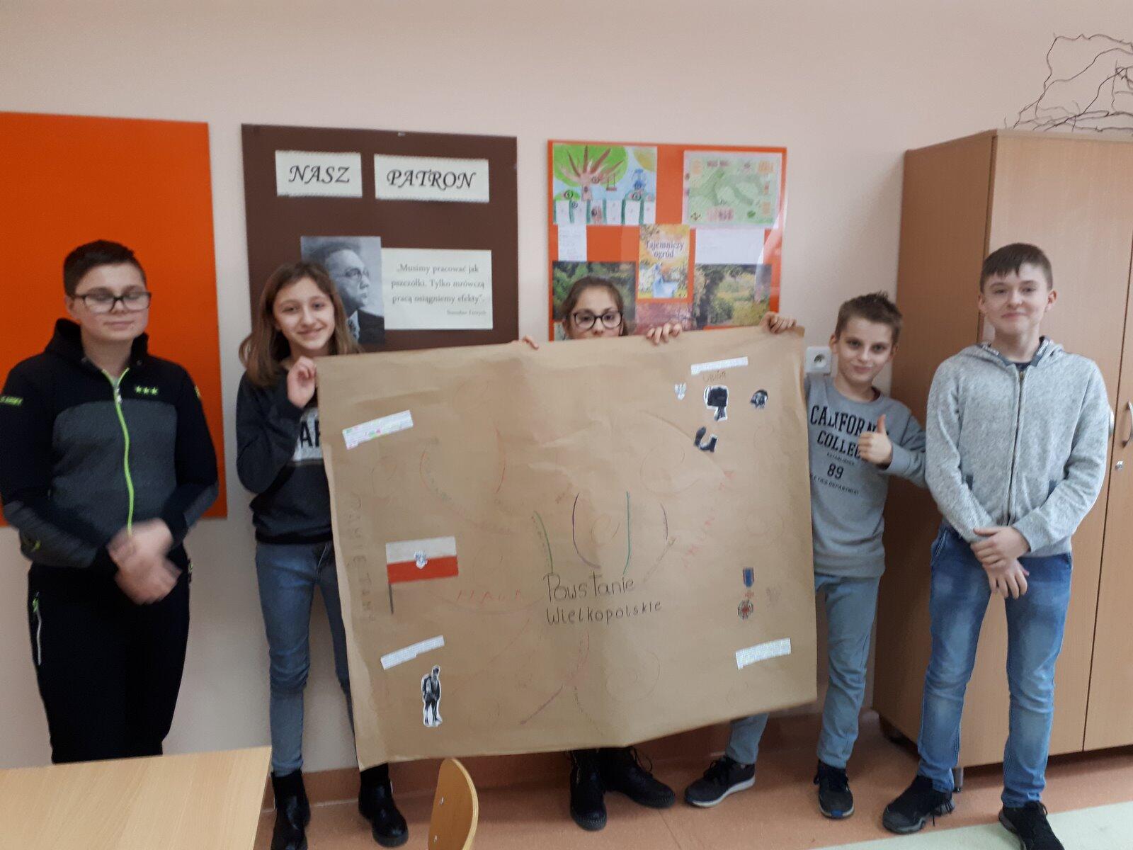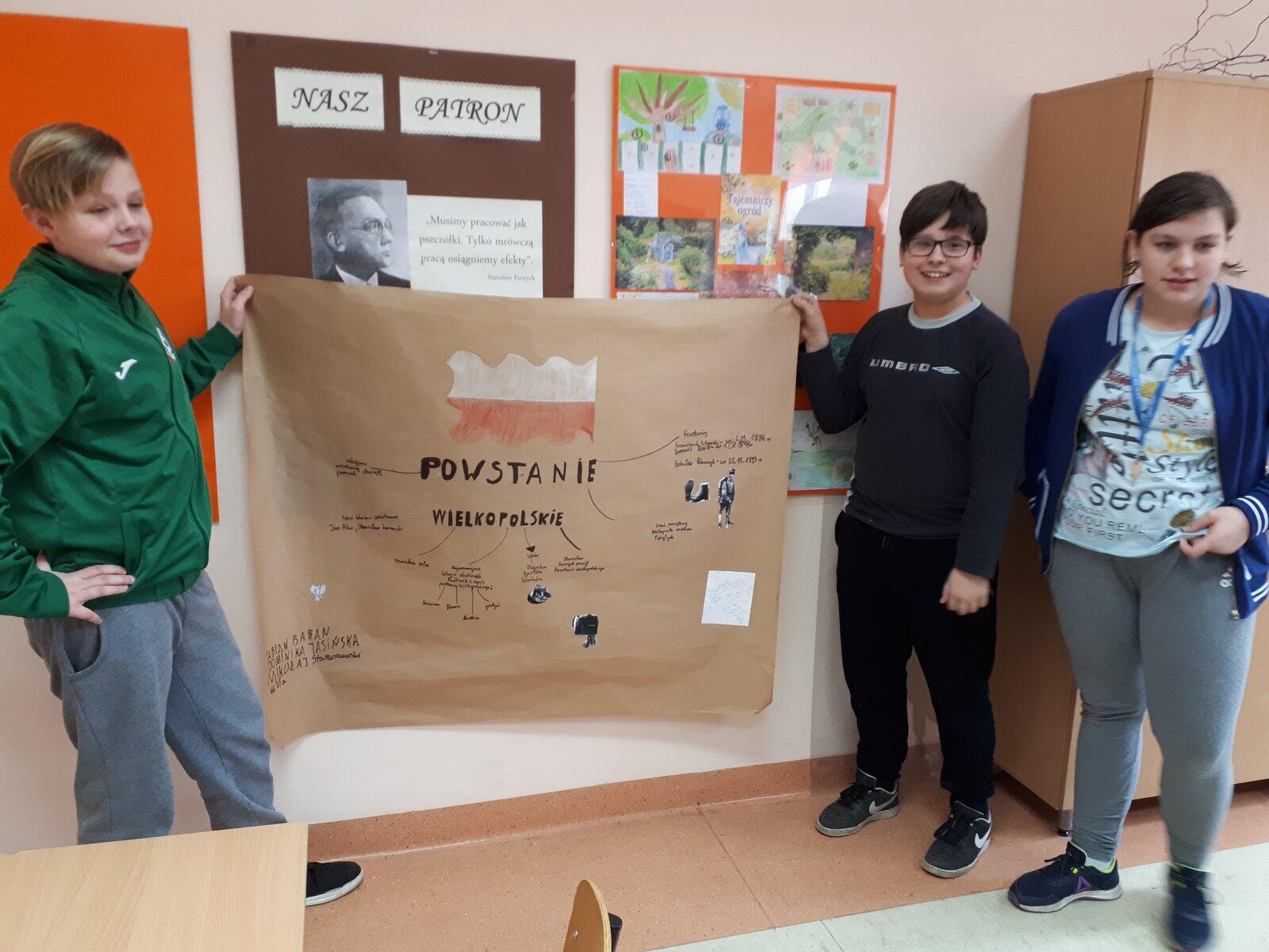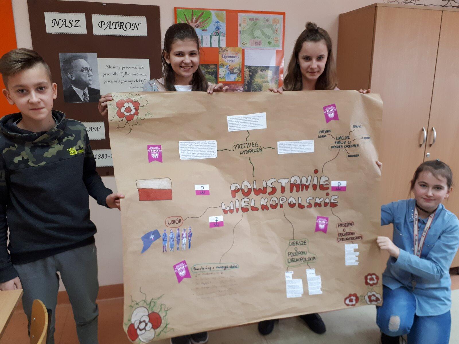 Podczas lekcji języka polskiego z panią Dorotą Worwą robiliśmy mapy myśli na temat Powstania Wielkopolskiego. Korzystaliśmy ze źródeł naszej biblioteki oraz własnych. Była to świetna zabawa i przygoda z historią.