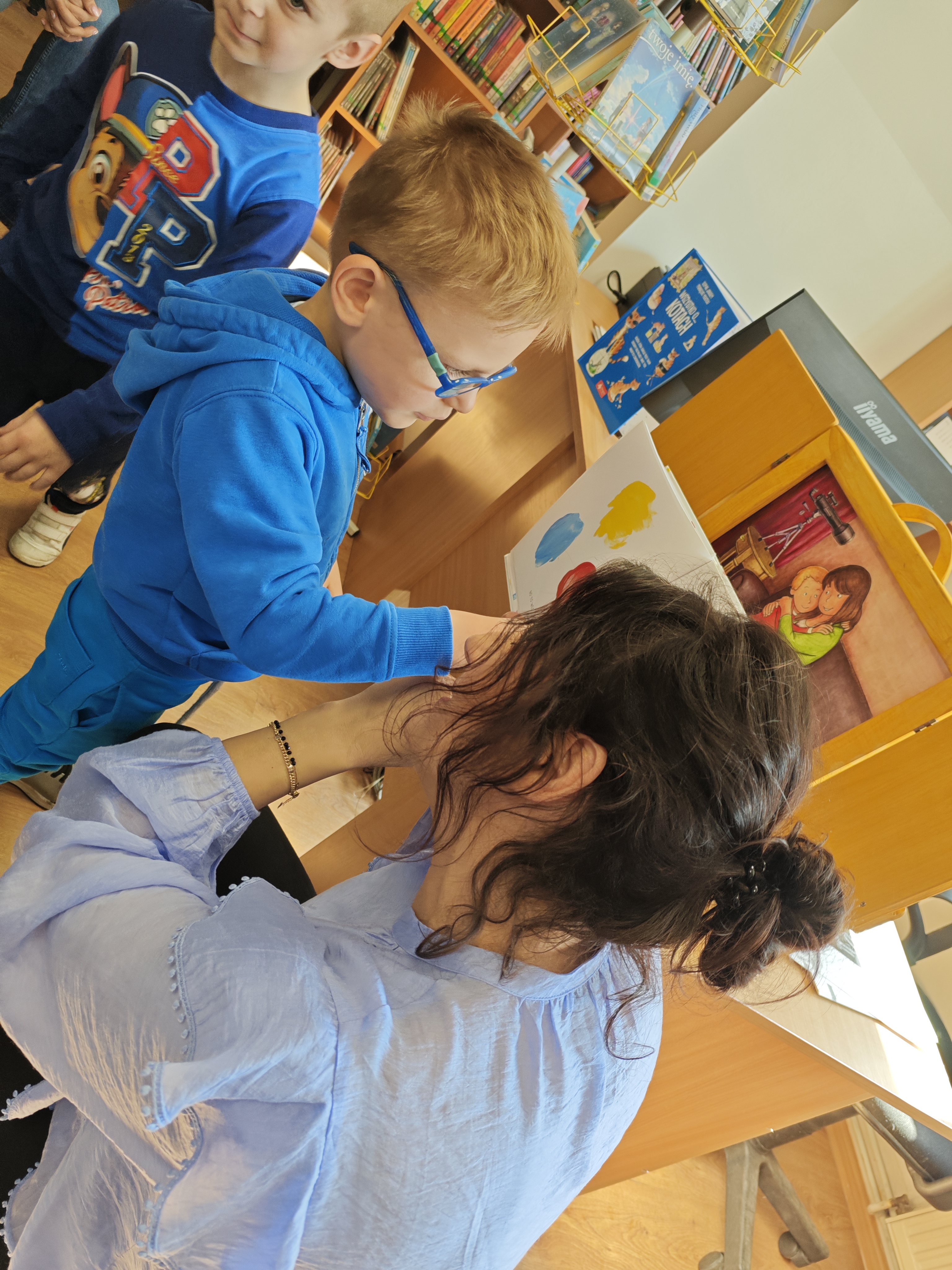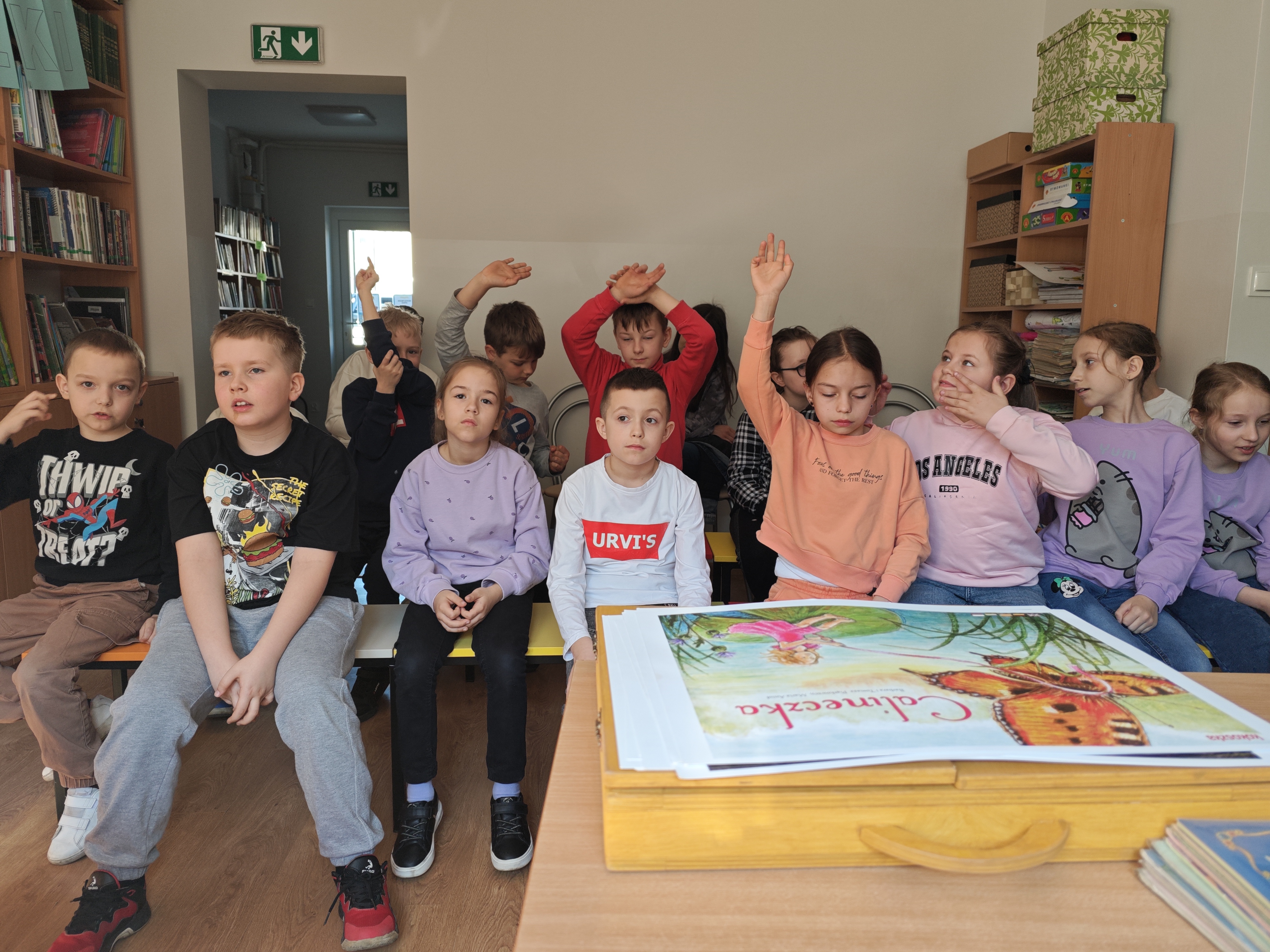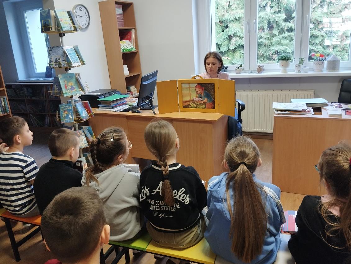 Z tej okazji w naszej bibliotece odbyły się spotkania z przedszkolakami oraz uczniami klas I–III. Rozpoczęliśmy je od teatrzyku kamishibai. Najmłodsi poznali opowieść pt. „Gburkoladki już znają: proszę, dziękuję, przepraszam”, natomiast uczniowie wysłuchali baśni „Calineczka” według Hansa Christiana Andersena.