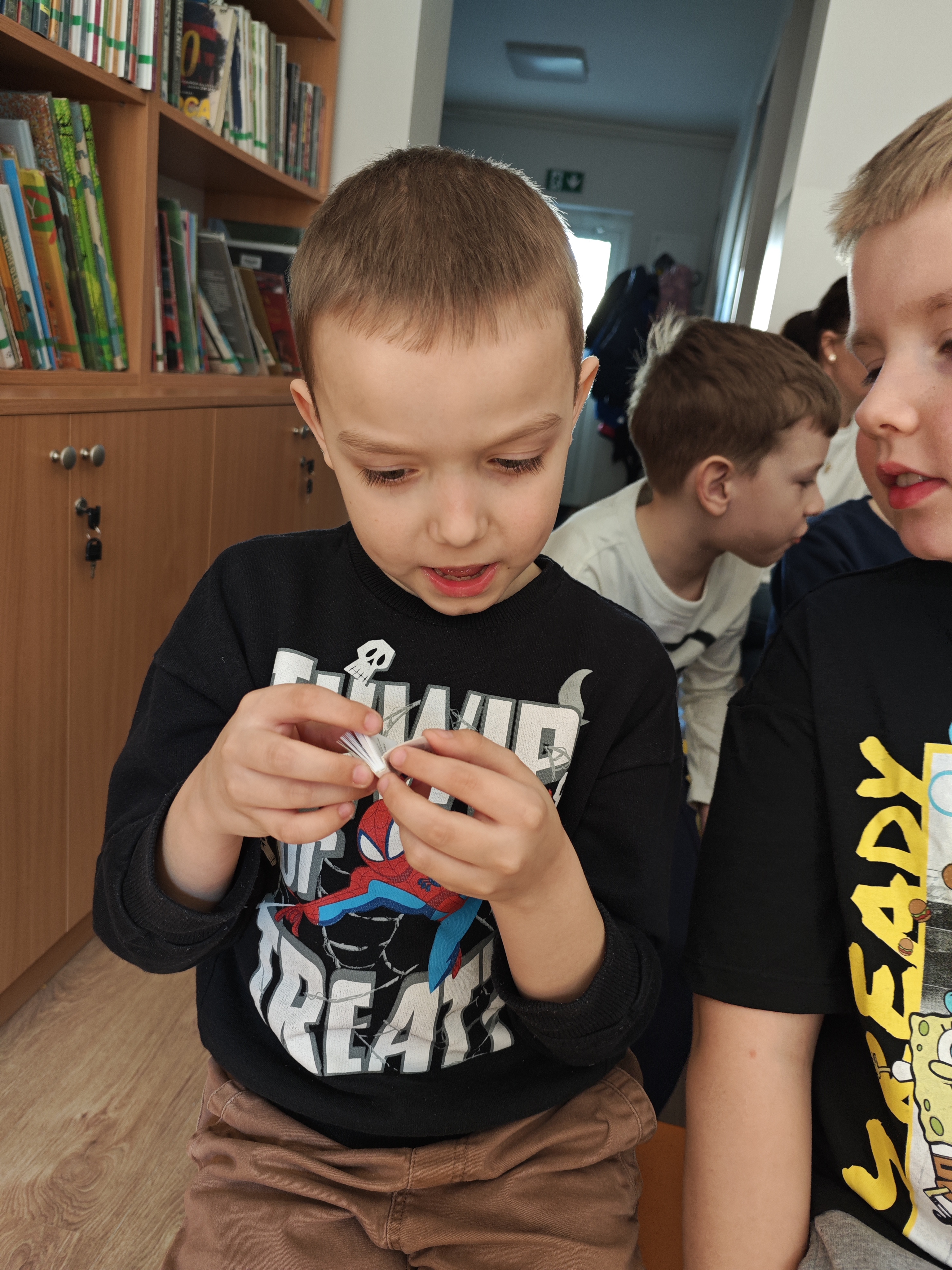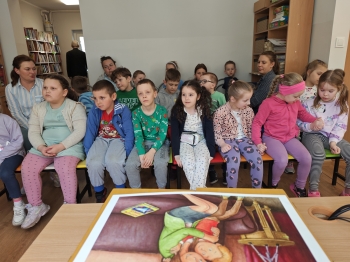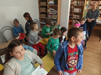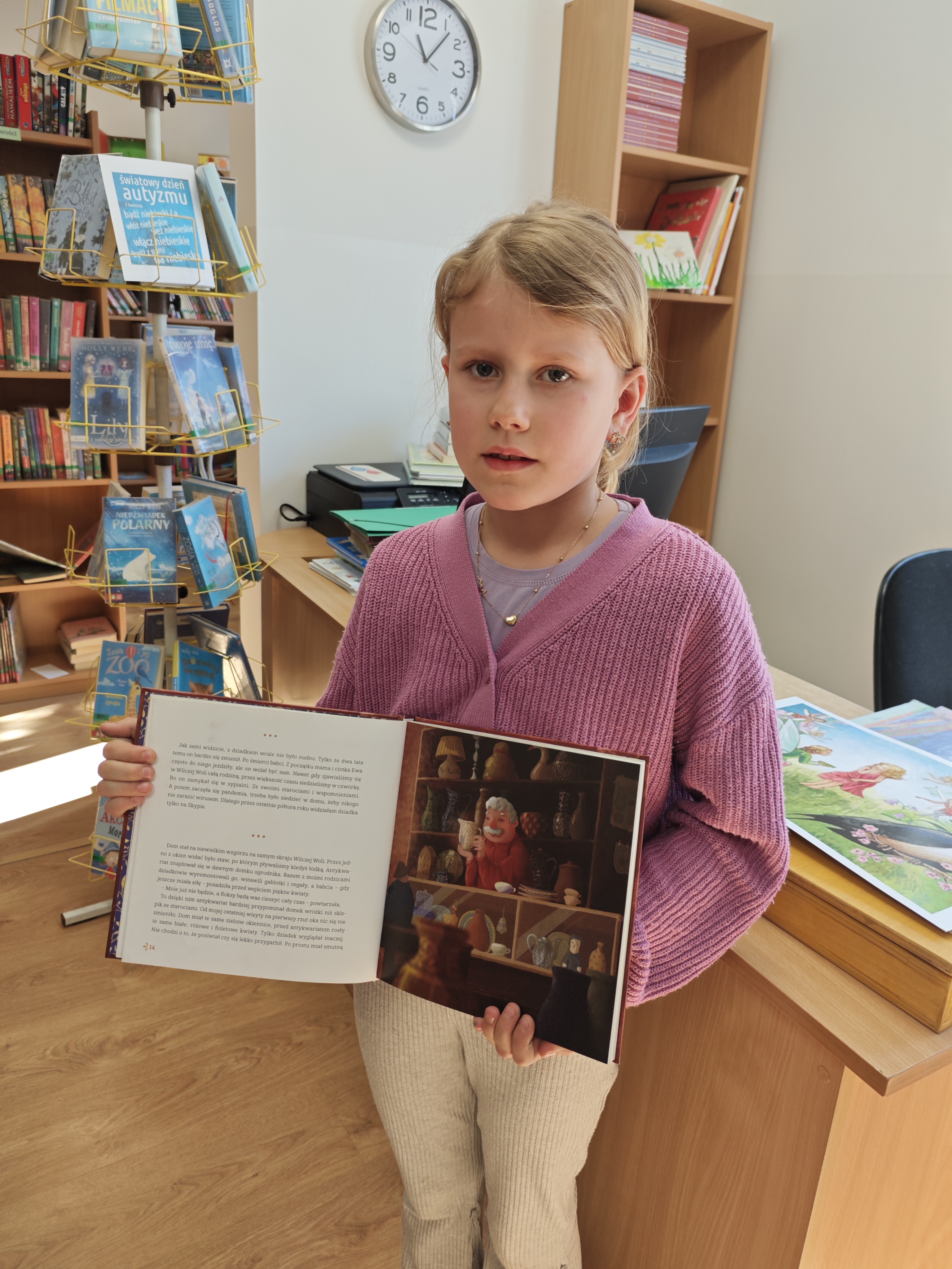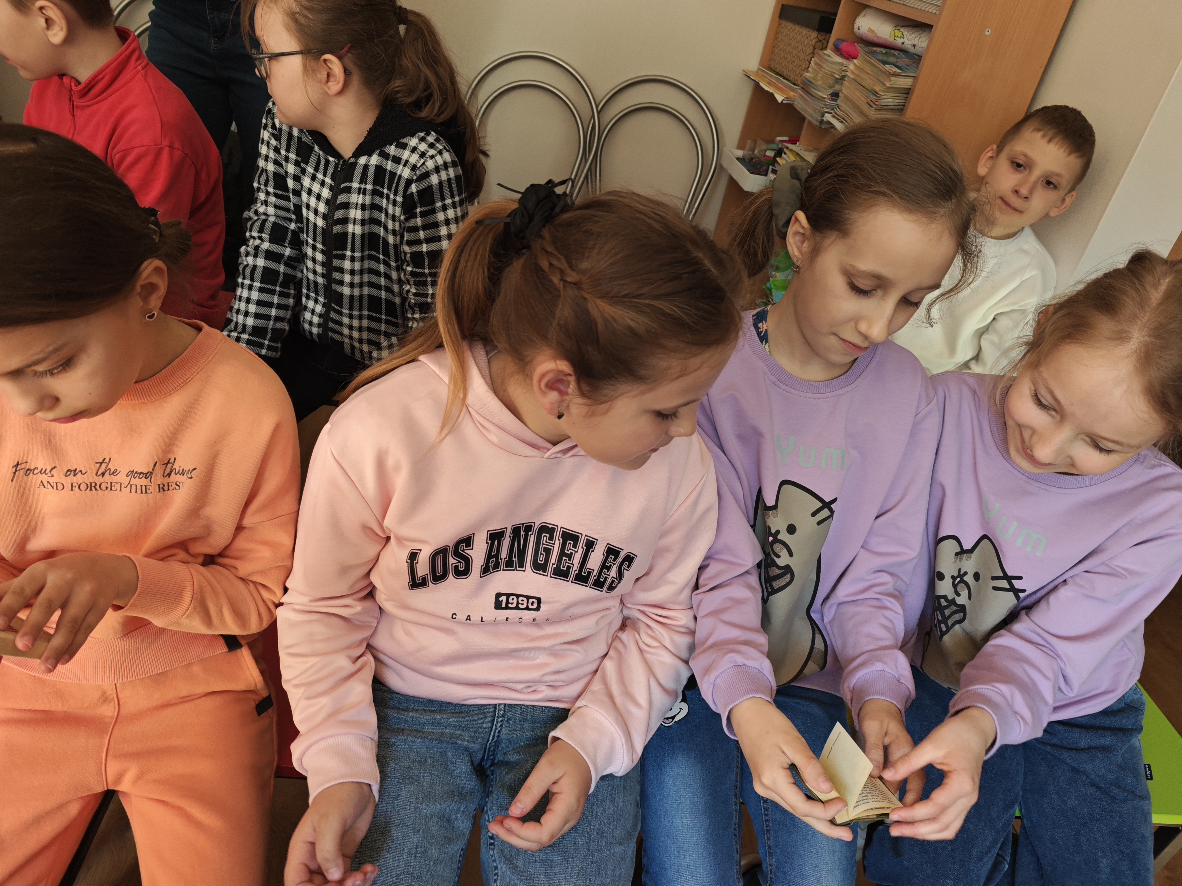 Z tej okazji w naszej bibliotece odbyły się spotkania z przedszkolakami oraz uczniami klas I–III. Rozpoczęliśmy je od teatrzyku kamishibai. Najmłodsi poznali opowieść pt. „Gburkoladki już znają: proszę, dziękuję, przepraszam”, natomiast uczniowie wysłuchali baśni „Calineczka” według Hansa Christiana Andersena.