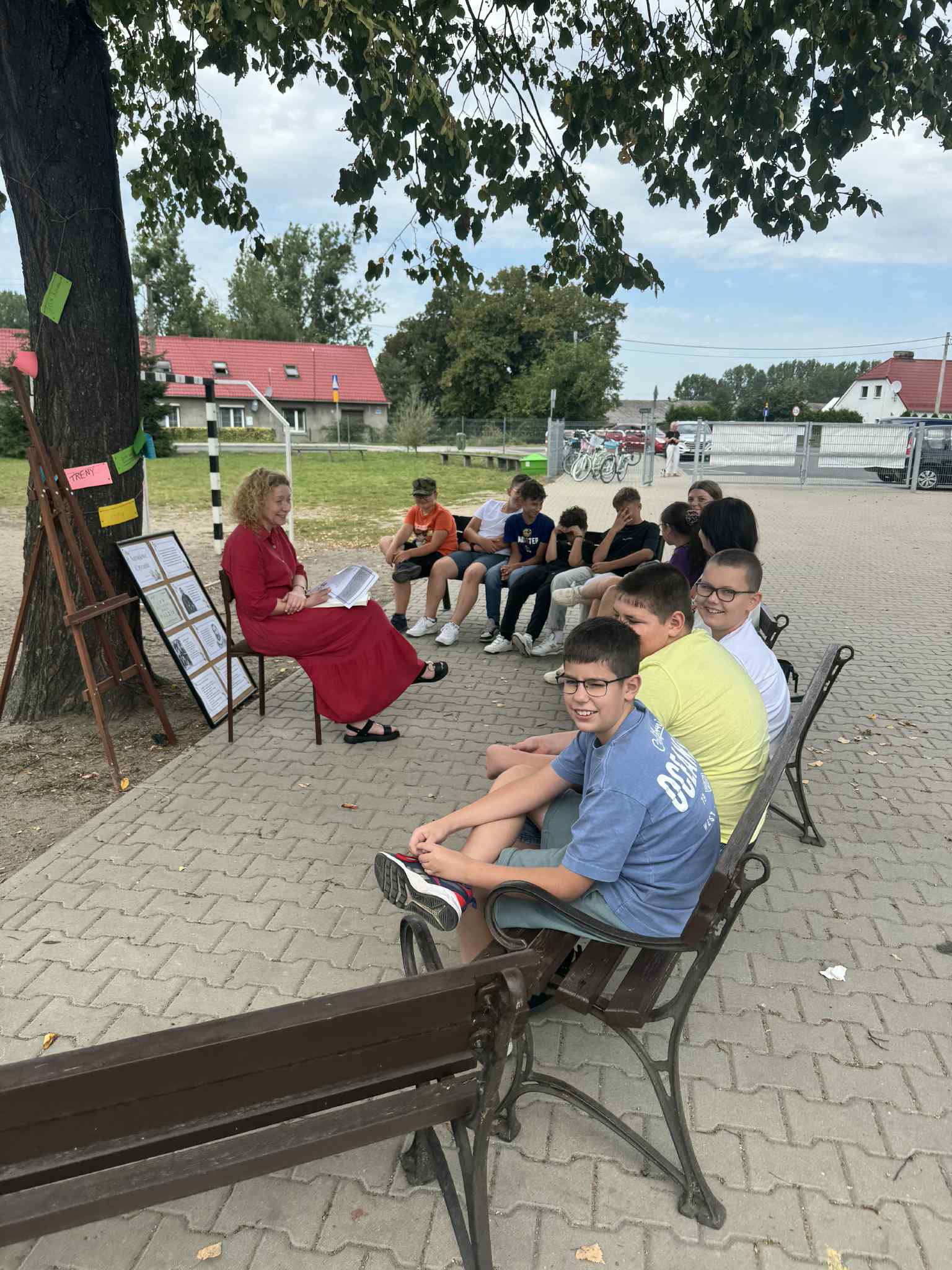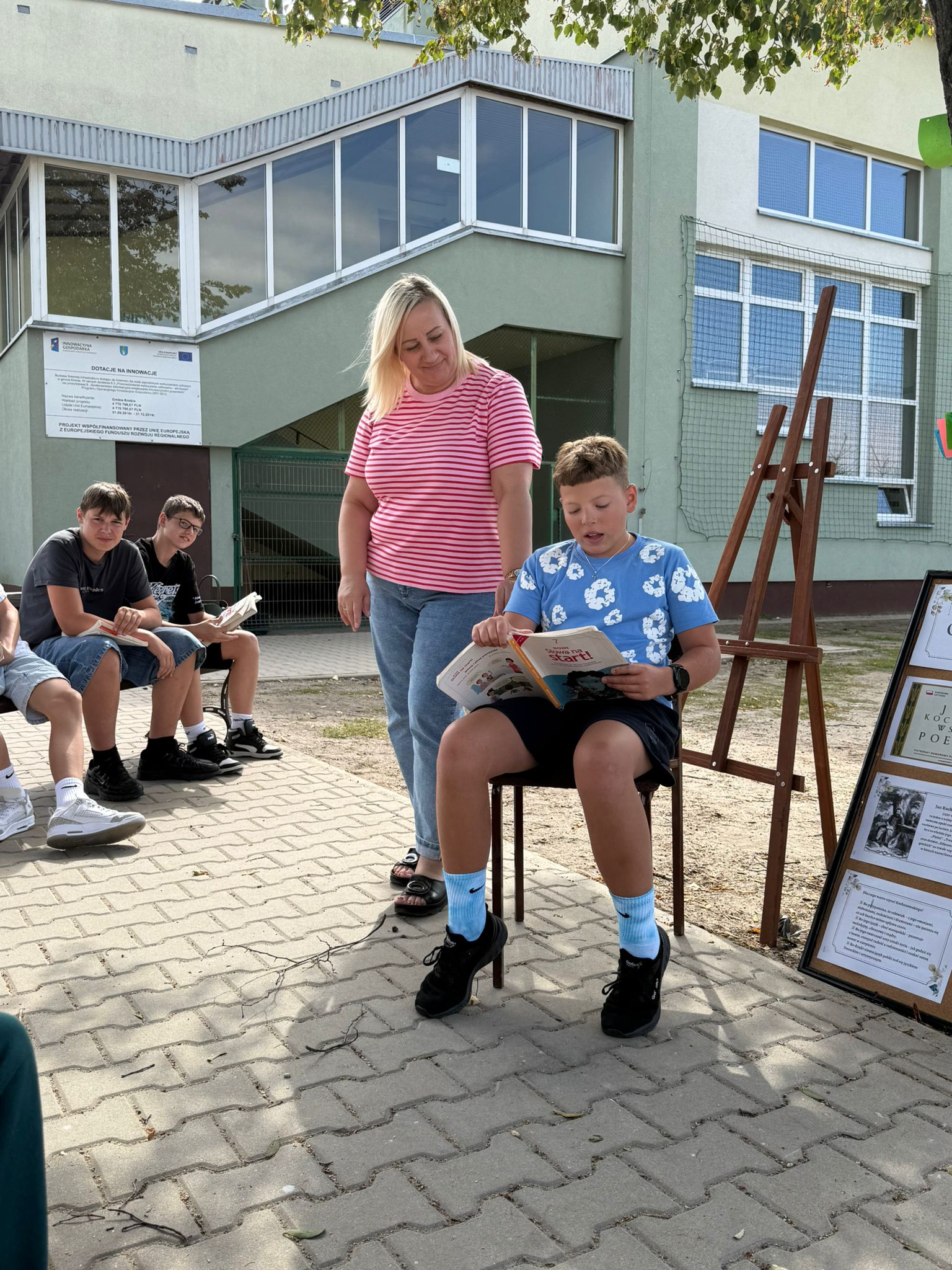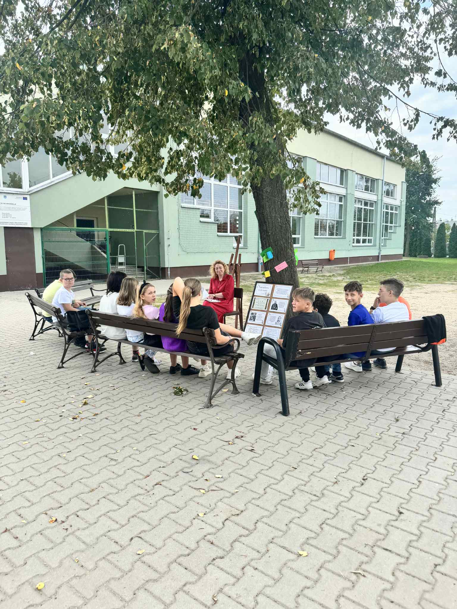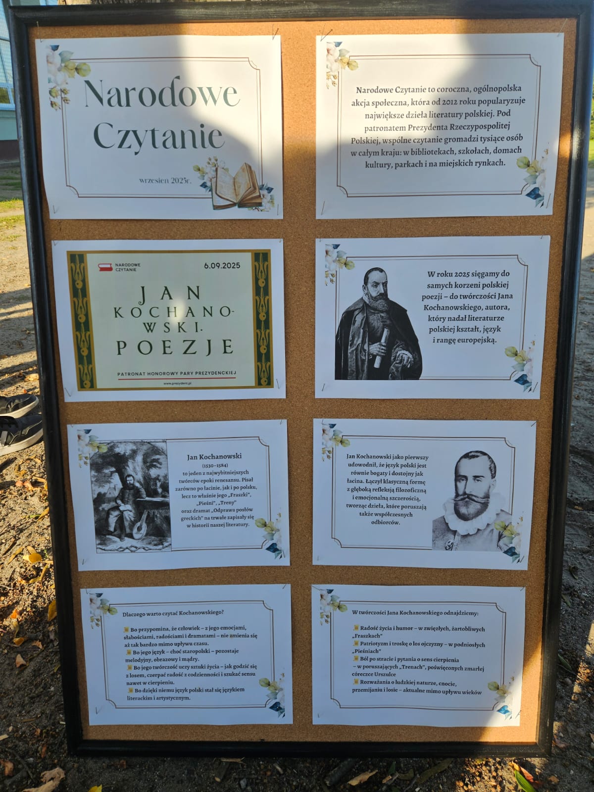 W sobotę w całej Polsce odbyła się kolejna edycja Narodowego Czytania – ogólnopolskiej akcji, której celem jest wspólne odkrywanie i promowanie polskiej literatury klasycznej. W tym roku sięgnęliśmy po utwory Jana Kochanowskiego – poety renesansu, który w lekkiej formie potrafił zawrzeć życiową mądrość, humor i refleksję nad światem. Nasze szkolne czytanie zorganizowaliśmy w piątek w wyjątkowej scenerii – na ławeczkach wokół lipy. Uczniowie i nauczyciele czytali utwory mistrza z Czarnolasu – nie tylko słynną fraszkę „Na lipę”. Młodsi uczniowie rysowali lipę i wskazywali jej zalety, a także kolorowali portret poety. Starsi m.in. zastanawiali się, jakie tematy mógłby dziś poruszyć Kochanowski w swoich wierszach.