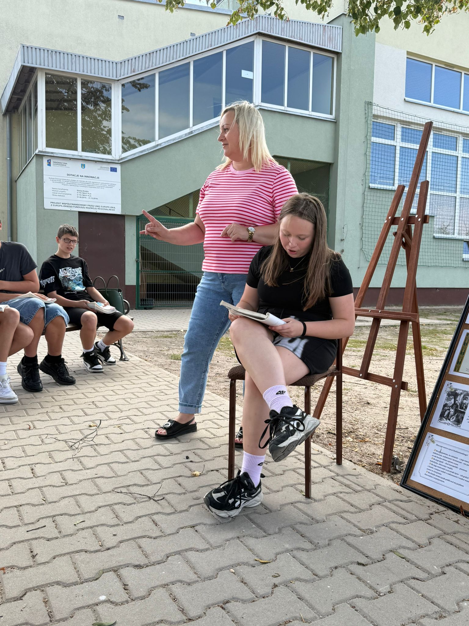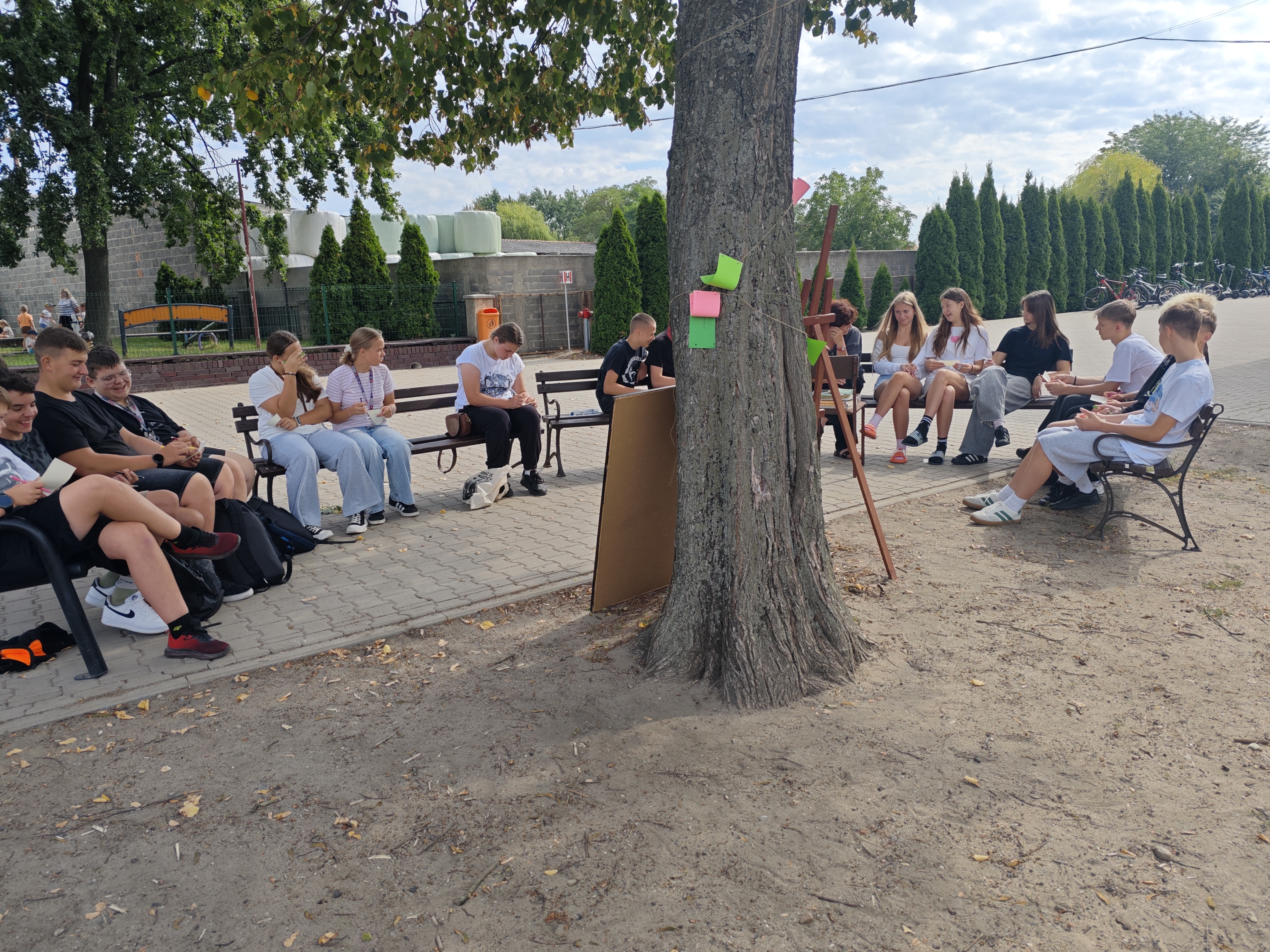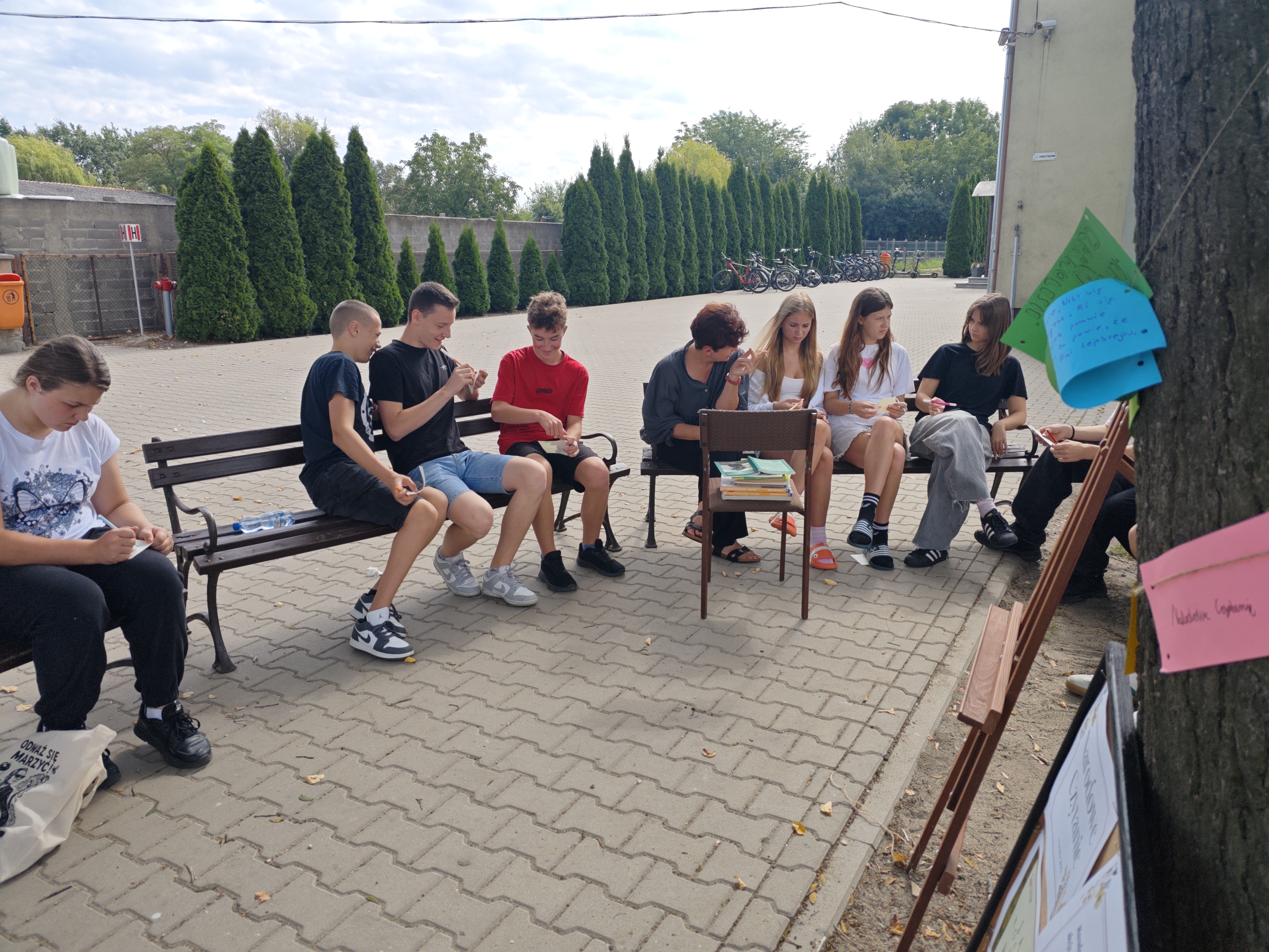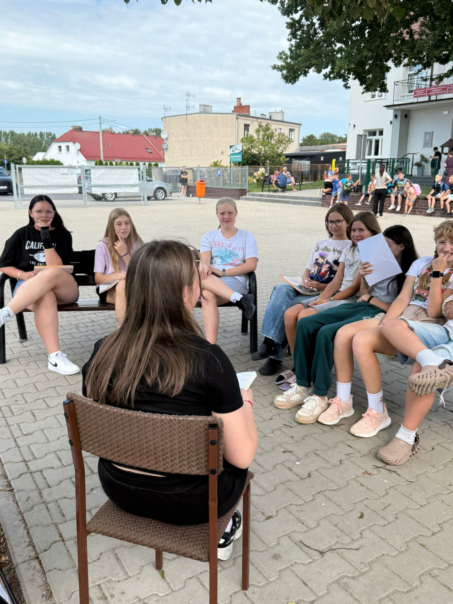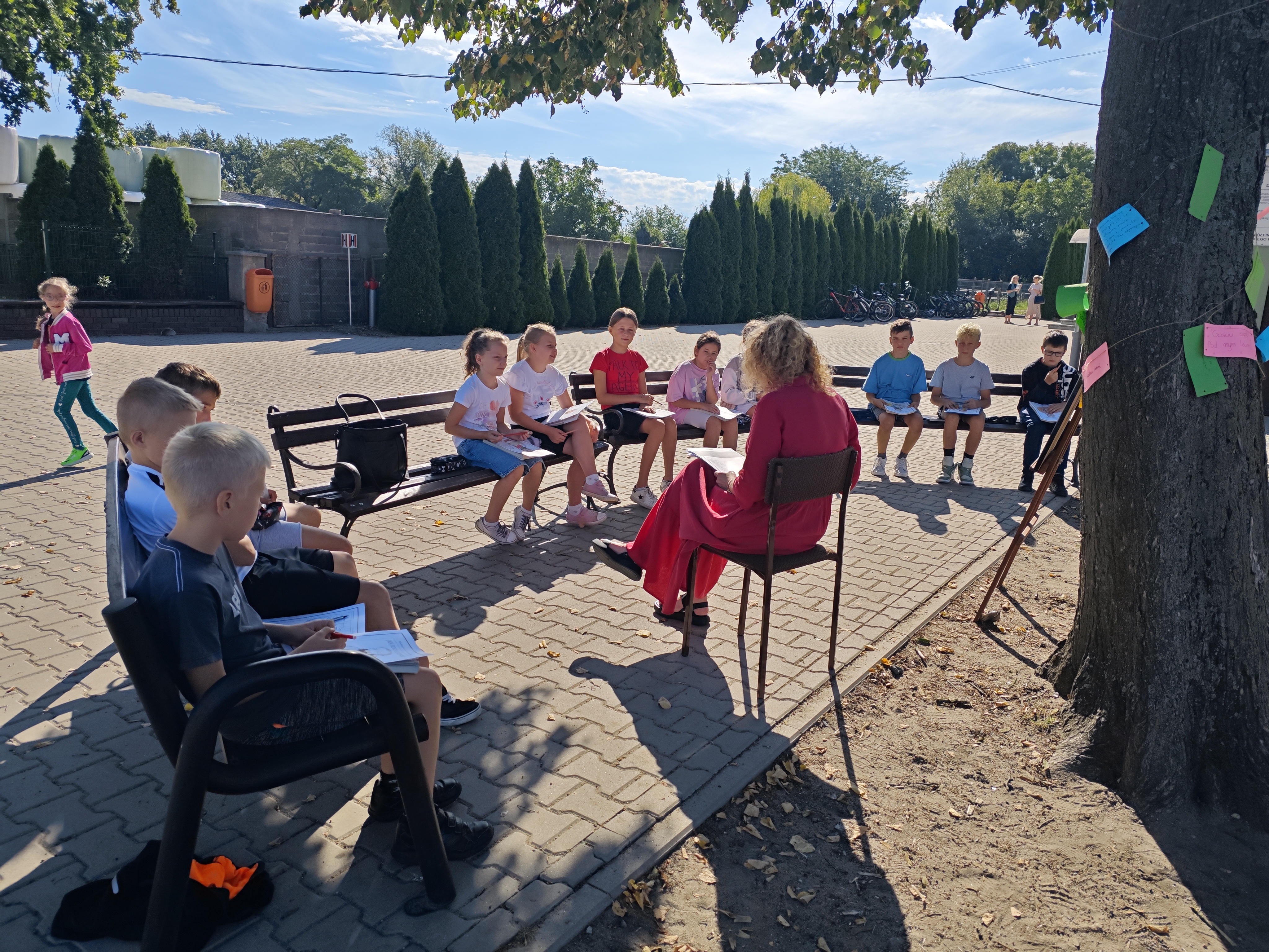 W sobotę w całej Polsce odbyła się kolejna edycja Narodowego Czytania – ogólnopolskiej akcji, której celem jest wspólne odkrywanie i promowanie polskiej literatury klasycznej. W tym roku sięgnęliśmy po utwory Jana Kochanowskiego – poety renesansu, który w lekkiej formie potrafił zawrzeć życiową mądrość, humor i refleksję nad światem. Nasze szkolne czytanie zorganizowaliśmy w piątek w wyjątkowej scenerii – na ławeczkach wokół lipy. Uczniowie i nauczyciele czytali utwory mistrza z Czarnolasu – nie tylko słynną fraszkę „Na lipę”. Młodsi uczniowie rysowali lipę i wskazywali jej zalety, a także kolorowali portret poety. Starsi m.in. zastanawiali się, jakie tematy mógłby dziś poruszyć Kochanowski w swoich wierszach.