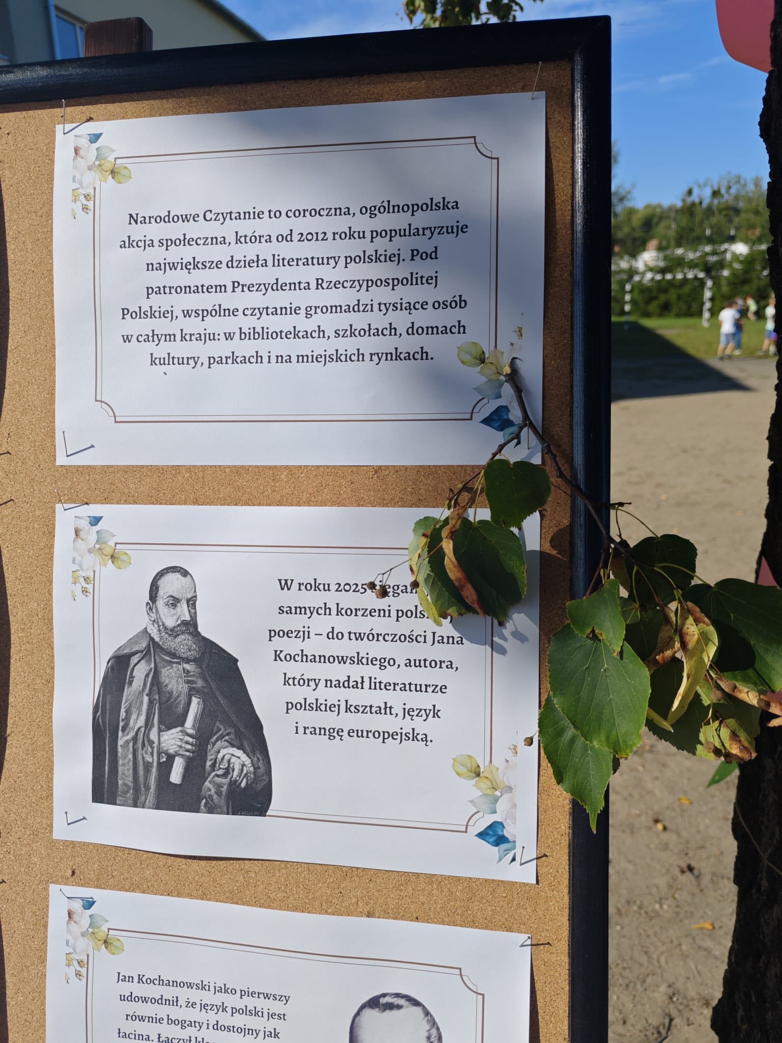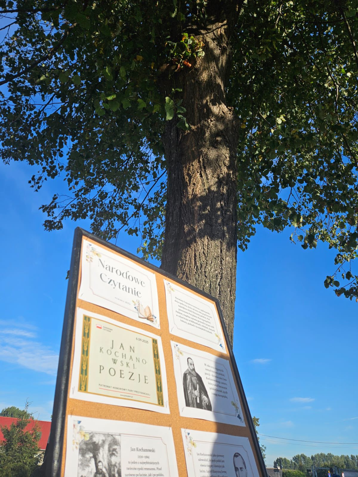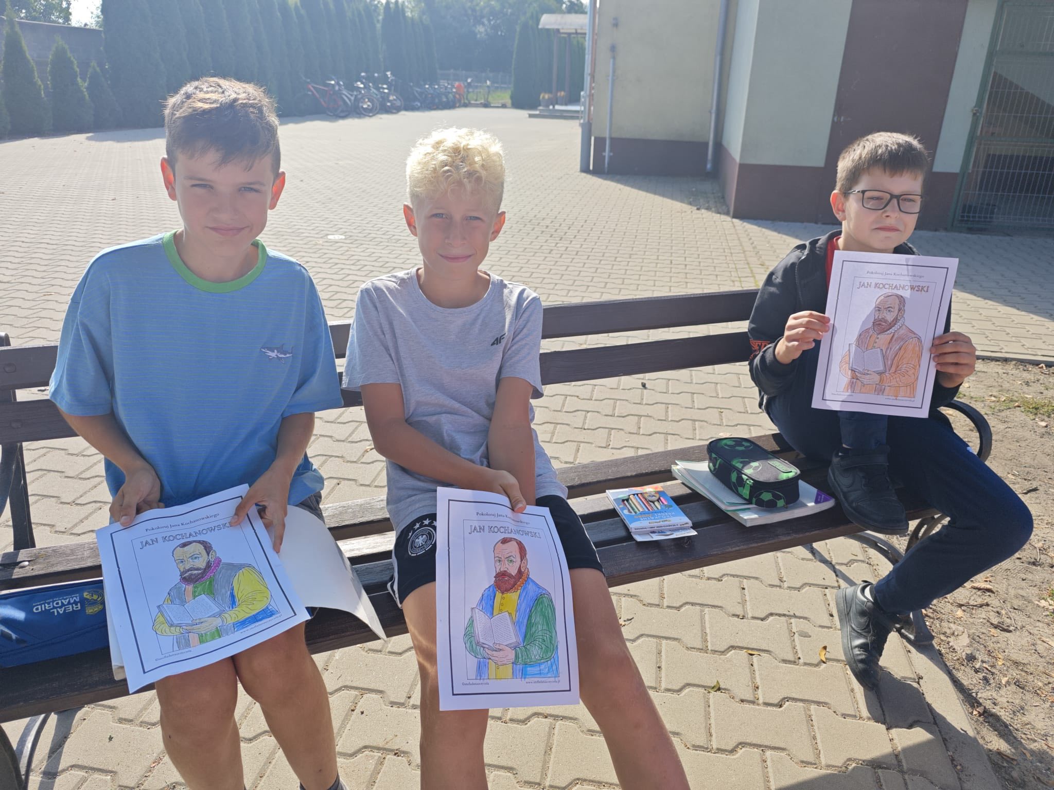 Na szkolnym boisku, na ławeczkach wokół lipy, wspólnie czytaliśmy utwory mistrza z Czarnolasu. Młodsi uczniowie rysowali lipę i kolorowali portret poety, a starsi zastanawiali się m.in., o czym pisałby Kochanowski, gdyby żył dzisiaj.