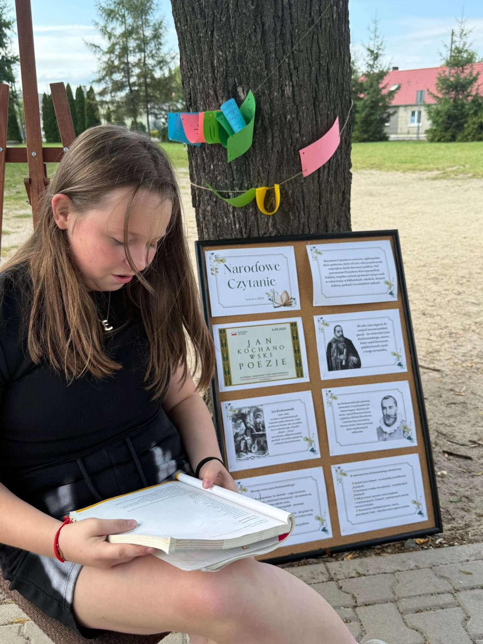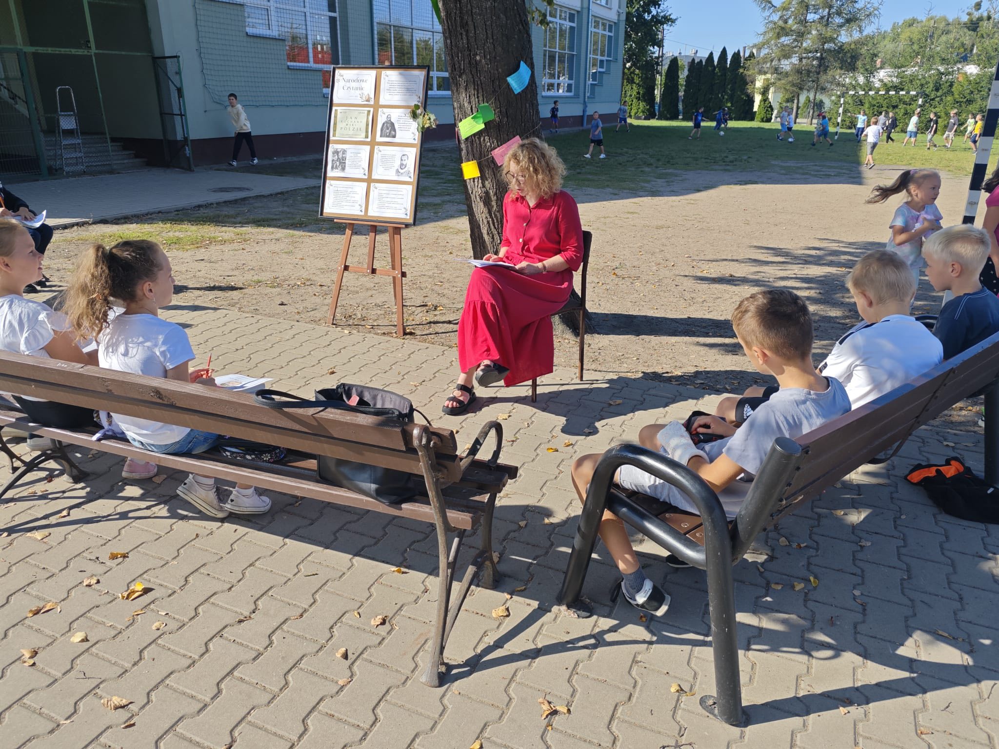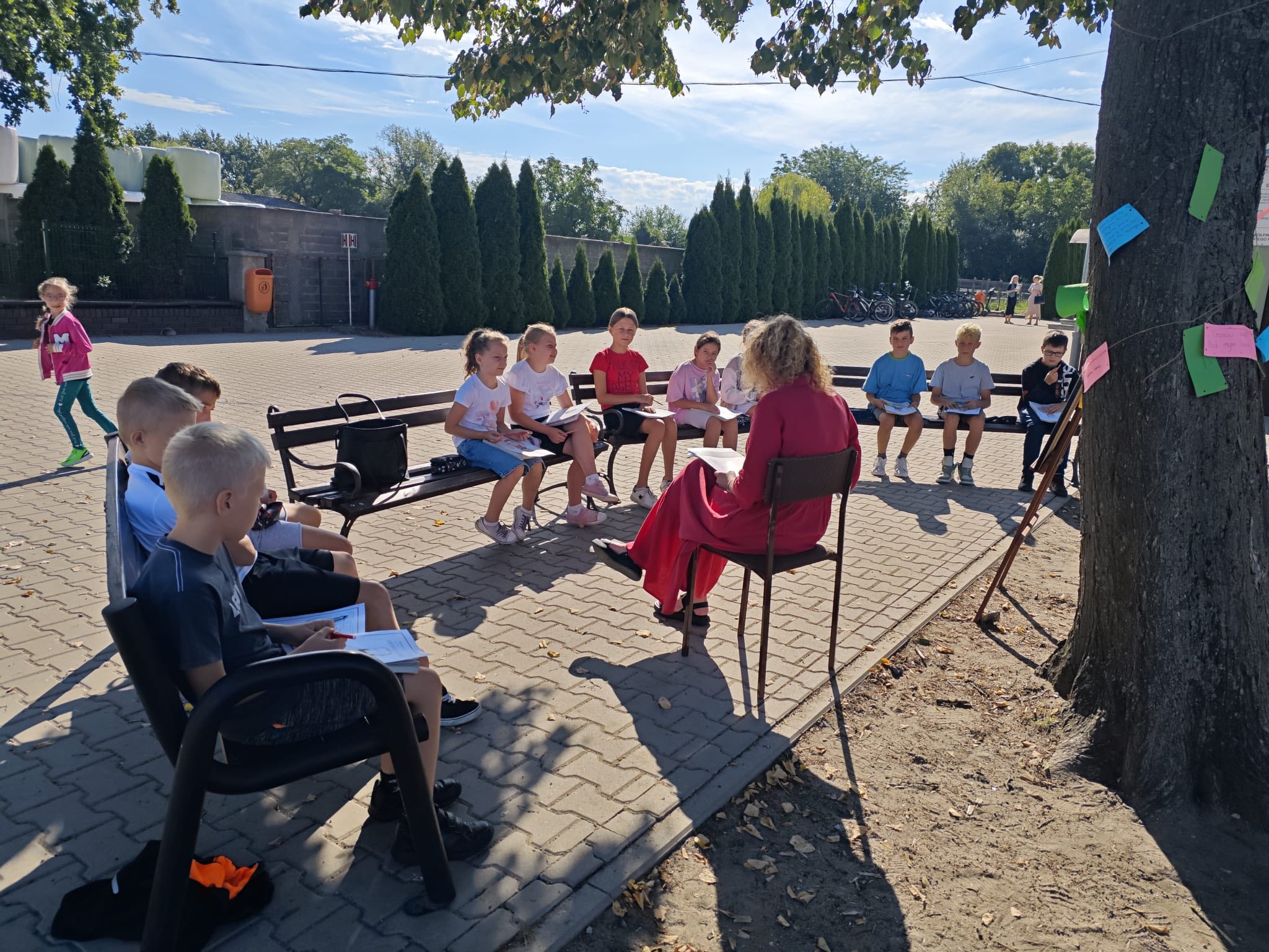 Na szkolnym boisku, na ławeczkach wokół lipy, wspólnie czytaliśmy utwory mistrza z Czarnolasu. Młodsi uczniowie rysowali lipę i kolorowali portret poety, a starsi zastanawiali się m.in., o czym pisałby Kochanowski, gdyby żył dzisiaj.