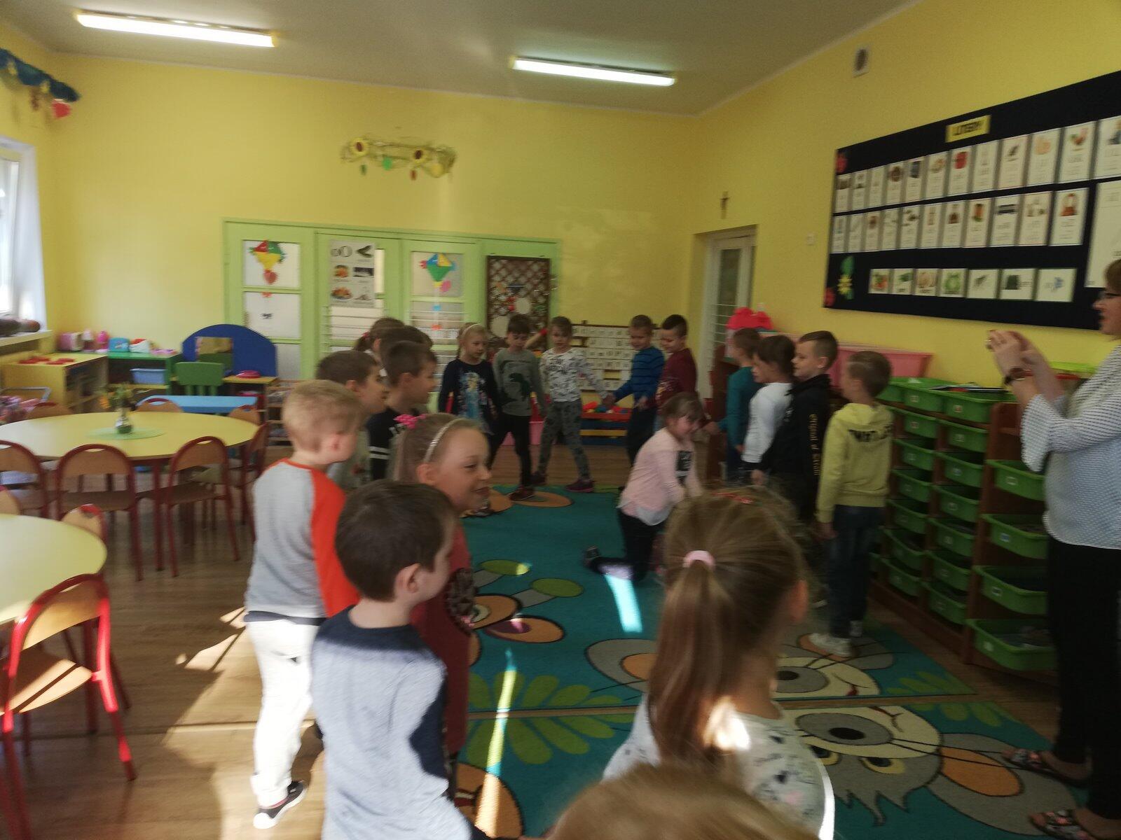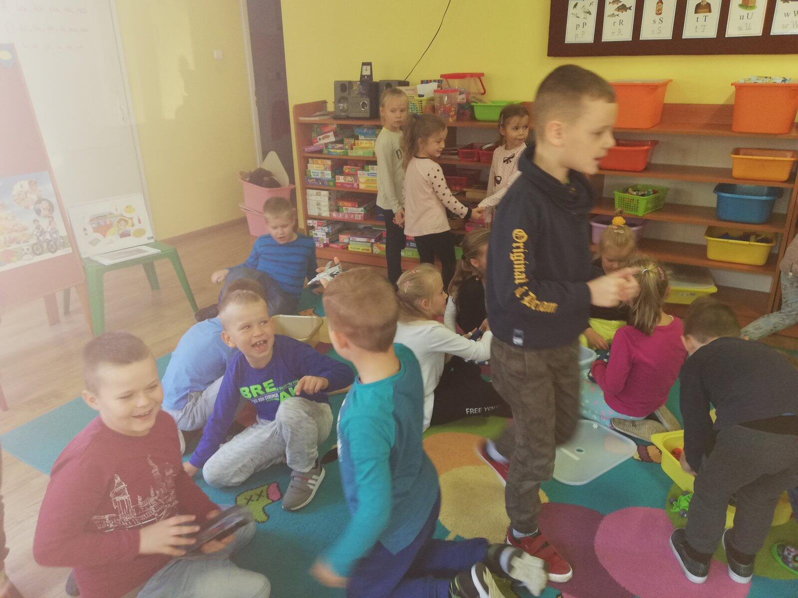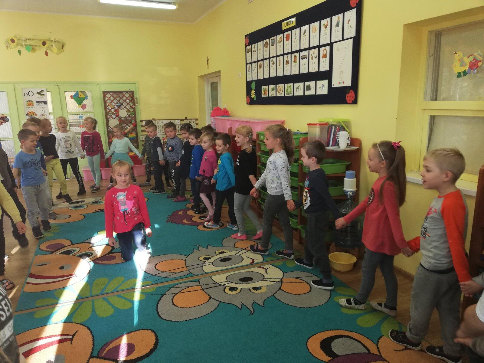 Goście zostali zaproszeni do wspólnej zabawy. Miło było znów być beztroskim przedszkolakiem. Wszystkim bardzo odpowiadała ta forma wspólnego spędzania czasu. Uczniowie wrócili do wspomnień, a młodsi z zainteresowaniem obserwowali swoich starszych kolegów.