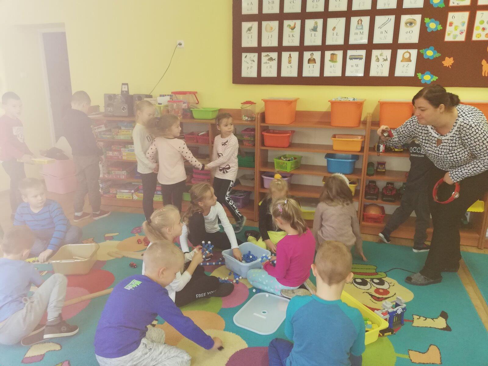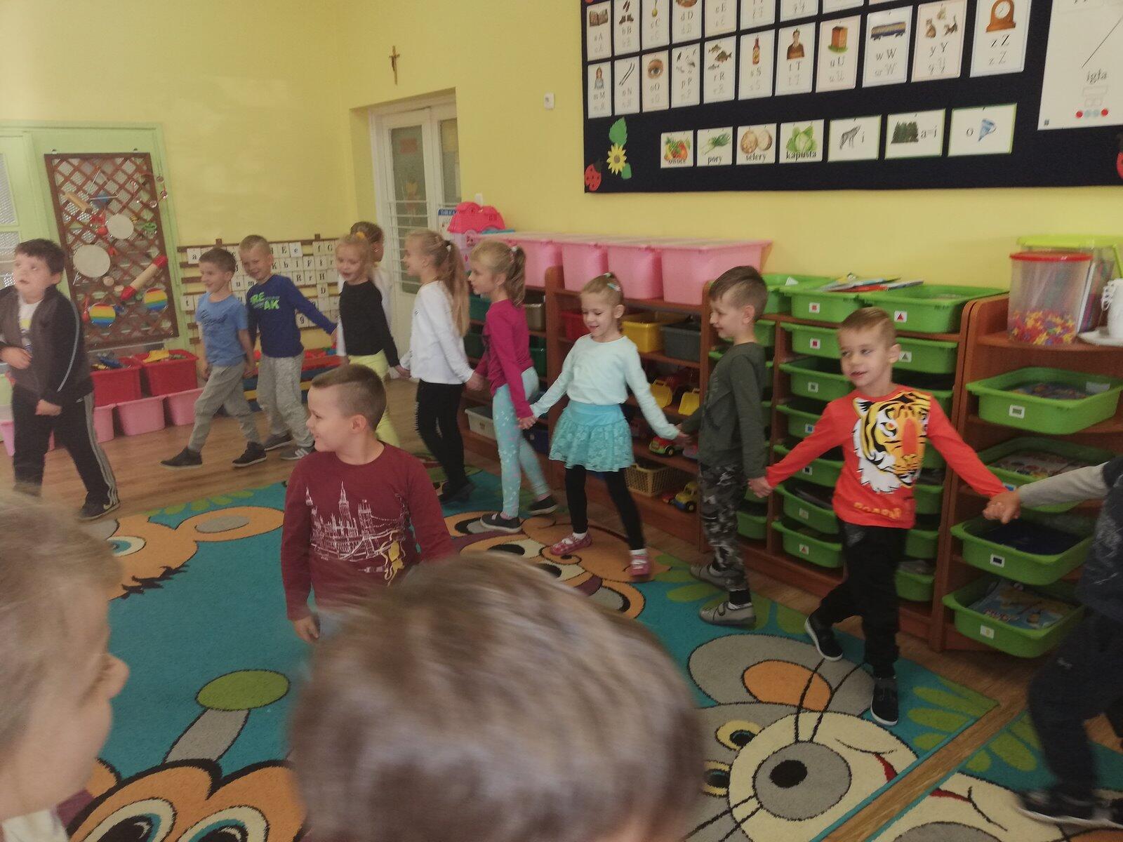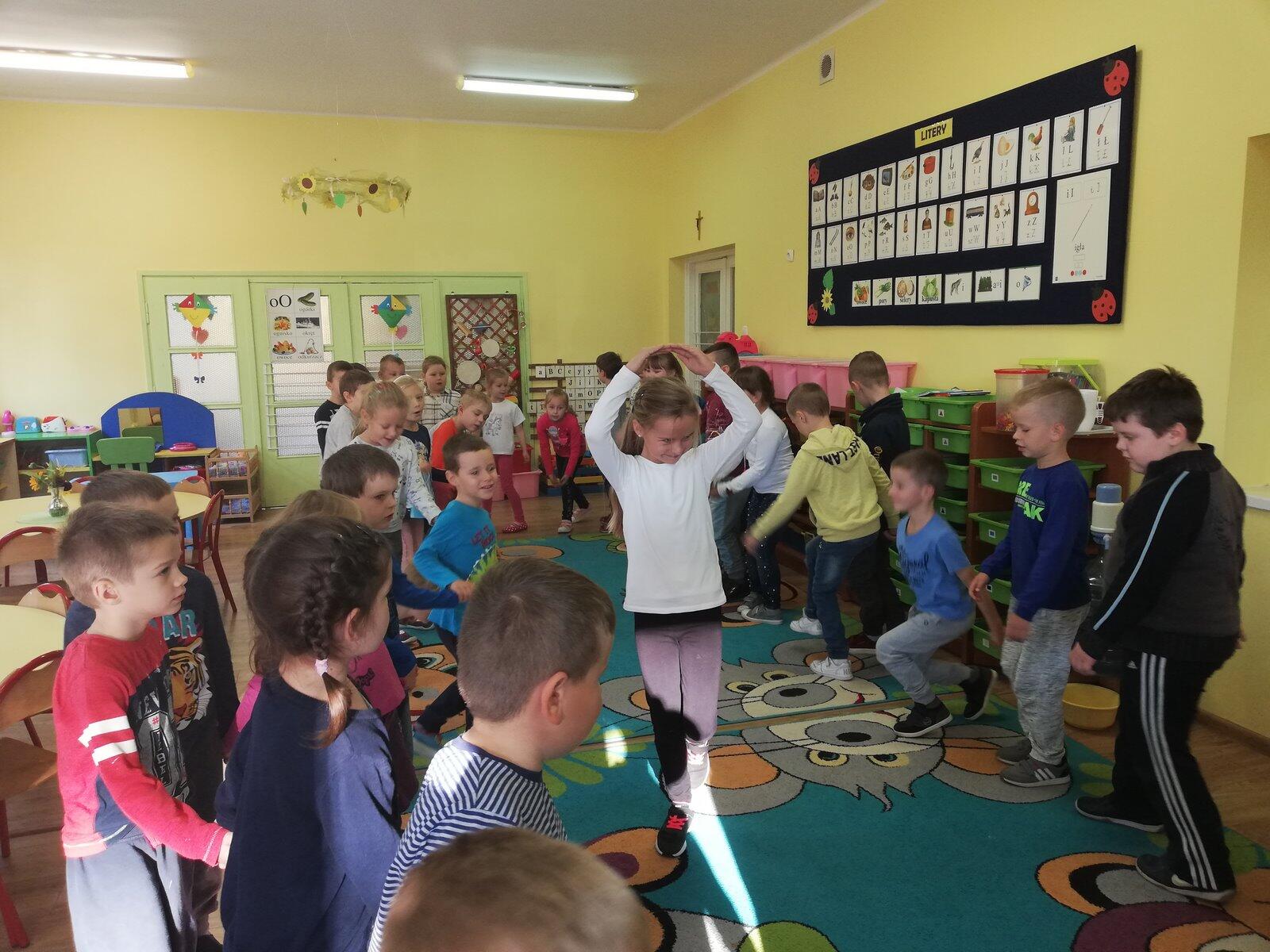 Goście zostali zaproszeni do wspólnej zabawy. Miło było znów być beztroskim przedszkolakiem. Wszystkim bardzo odpowiadała ta forma wspólnego spędzania czasu. Uczniowie wrócili do wspomnień, a młodsi z zainteresowaniem obserwowali swoich starszych kolegów.