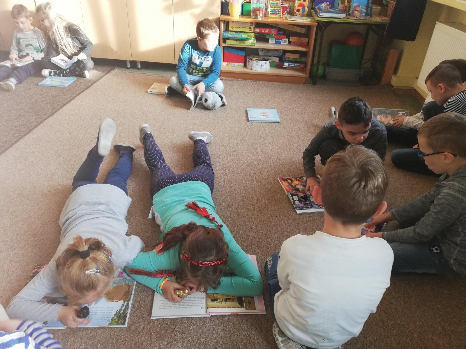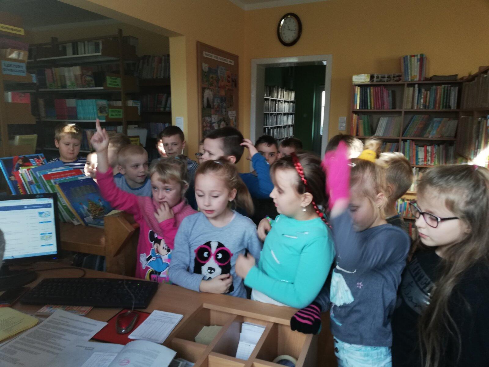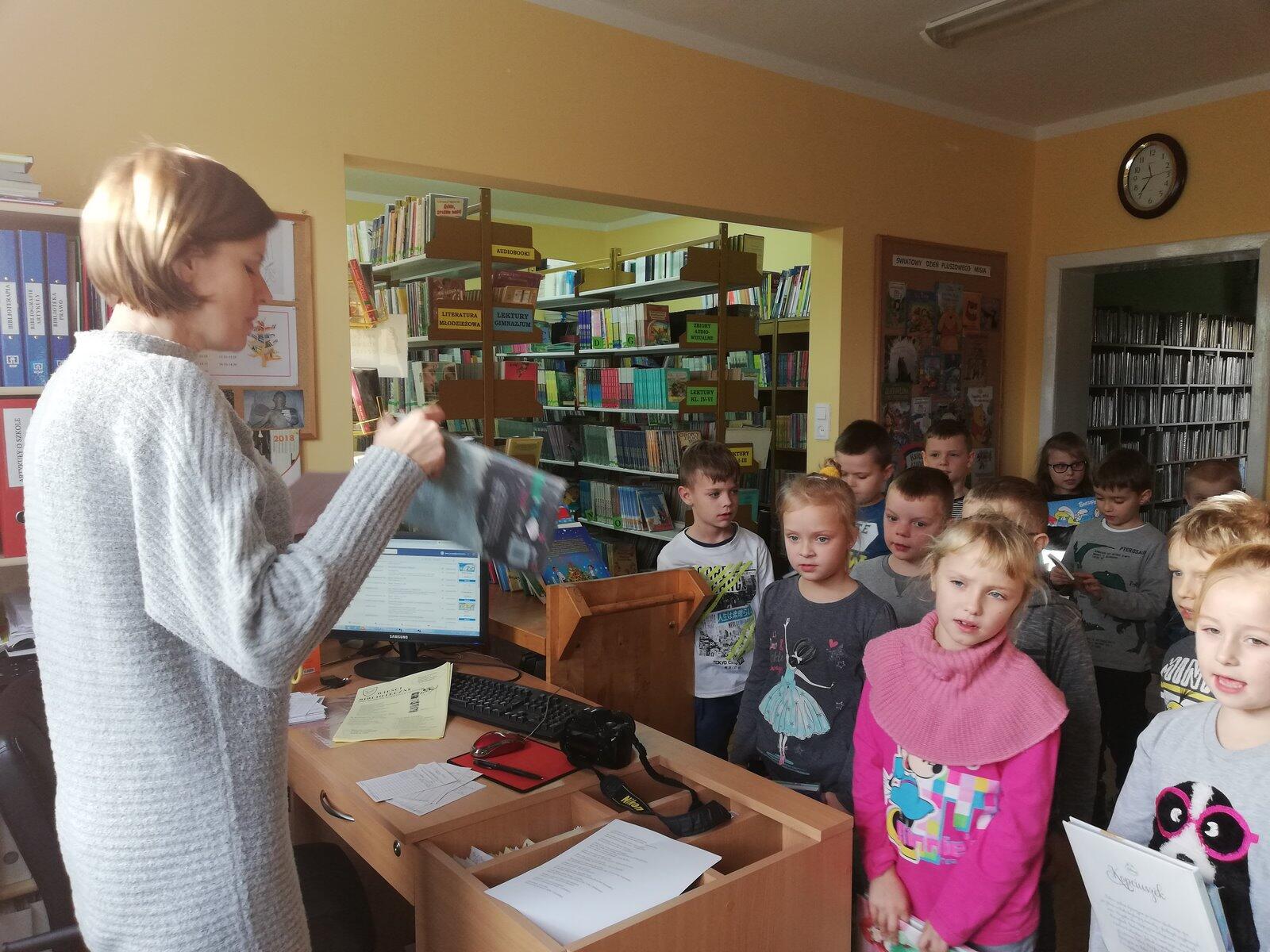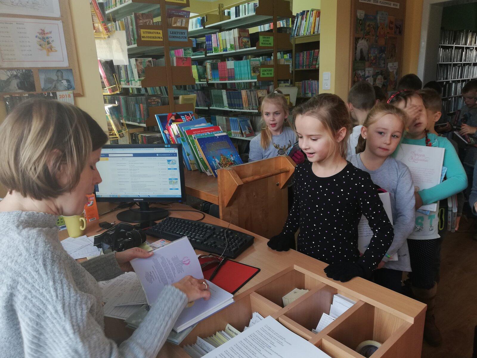 Dnia 30 listopada uczniowie klasy 1 zostali pasowani na czytelników biblioteki szkolnej. Pani bibliotekarka opowiedziała, na czym polega praca w bibliotece. Zaprezentowała różne zbiory książek oraz w jaki sposób należy z nich korzystać, aby mogły jeszcze służyć innym. Zachęciła uczniów do wypożyczania książek, a następnie wręczyła uczniom upominki – zakładki do książek.