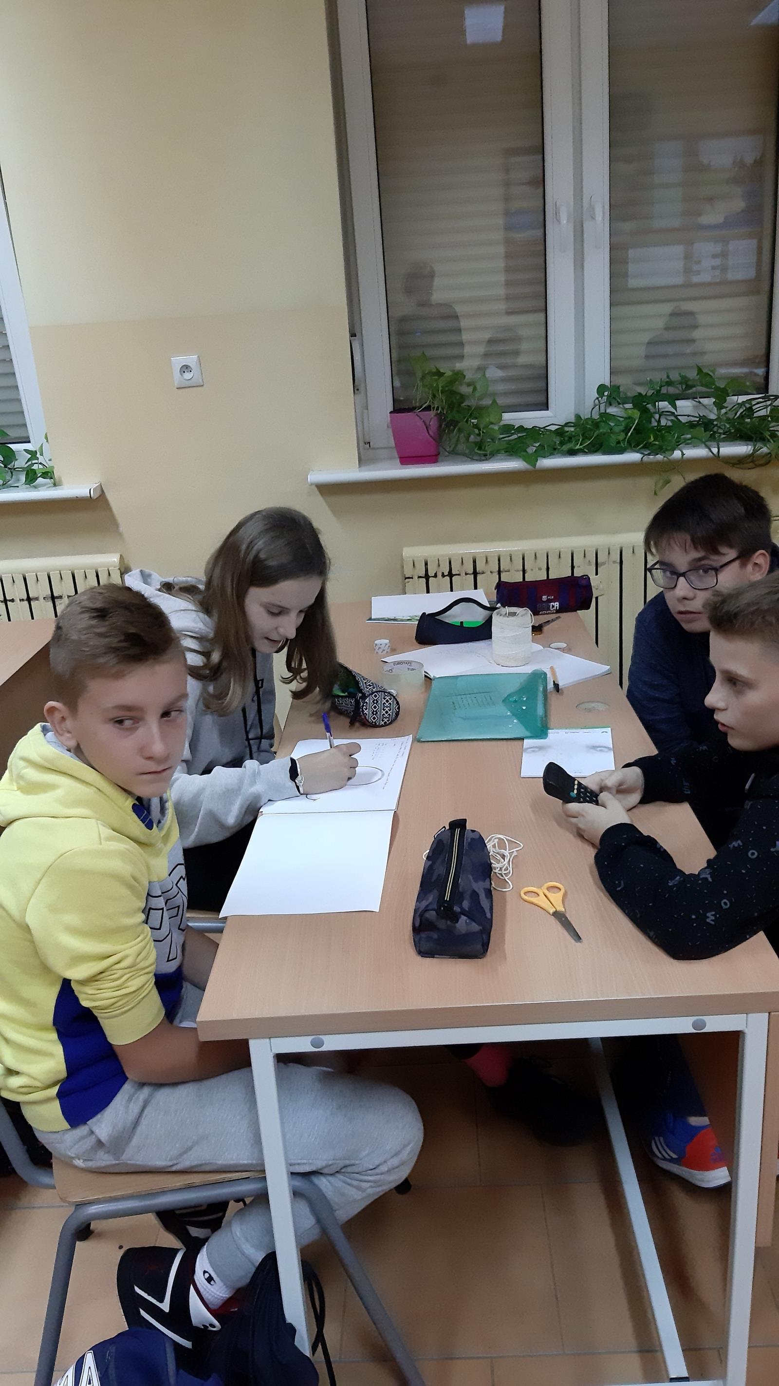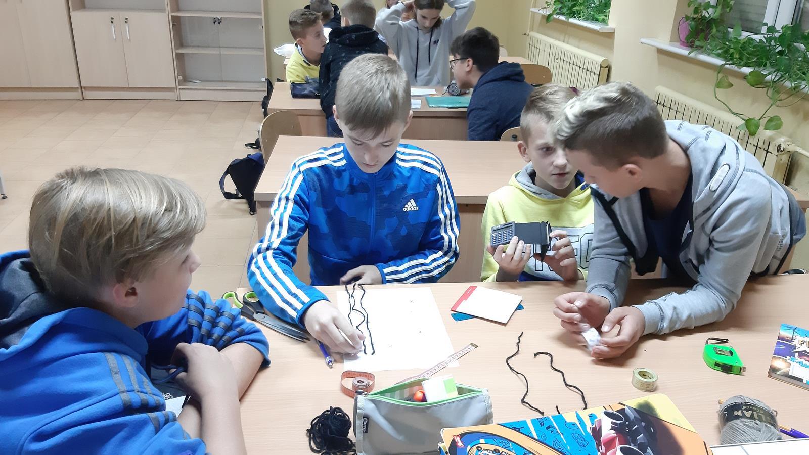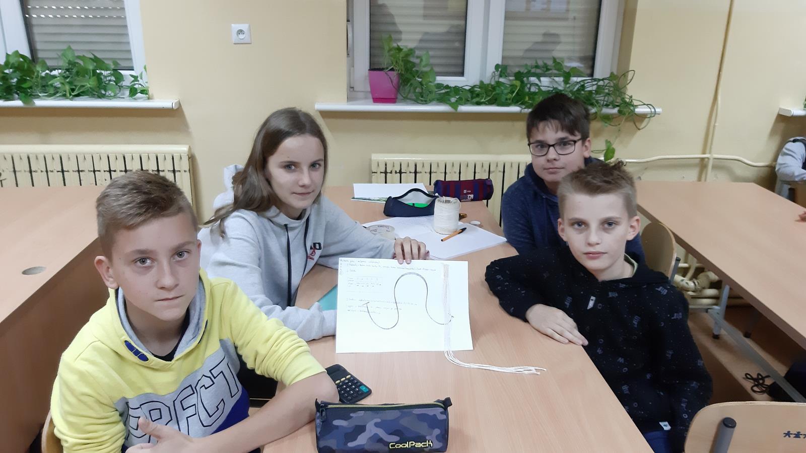 Pierwsze spotkanie z fizyką i już za sobą pierwsze doświadczenia fizyczne. Oczywiście przed przystąpieniem do eksperymentów uczniowie dowiedzieli się, jak przeprowadzać doświadczenia, analizować i interpretować wyniki pomiarów. Pierwszym wyzwaniem dla uczniów było wykonanie pomiaru wielokrotnego za pomocą prostych przyrządów pomiarowych. Zmagania klasy przedstawione na zdjęciach.