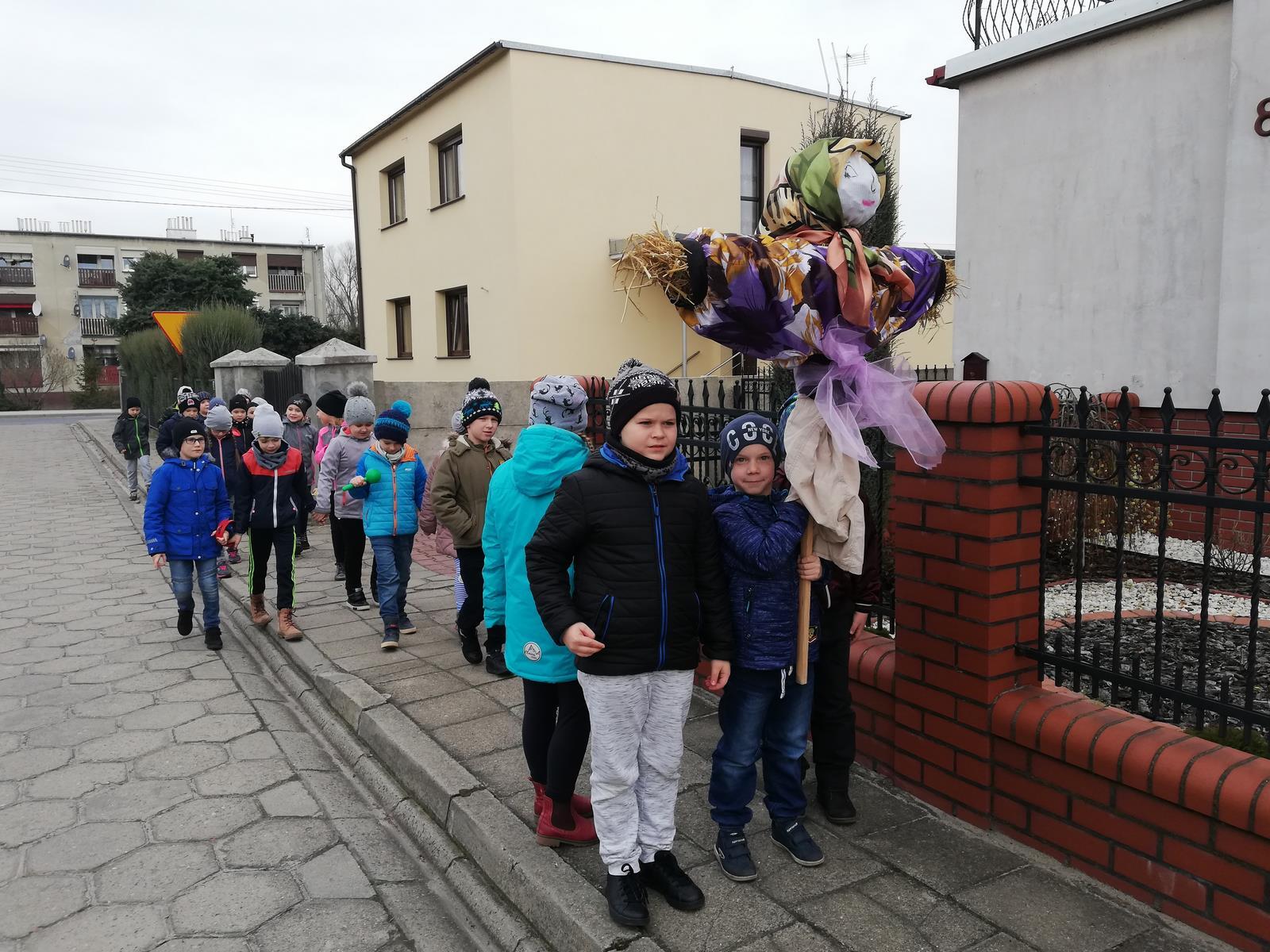 Dnia 21 marca z okazji Pierwszego Dnia Wiosny wybraliśmy się jej szukać.Z tej okazji odbył się przemarsz ulicami ze śpiewem. Na zakończenie obchodów Dnia Wiosny, tradycyjnie na boisku szkolnym, pożegnaliśmy zimę paląc wszystkie Marzanny.