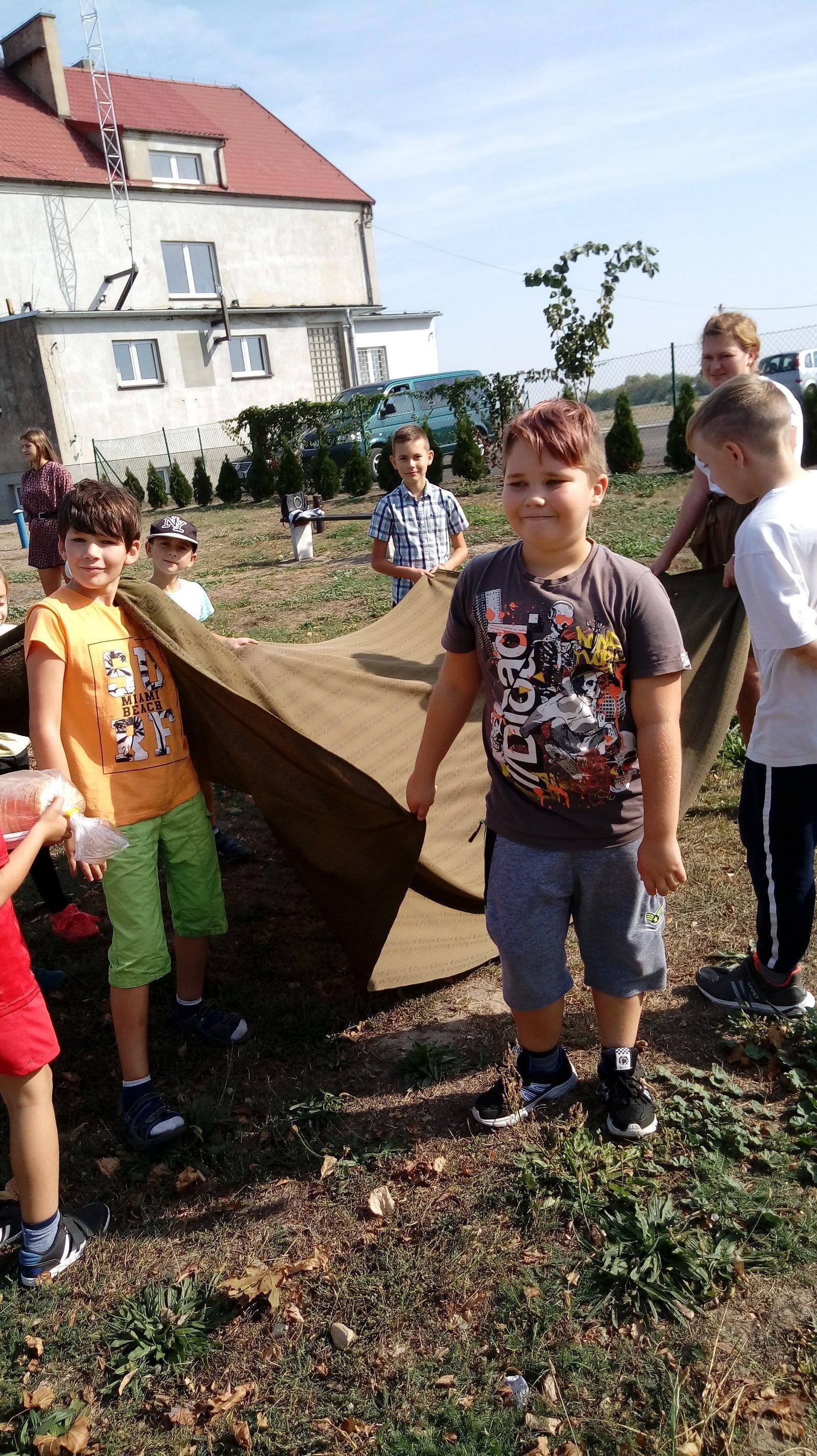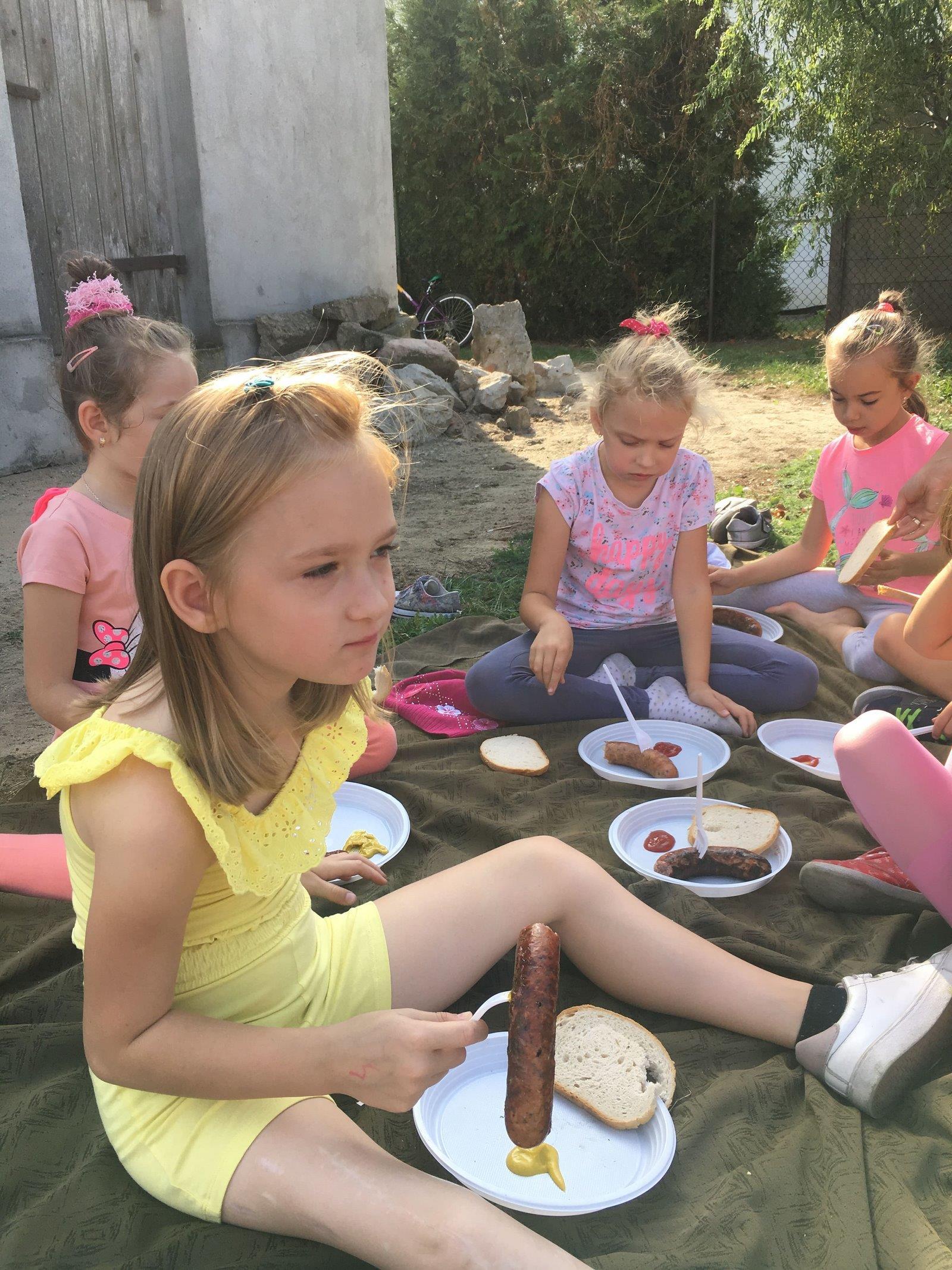 W dniu 21 września uczniowie klas I-III wraz z przedszkolakami grupy "Biedronki" powitały nową porę roku. Ten dzień obfitował w zabawy jesienne na świeżym powietrzu. Jesień przywitała nas bardzo symapatycznie piękną słoneczną pogodą. Mamy z Rady Rodziców przygotowały miłą niespodziankę w postaci ogniska. Każde dziecko mogło usmażyć sobie kiełbaskę i ze smakiem ją zjeść. W tym dniu wszystkie dzieci ubrane były w barwy jesienne.