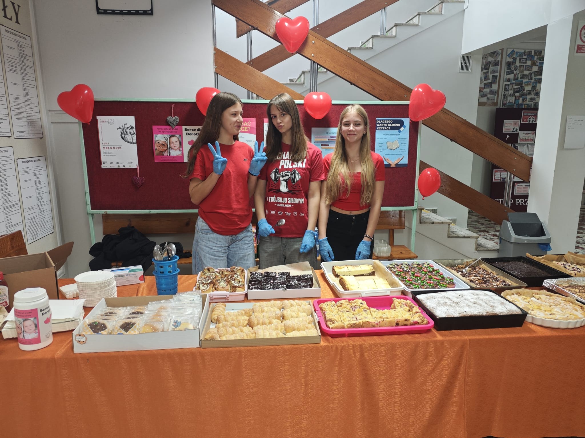 Dziękujemy również naszym dzielnym pomocniczkom, które obsługiwały stoisko podczas przerw. Samorząd Szkolny ze swoją niezastąpioną opiekunką - panią Justyną Rosiak spisał się na medal! Przesyłamy słodkie całusy dla Dorotki Fenrych.
