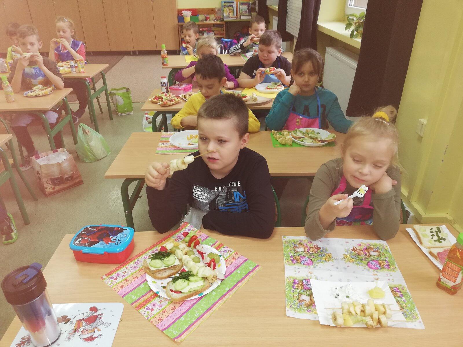 8 listopada klasa Ia przygotowała śniadanie w ramach programu edukacyjnego "Śniadanie Daje Moc". Uczniowie przynieśli produkty, z których wykonali zdrowe, pożywne kanapki. Wykorzystane zostały również warzywa i owoce oraz zdrowy sok do popijania.