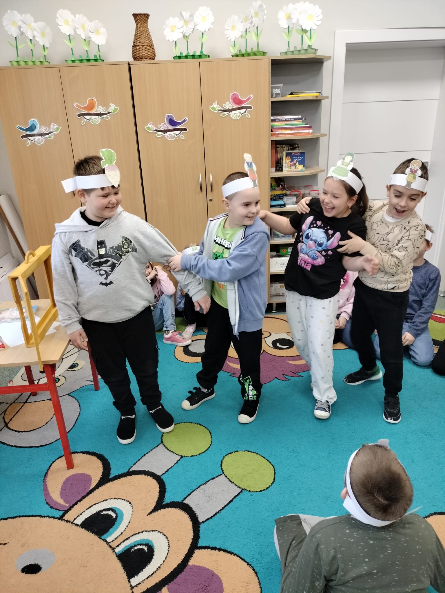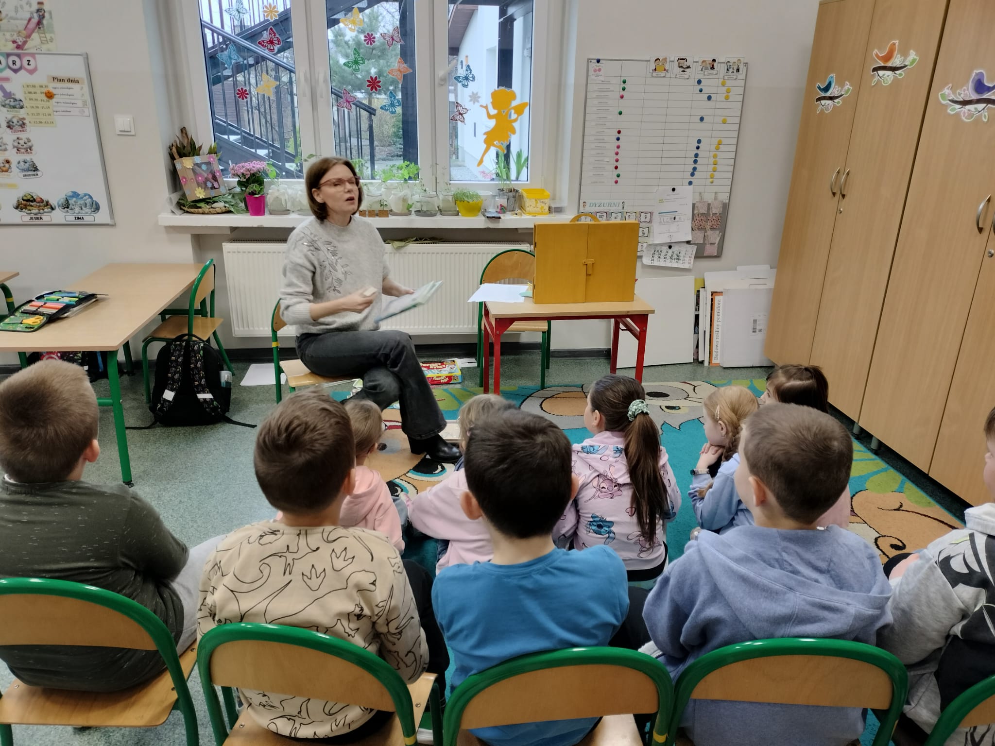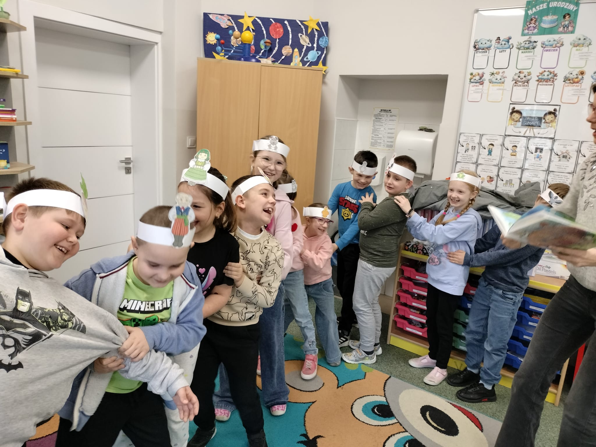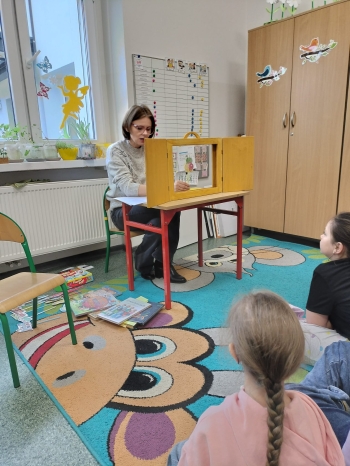 Uczniowie najmłodszych klas mieli okazję wysłuchać wierszy zarówno klasycznych poetów - Jana Brzechwa i Julian Tuwim, jak i współczesnych twórców - Michała Rusinka czy Małgorzaty Strzałkowskiej. Poezja to nie tylko czytanie – to także ruch i ekspresja! Wspólnie inscenizowaliśmy wybrane wiersze. Dodatkowo, wykorzystaliśmy teatrzyk kamishibai, który połączył poezję z obrazem, angażując wyobraźnię i uwagę uczniów.
