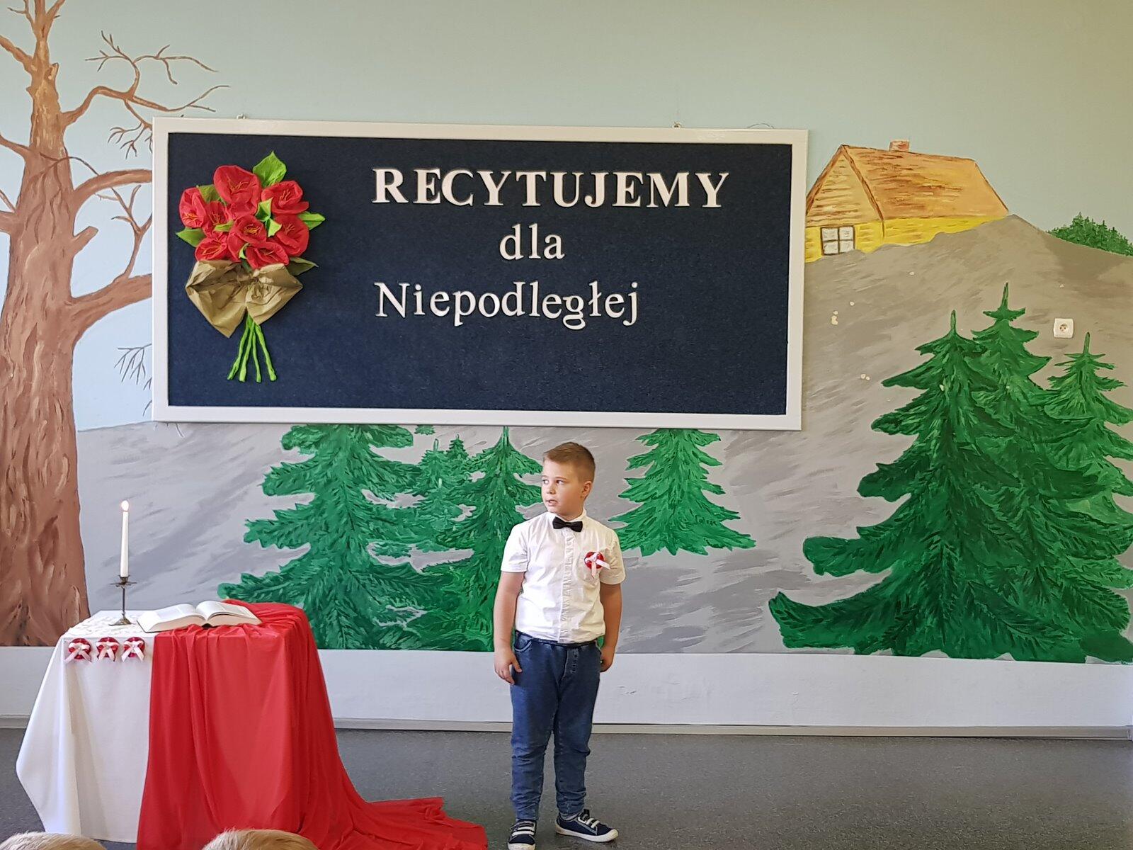 5 listopada odbyły się szkolne eliminacje Konkursu Recytatorskiego pt. "Recytujemy dla Niepodległej". Dzieci z wielką dumą i przejęciem recytowały wiersze patriotyczne. Nadzwyczajne były uczennice z klasy pierwszej, które swoją recytacją i interpretacją wiersza skradły serce jury i tym samym będą reprezentować naszą szkołę w dalszym etapie konkursu.