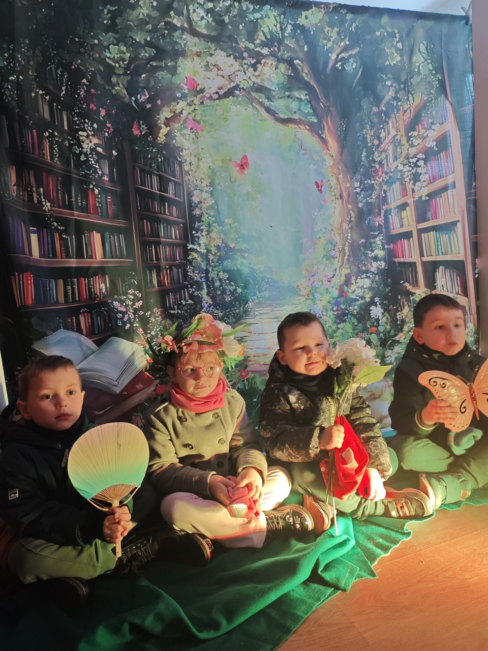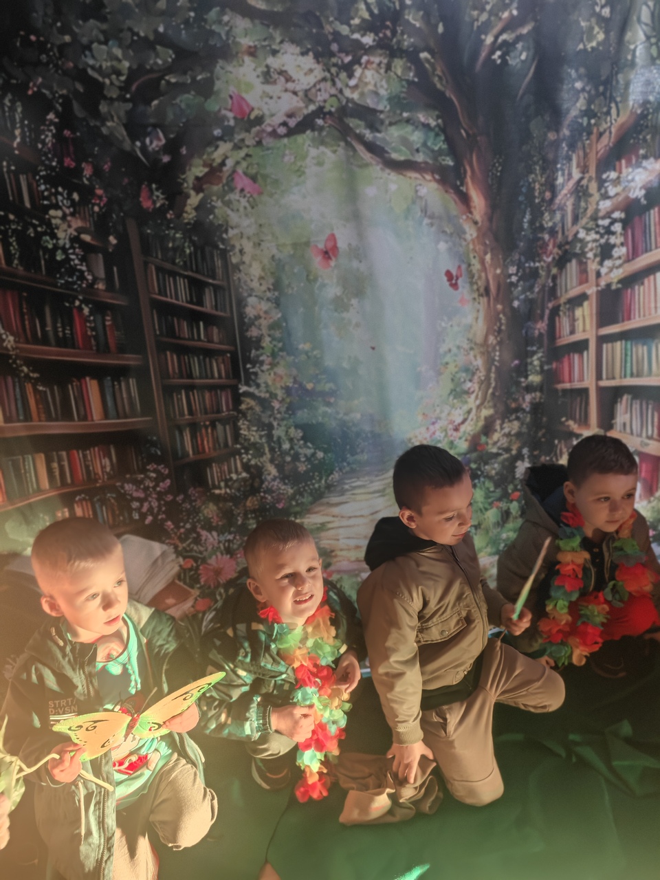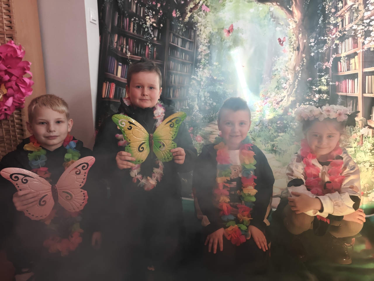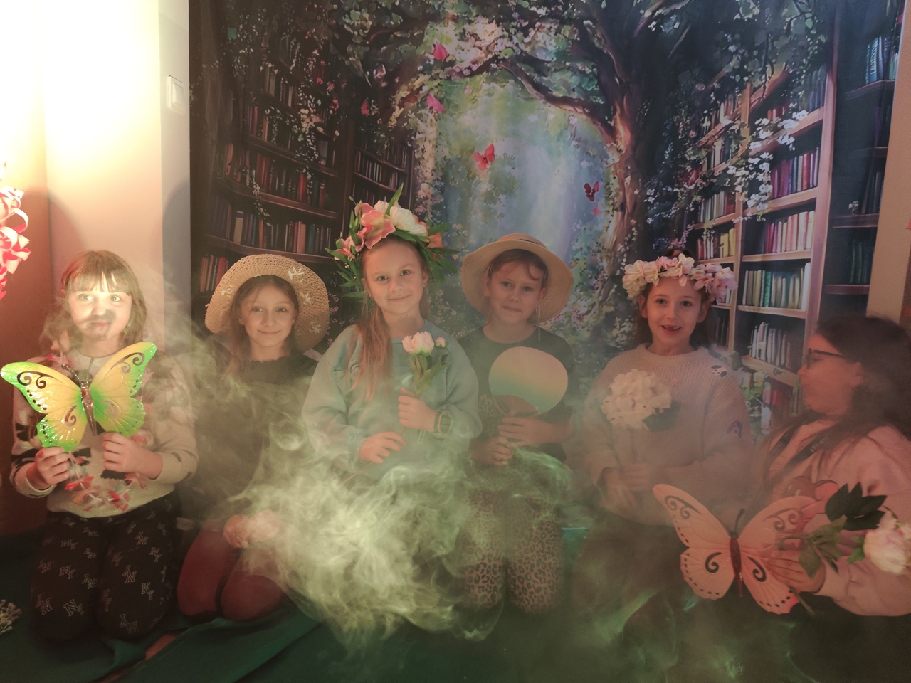Odwiedzających witały imponujące, wielkoformatowe kwiaty oraz dekoracje, które tworzyły iluzję baśniowego krajobrazu. Subtelne światło i efekty dymu dopełniały całość, a w tle można było usłyszeć szum liści, śpiew ptaków i odgłosy ogrodu. Przestrzeń biblioteki stała się miejscem, w którym granica między rzeczywistością a fantazją niemal się zacierała.