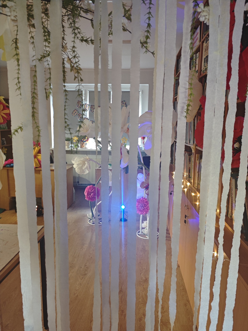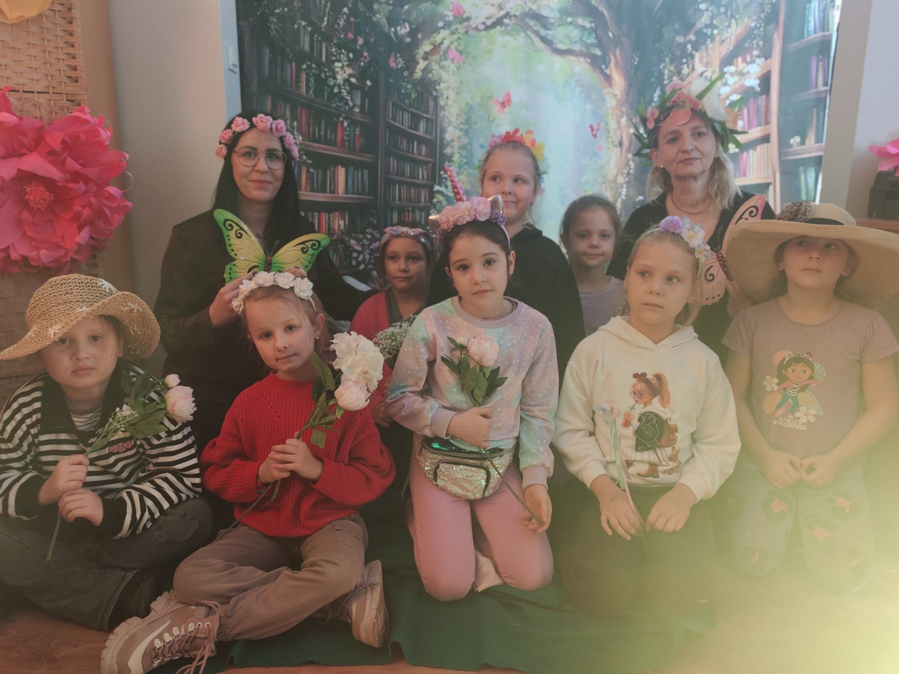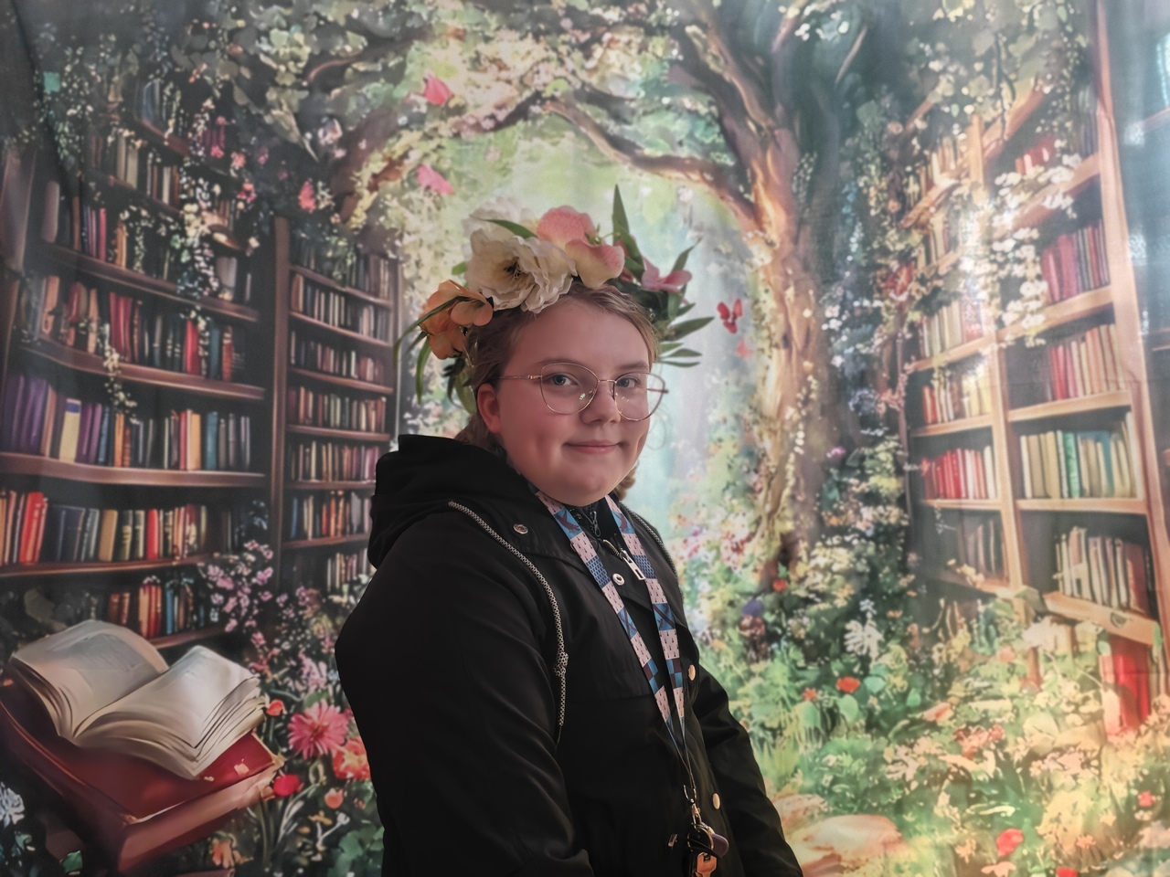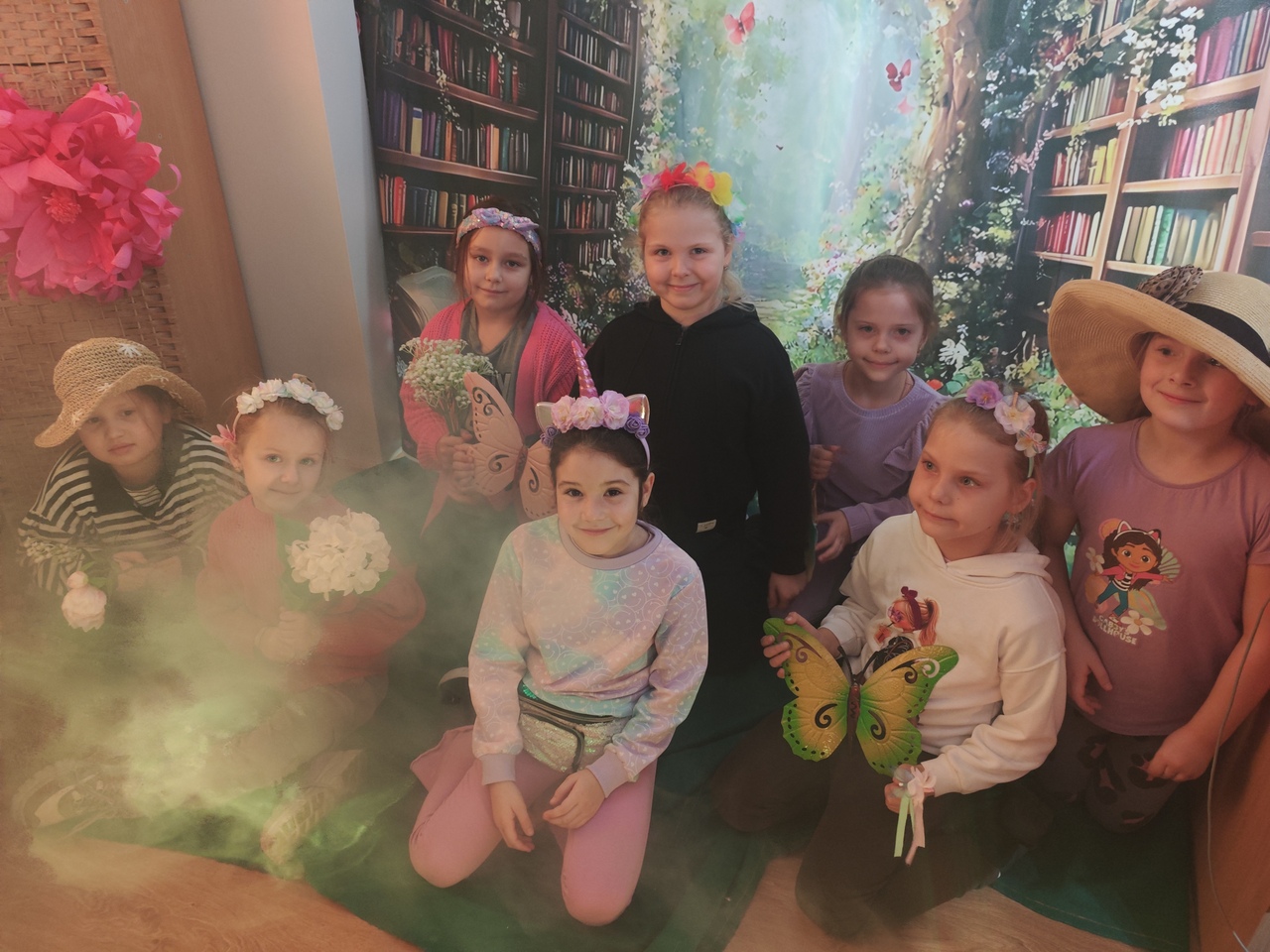 Odwiedzających witały imponujące, wielkoformatowe kwiaty oraz dekoracje, które tworzyły iluzję baśniowego krajobrazu. Subtelne światło i efekty dymu dopełniały całość, a w tle można było usłyszeć szum liści, śpiew ptaków i odgłosy ogrodu. Przestrzeń biblioteki stała się miejscem, w którym granica między rzeczywistością a fantazją niemal się zacierała.