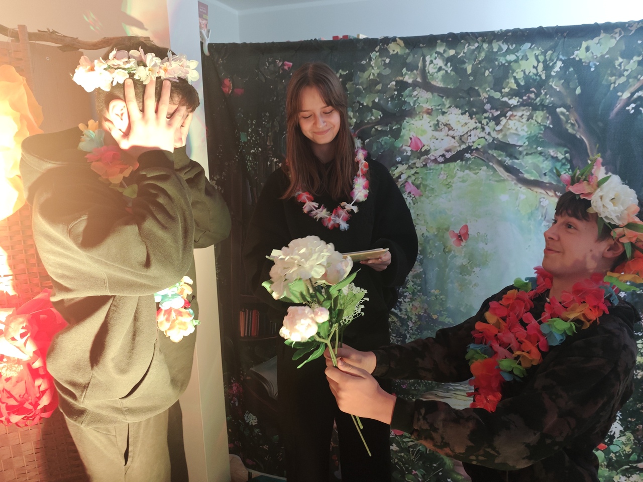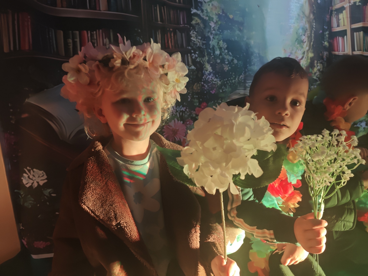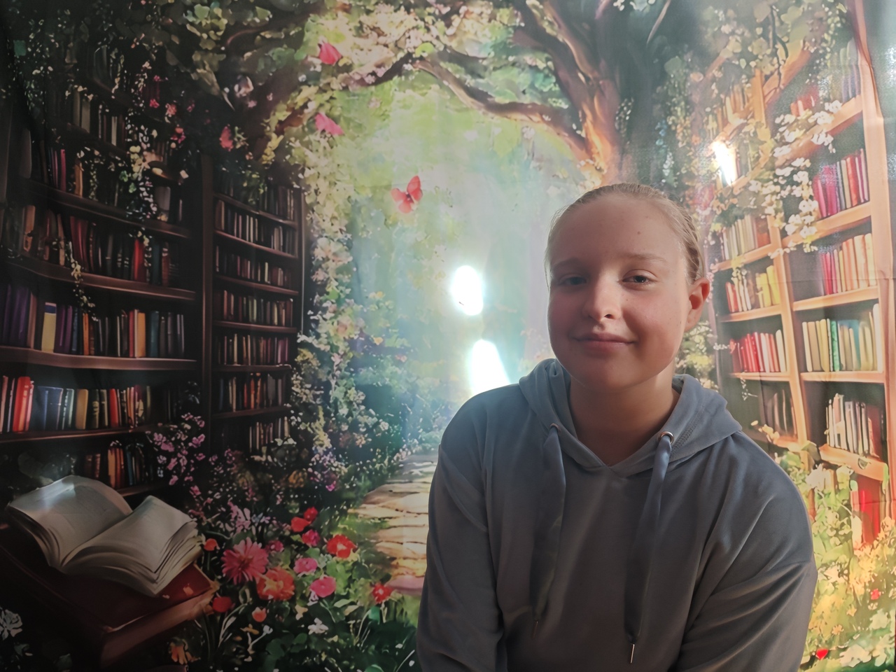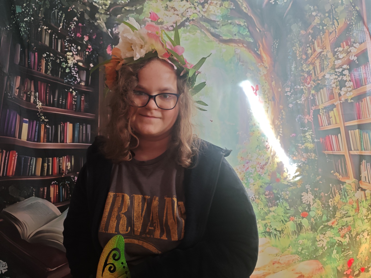 Odwiedzających witały imponujące, wielkoformatowe kwiaty oraz dekoracje, które tworzyły iluzję baśniowego krajobrazu. Subtelne światło i efekty dymu dopełniały całość, a w tle można było usłyszeć szum liści, śpiew ptaków i odgłosy ogrodu. Przestrzeń biblioteki stała się miejscem, w którym granica między rzeczywistością a fantazją niemal się zacierała.