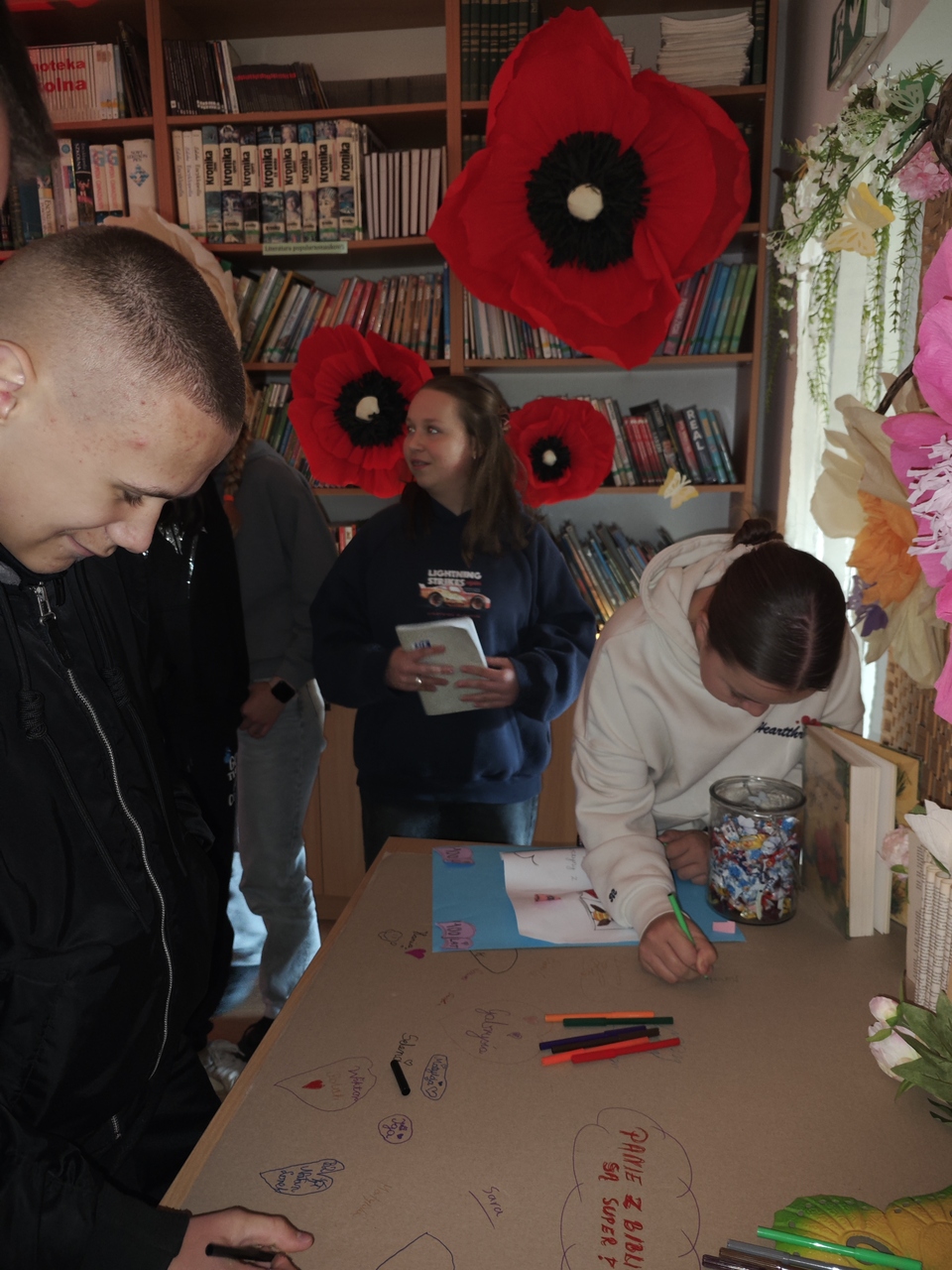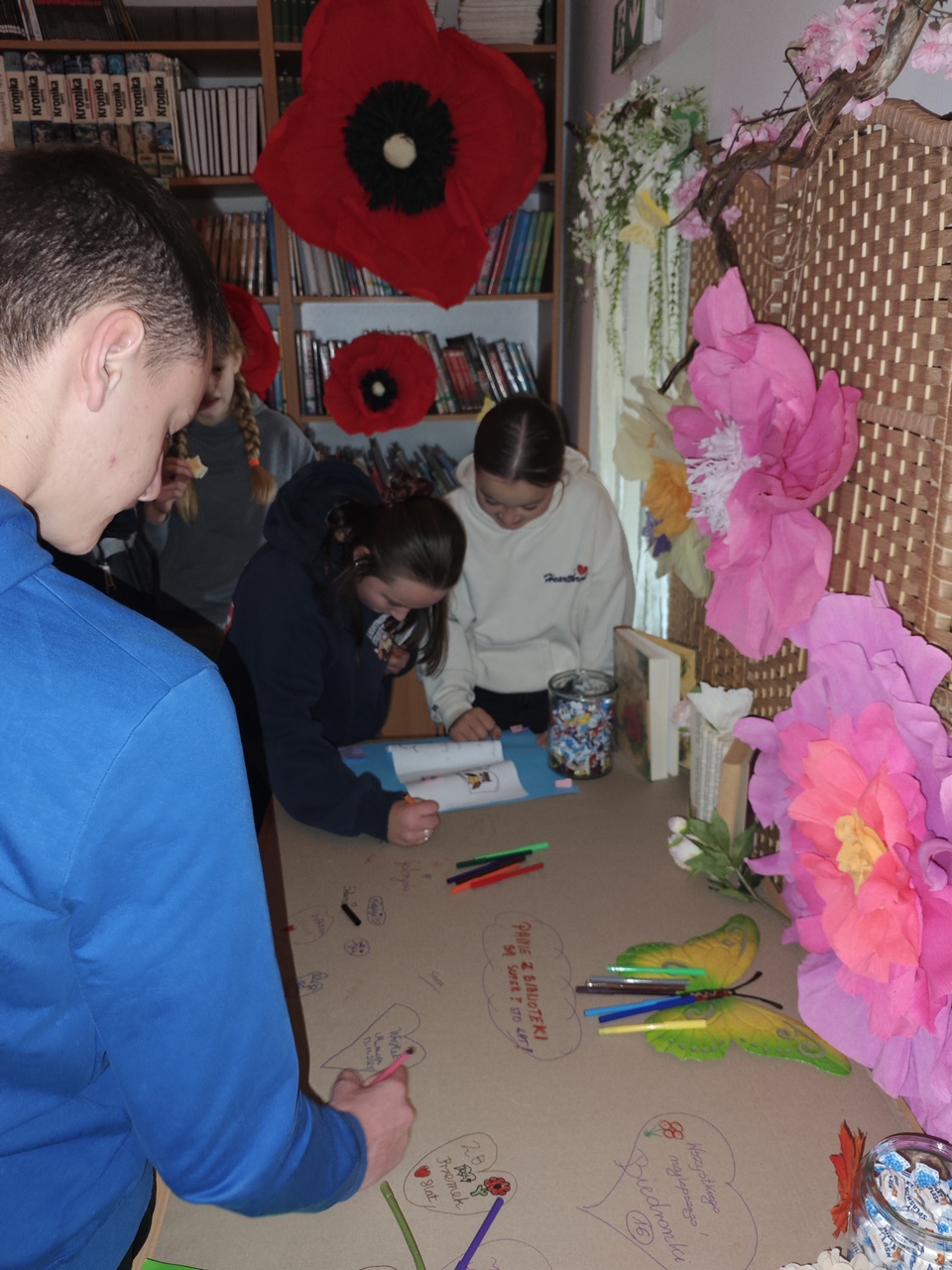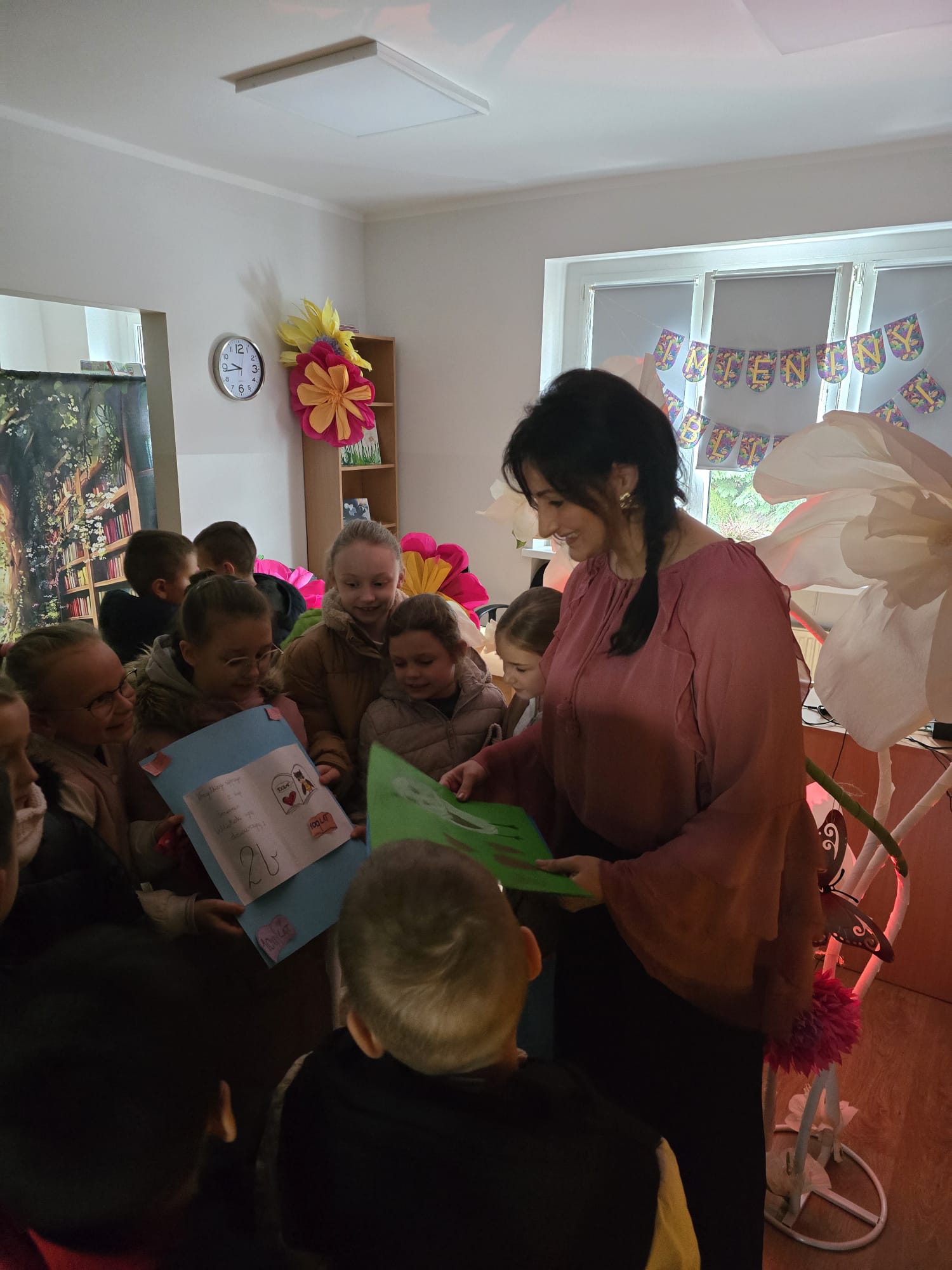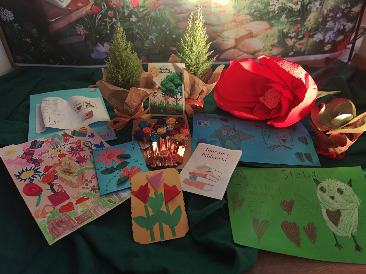 Biblioteka otrzymała wiele pięknych laurek, życzeń i drobnych upominków, które były wyrazem sympatii i wdzięczności. Tegoroczne imieniny były prawdziwą uczta dla zmysłów i dowodem na to, że biblioteka może być miejscem niezwykłych przeżyć. Już dziś zapraszamy do kolejnych spotkań w świecie książek i wyobraźni.