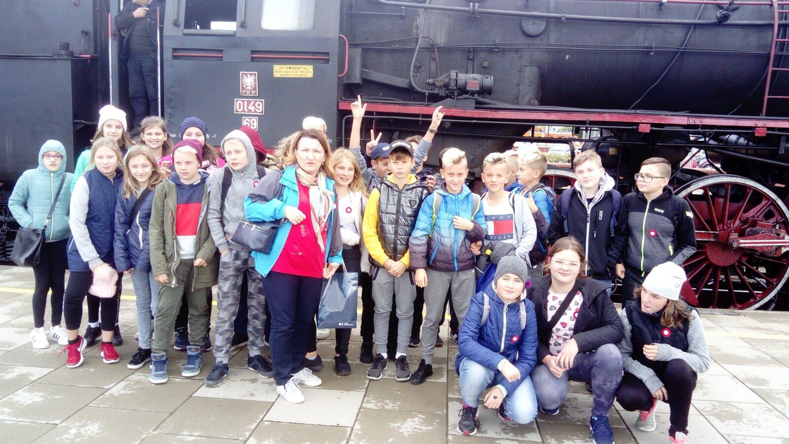 W środę 3 października 2018 roku uczniowie klas szóstych wraz z wychowawcami przeżyli bardzo ciekawie popołudnie. Tego dnia po lekcjach wzięli udział w projekcie „KOLEJE WOLNOŚCI 1918 – 2018”. Z okazji setnej rocznicy odzyskania przez Polskę niepodległości oraz wybuchu Powstania Wielkopolskiego nasi uczniowie mieli okazję podróżować retro pociągiem z Krobi do Leszna. Podczas podróży w składach złożonych z parowozowu oraz historycznych wagonów odbyły się bezpłatne zajęcia edukacyjne. Prowadzący wykłady rekonstruktorzy w żywy i barwny sposób przybliżyli nam historię Powstania Wielkopolskiego. Będąc w Lesznie odwiedziliśmy Rynek, gdzie mogliśmy zrobić drobne zakupy oraz nieco się posilić. Drogę powrotną pokonaliśmy nowoczesnym szyno-busem, dzięki temu mogliśmy porównać podróżowanie koleją dawniej i dziś… Było bardzo wesoło i ciekawie… Każdy z uczniów zabrał ze sobą super humor i uśmiech na twarzy. Projekt ten zrealizowany był przez Urząd Marszałkowski Województwa Wielkopolskiego w Poznaniu, Muzeum Początków Państwa Polskiego w Gnieźnie, Koleje Wielkopolskie, Parowozownię Wolsztyn i Ośrodek Doskonalenia Nauczycieli w Poznaniu. Wszystkim Organizatorom tego projektu dziękujemy bardzo serdecznie.