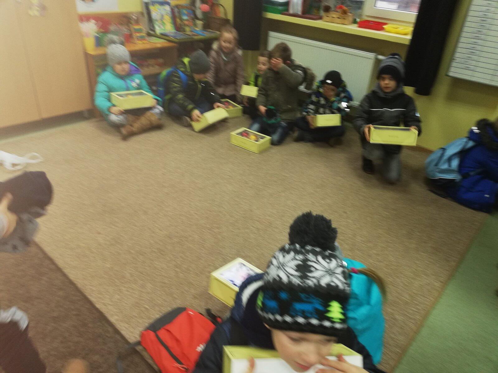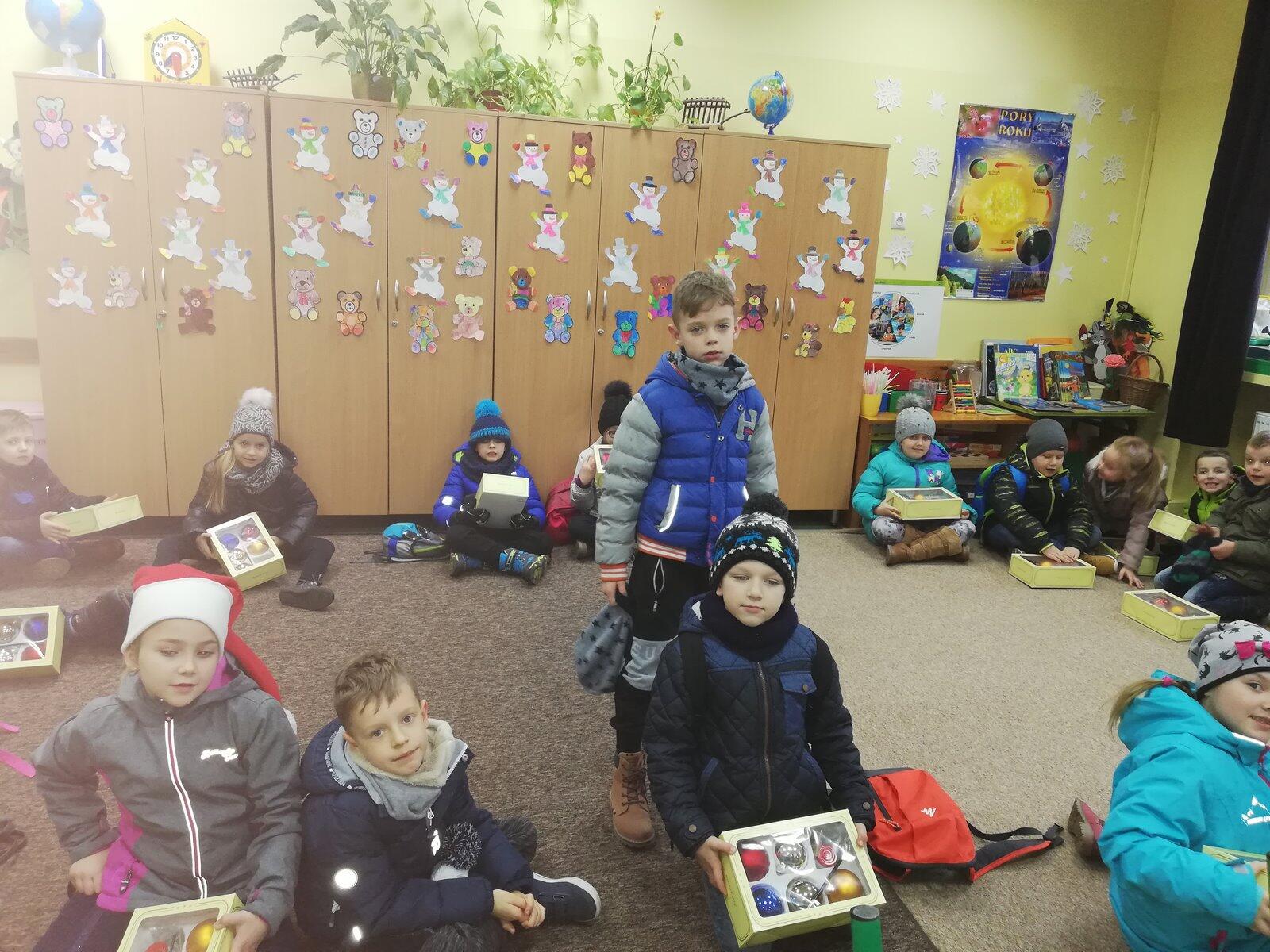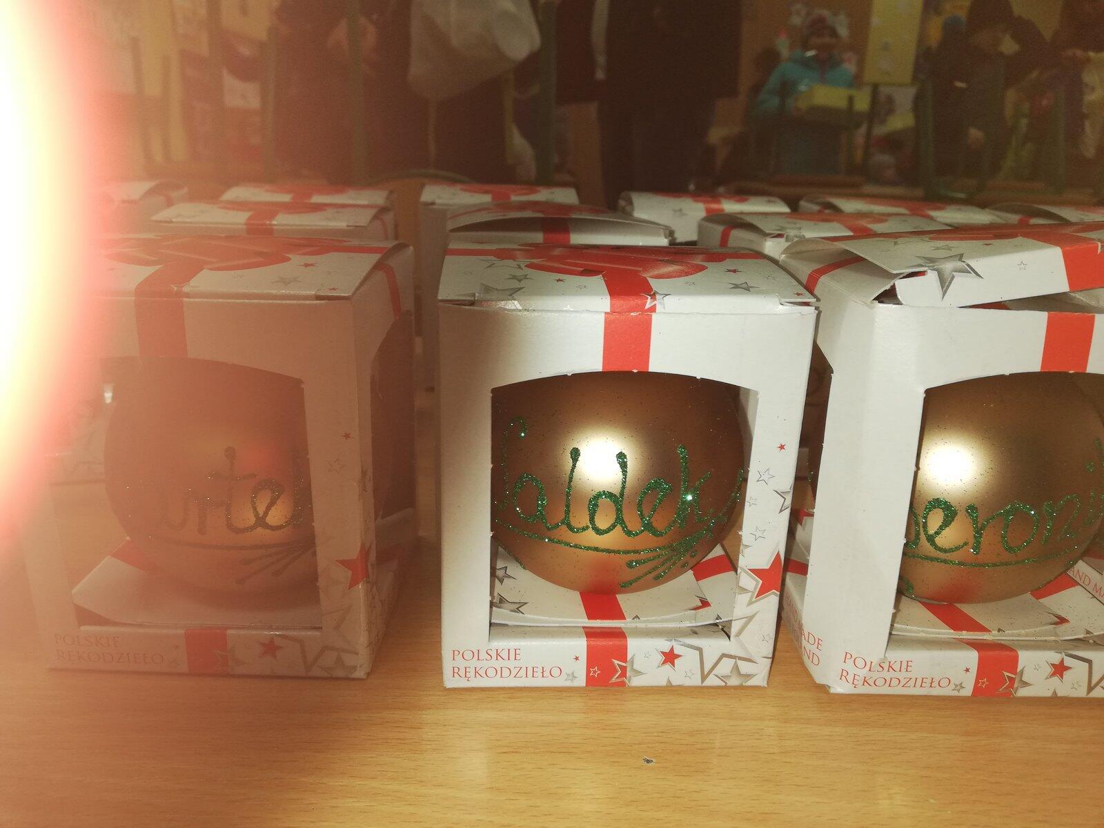 Każdy z uczniów otrzymał prezent – bombkę ze swoim imieniem oraz zestaw bombek z brokatem do samodzielnego malowania.