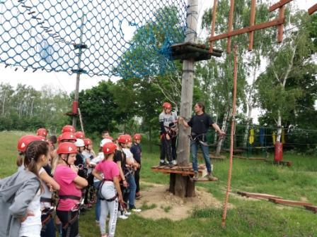 Srebrna Góra to miejscowość malowniczo położona na styku dwóch pasm sudeckich – Gór Sowich i Bardzkich. Dzięki swoim licznym, turystycznym atrakcjom, jest doskonałym miejscem do aktywnego wypoczynku. W wycieczce brało udział 38 uczniów klas 6a i 6b szkoły podstawowej. Wycieczka dostarczyła niezapomnianych wrażeń i udany wypoczynek przy przepięknej pogodzie. W programie m.in. zwiedzanie Fortu Donjon, zjazd na linach, wspinaczka alpinistyczna, park linowy, zorbing, ognisko. Oto krótka fotorelacja.