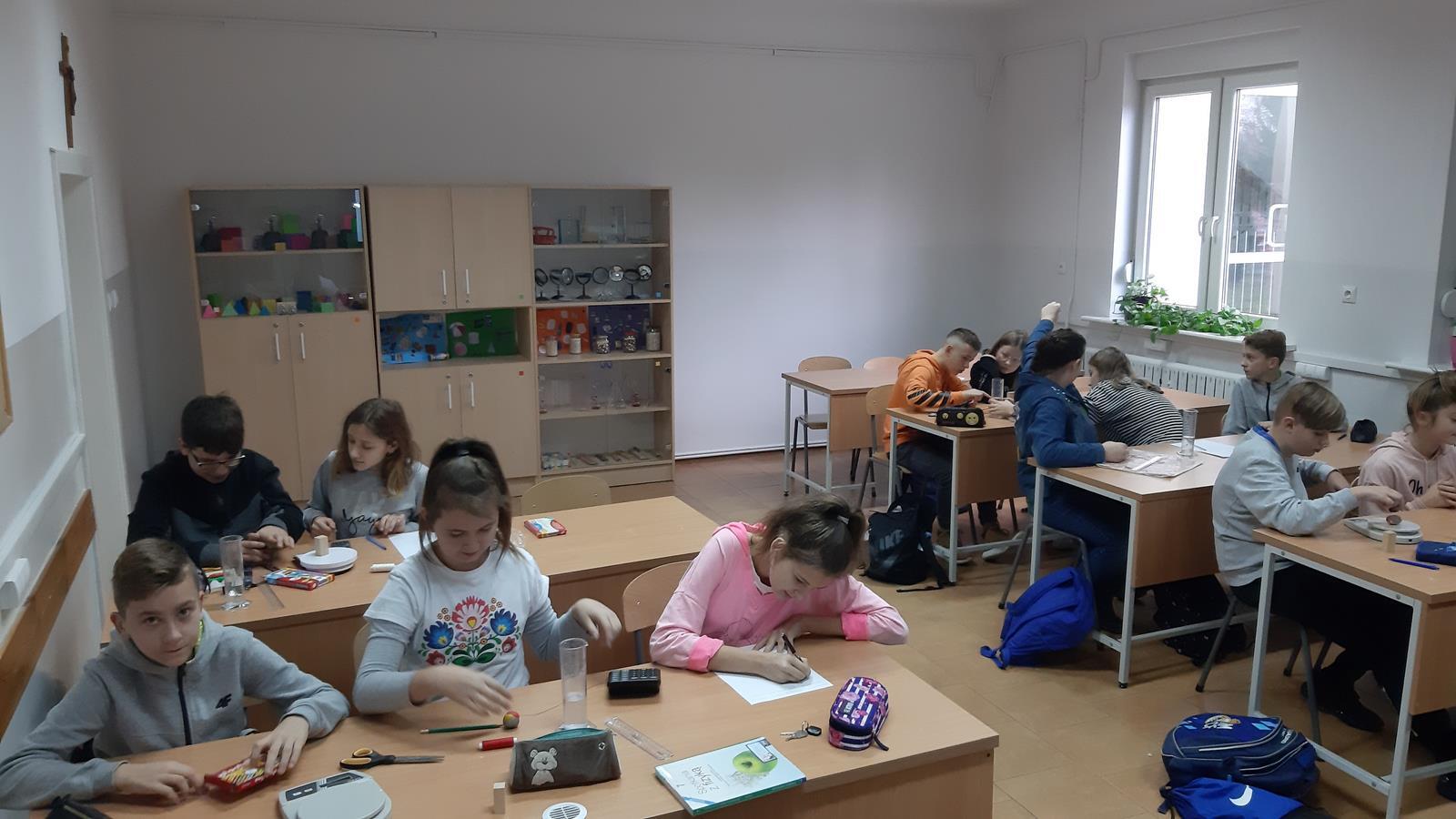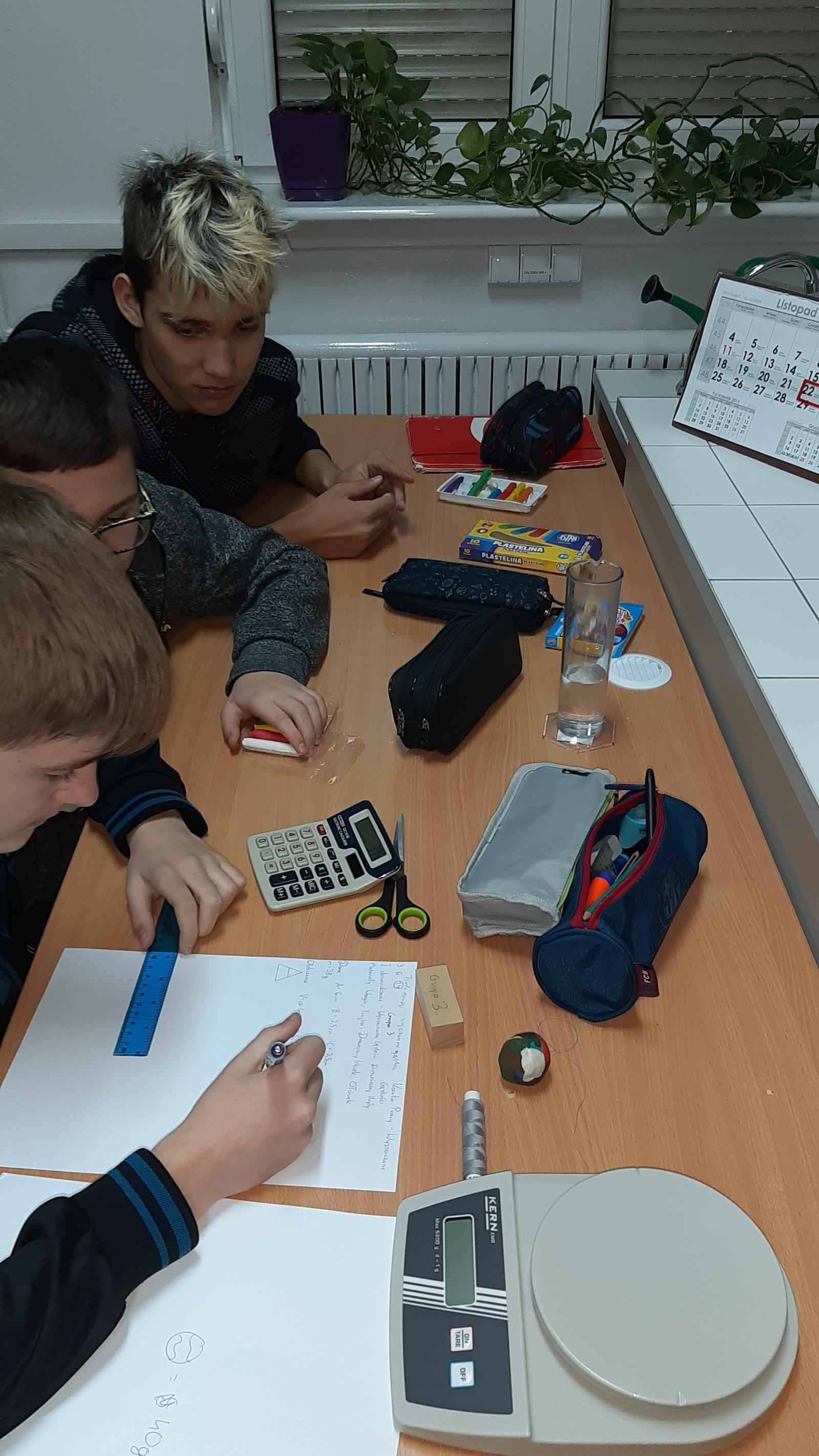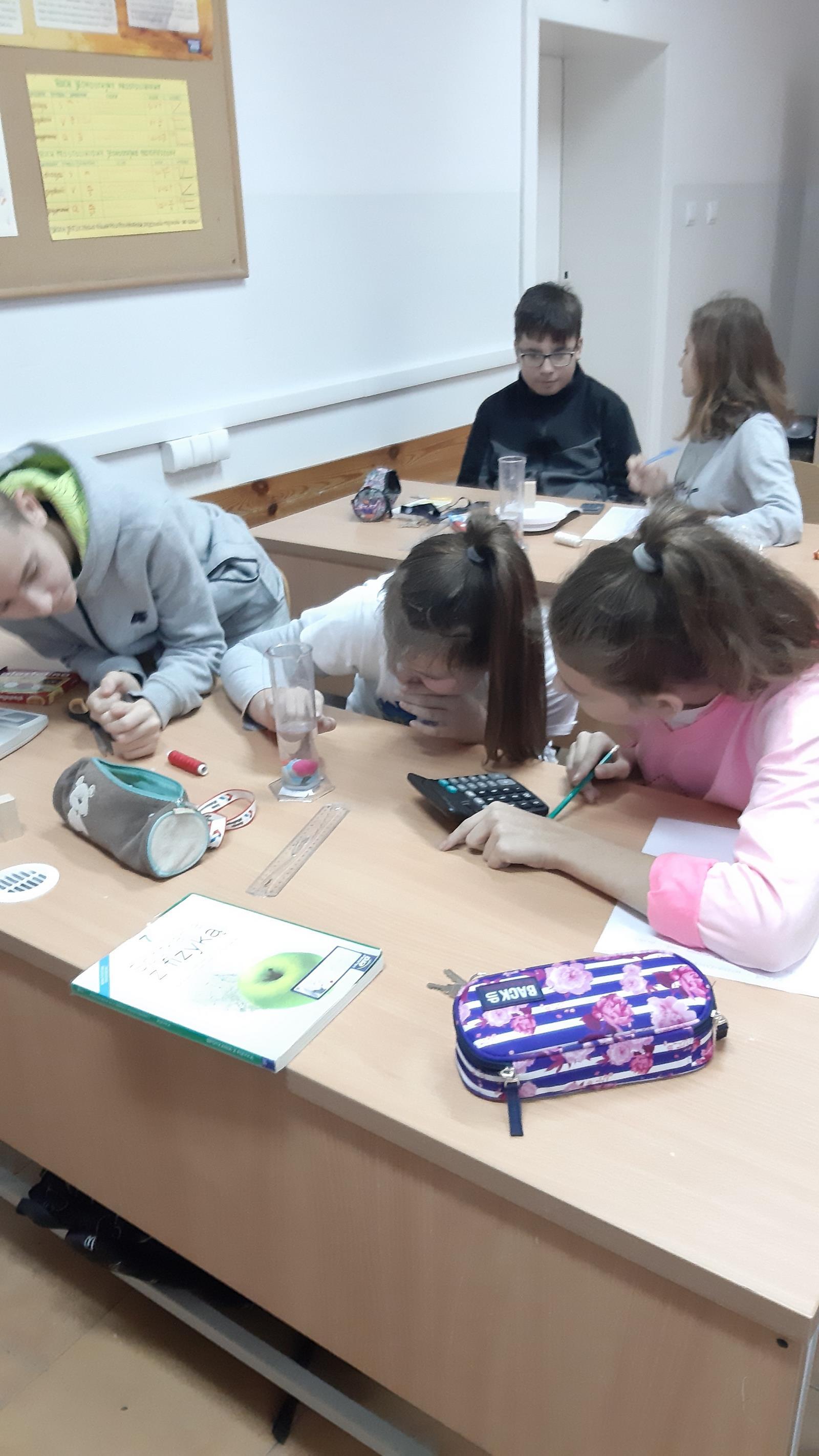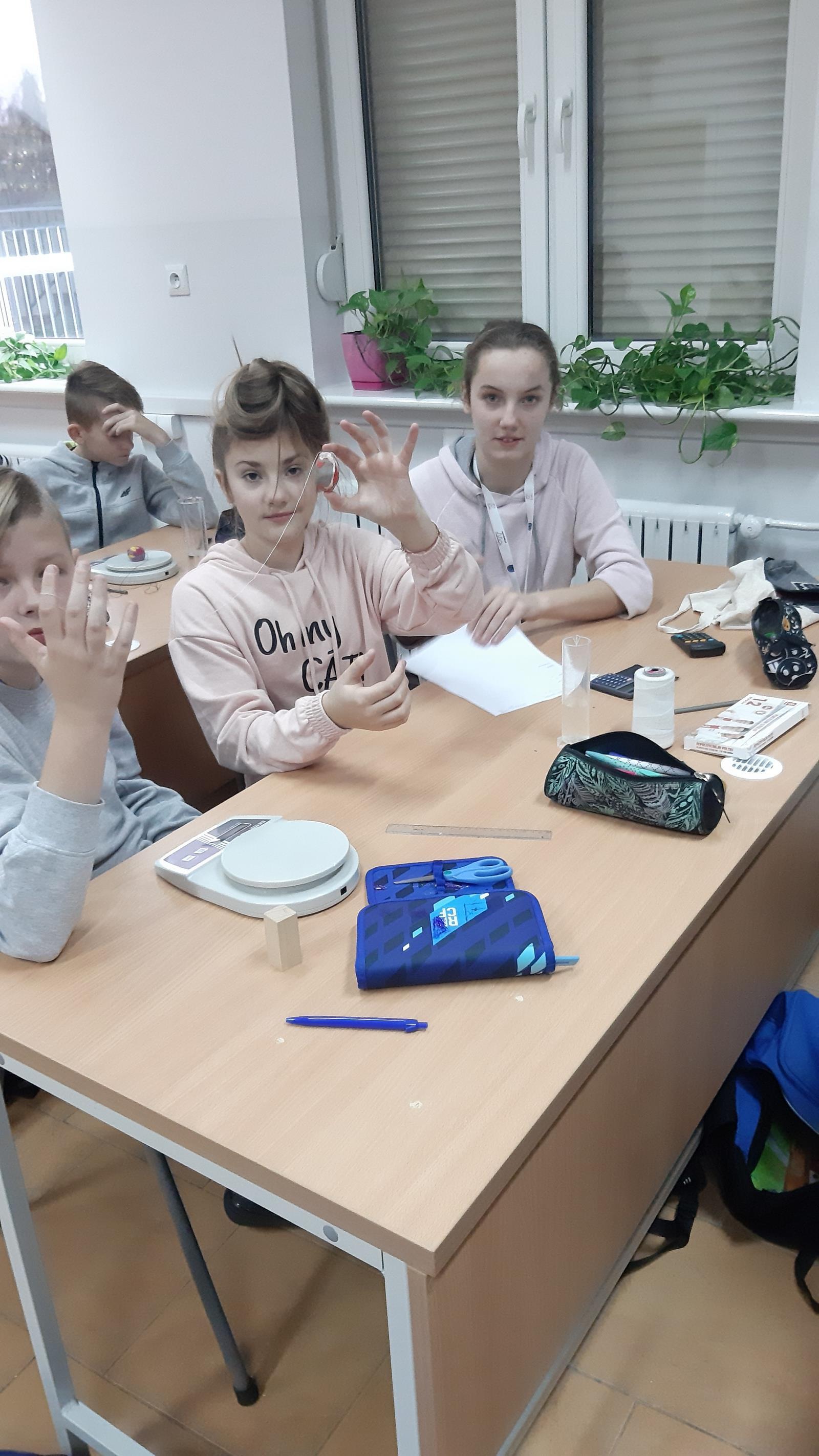 Na jednej z listopadowych lekcji fizyki wyznaczaliśmy gęstość ciał stałych: drewnianego klocka i plasteliny. Wykorzystaliśmy różne przyrządy miernicze i obliczeniowe: waga elektroniczna, cylinder miarowy, linijka, kalkulator. Każde doświadczenie opisaliśmy na kartach pracy podając dane, obliczenia oraz zamianę jednostek gęstości. Dzięki tym doświadczeniom mogliśmy łatwiej zrozumieć zagadnienia przedstawione na lekcjach. Oto krótka fotorelacja z naszych dokonań