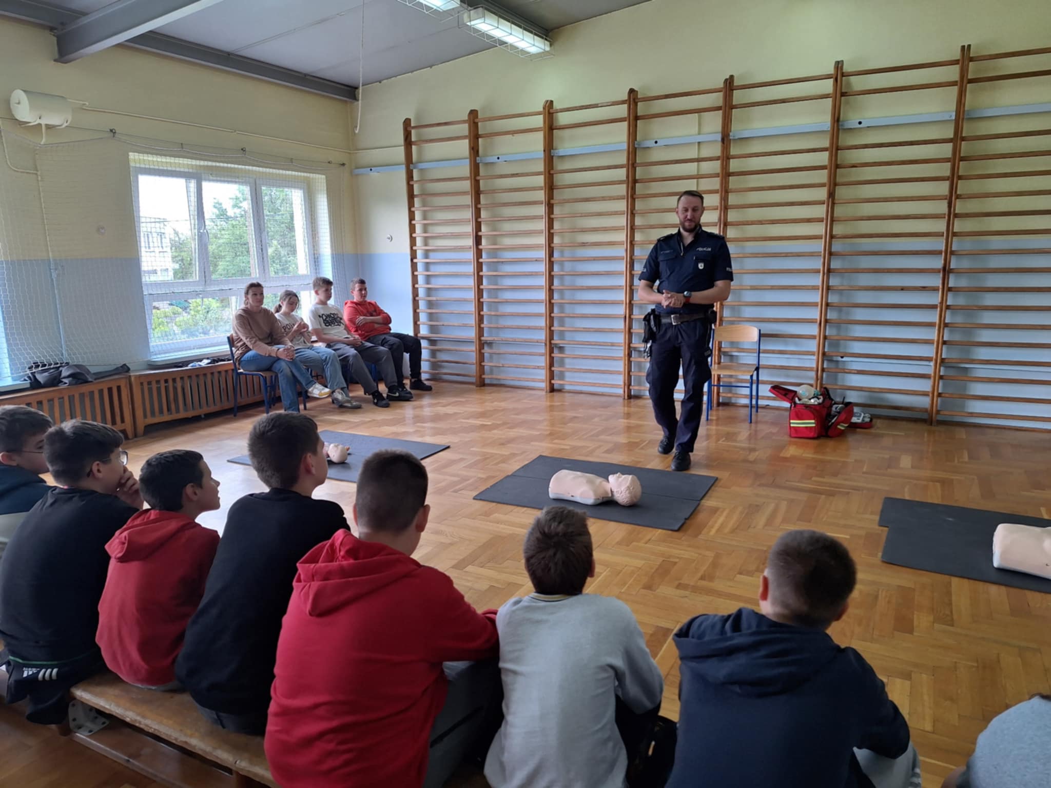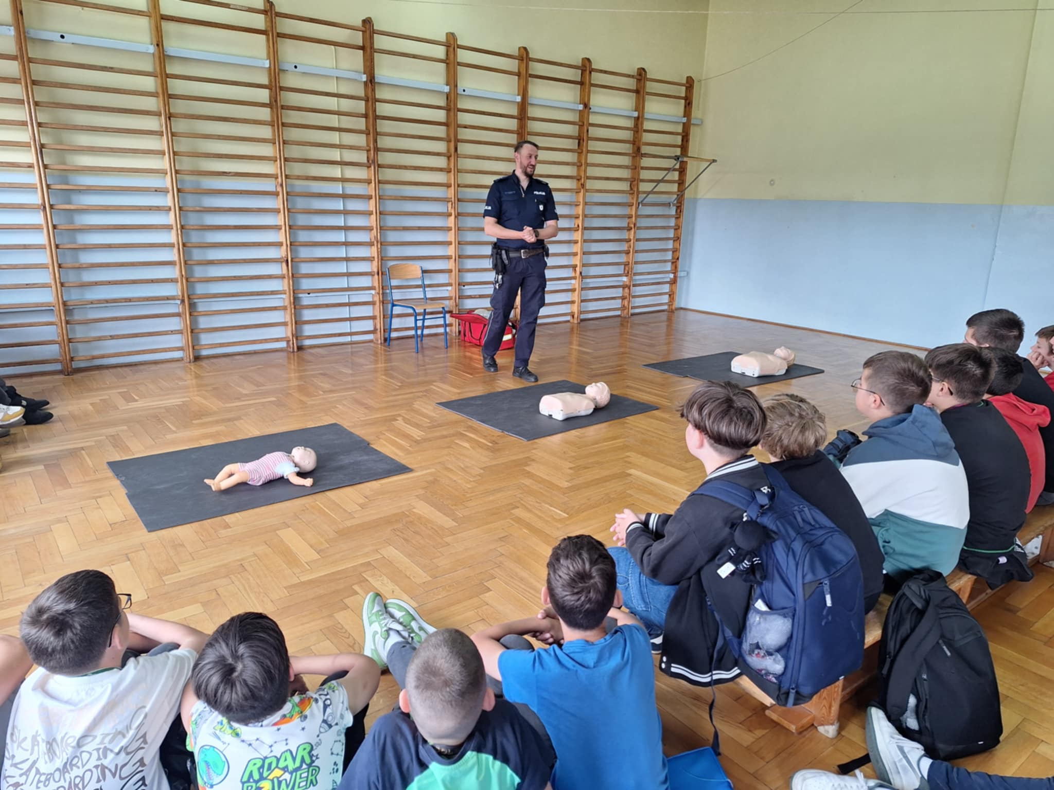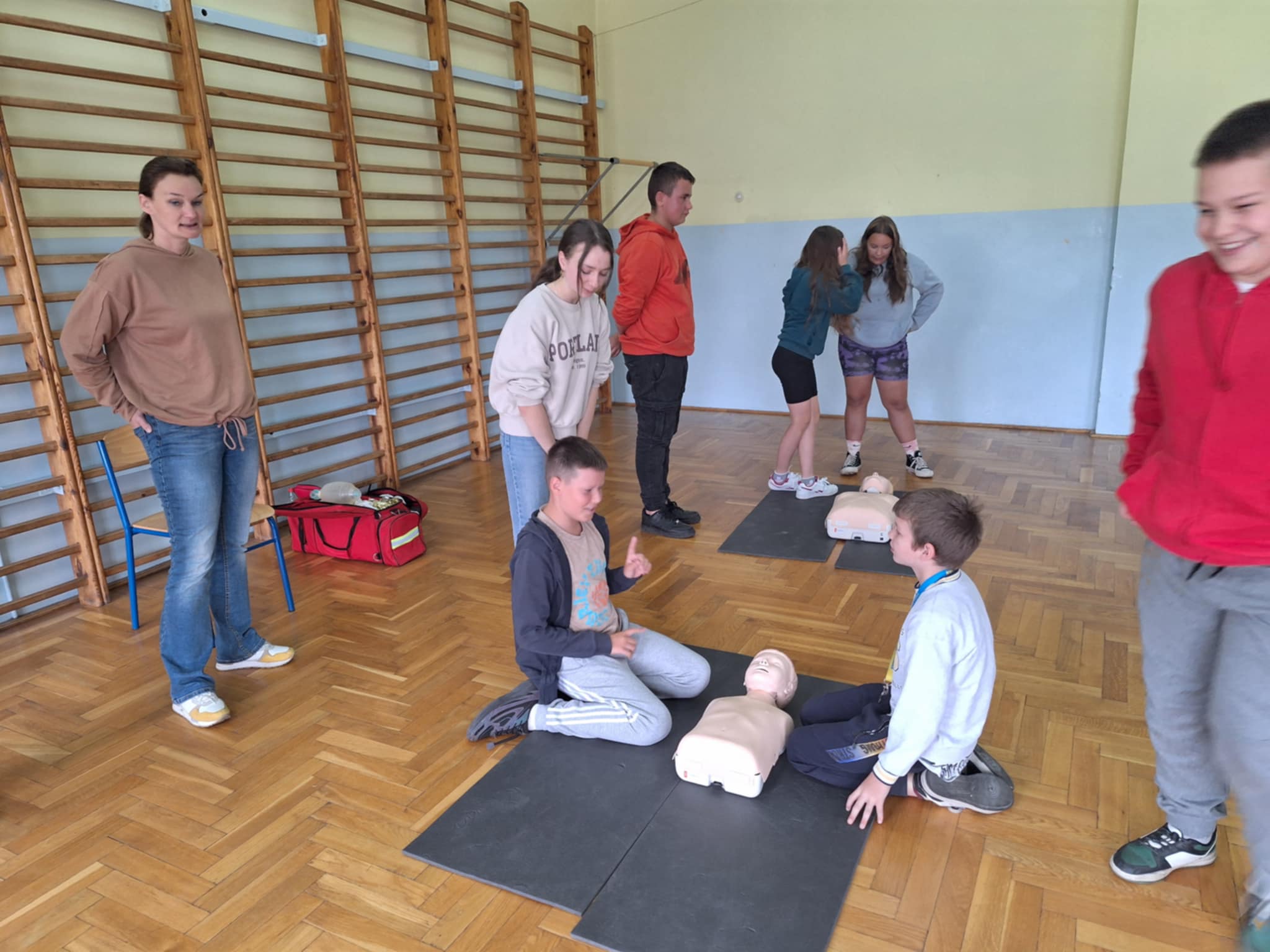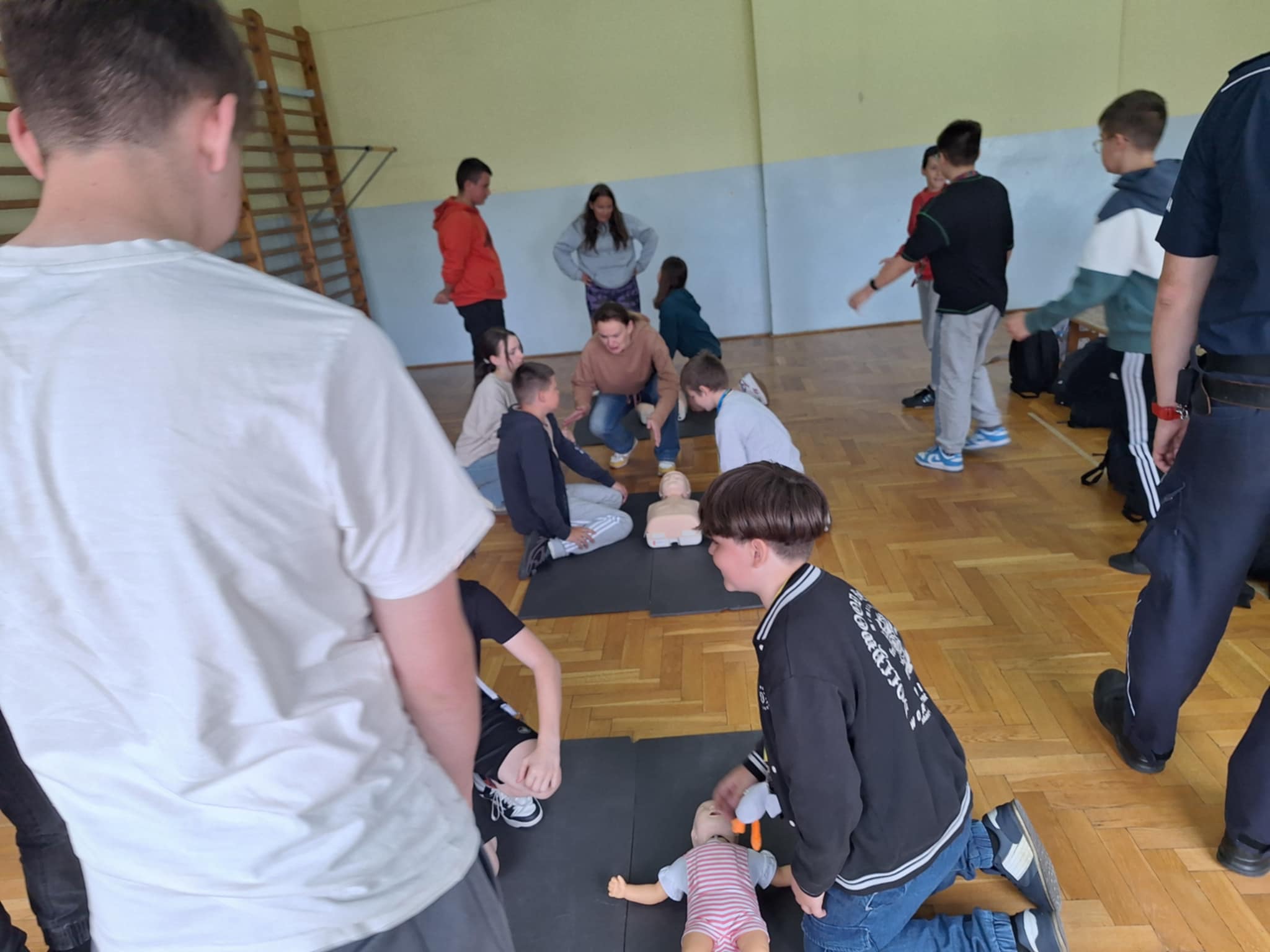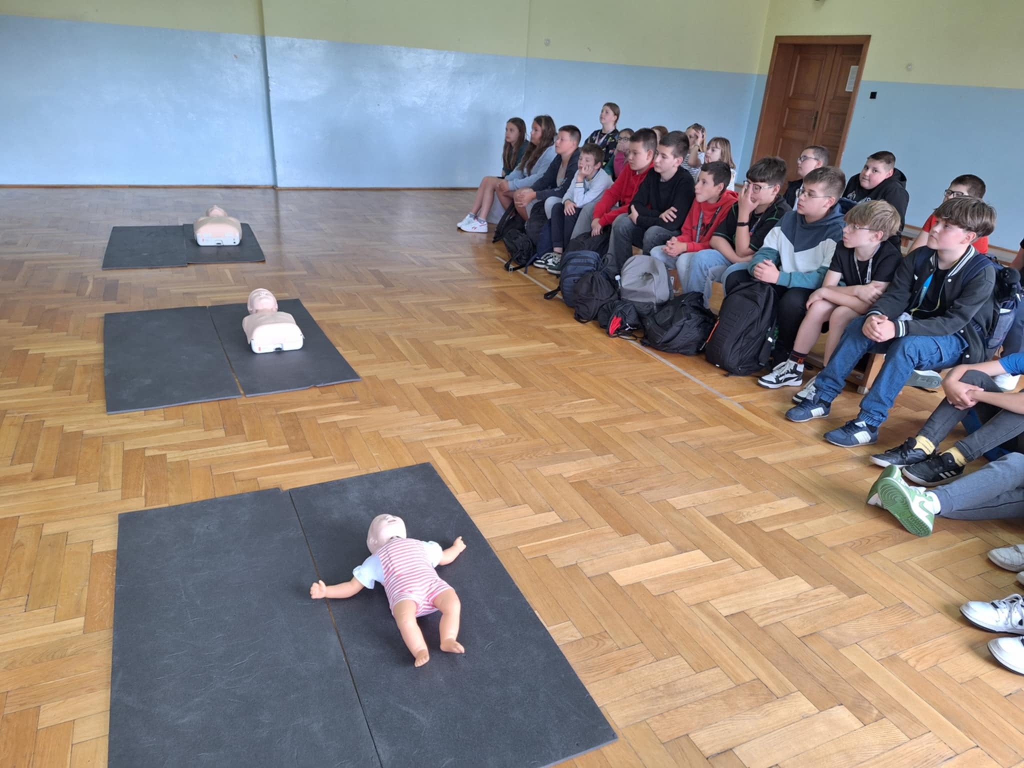 W naszej szkole odbyły się dzisiaj zajęcia z pierwszej pomocy przedmedycznej. Uczniowie dowiedzieli się i - co najważniejsze - w sposób praktyczny przećwiczyli m.in. jak zapewnić bezpieczeństwo na miejscu zdarzenia, sprawdzić przytomności oraz oddech osoby poszkodowanej, wezwać pomoc, ułożyć poszkodowanego w pozycji bocznej ustalone a także przeprowadzić resuscytację krążeniowo-oddechową (RKO). Zapoznali się również z obsługą defibrylatora AED - urządzenia medycznego służącego do przywracania prawidłowego rytmu serca w przypadku nagłego zatrzymania krążenia.
